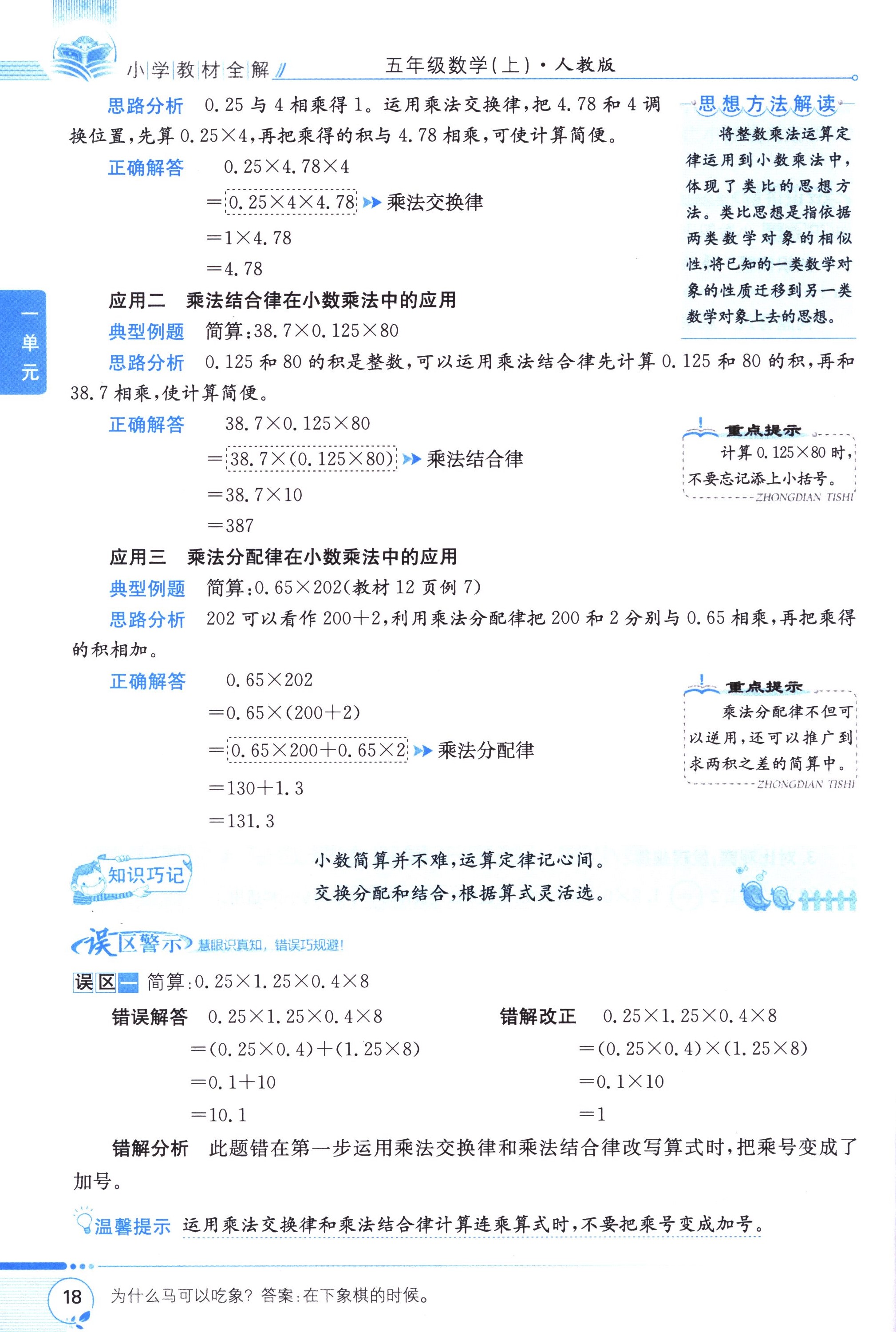 整數(shù)乘法運(yùn)算定律推廣到小數(shù)