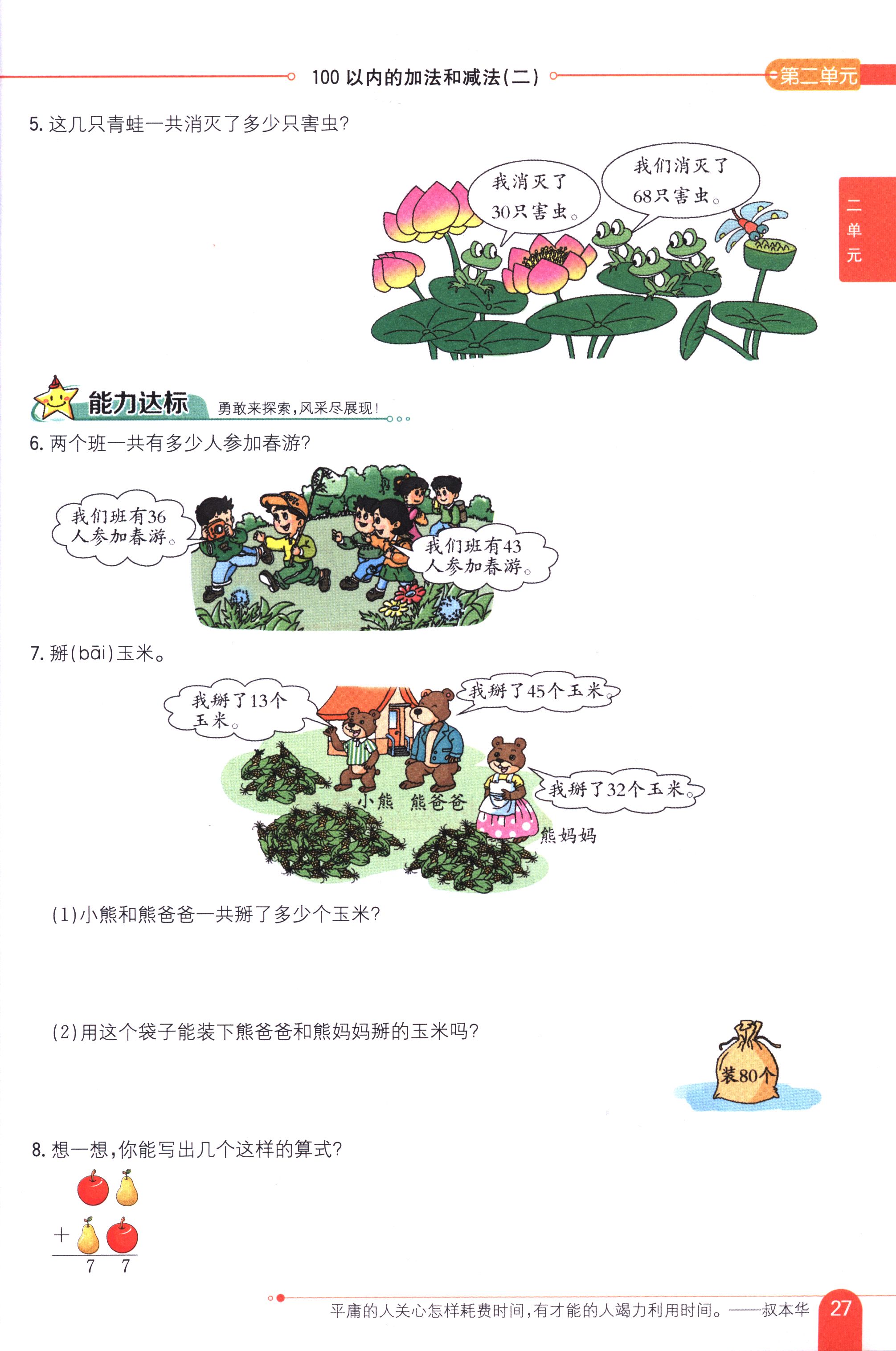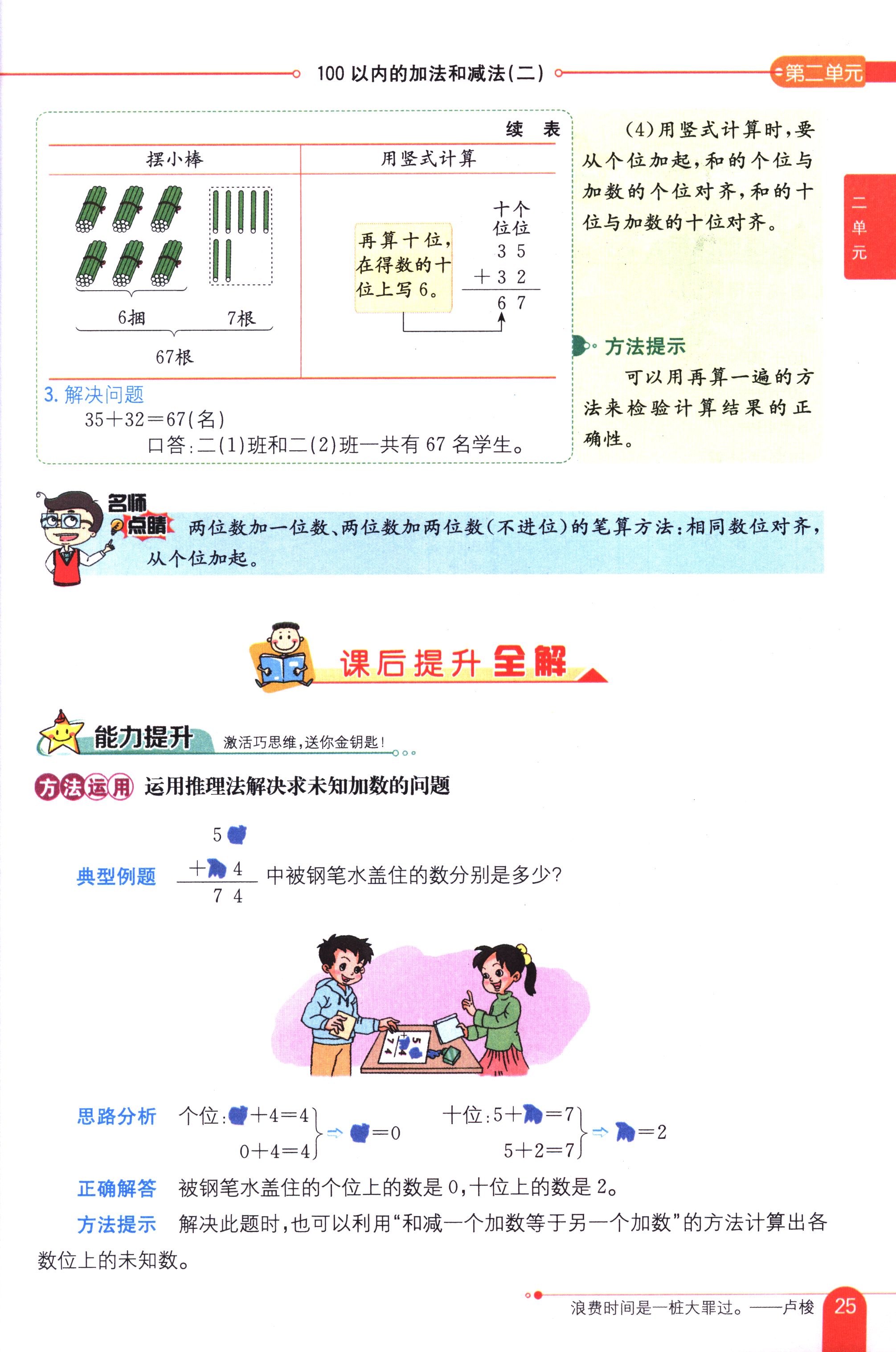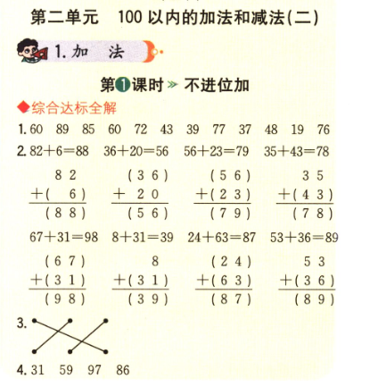 數(shù)學(xué)課本人教版二年級上 100以內(nèi)的加法和減法[二] 第1課時(shí) 不進(jìn)位加