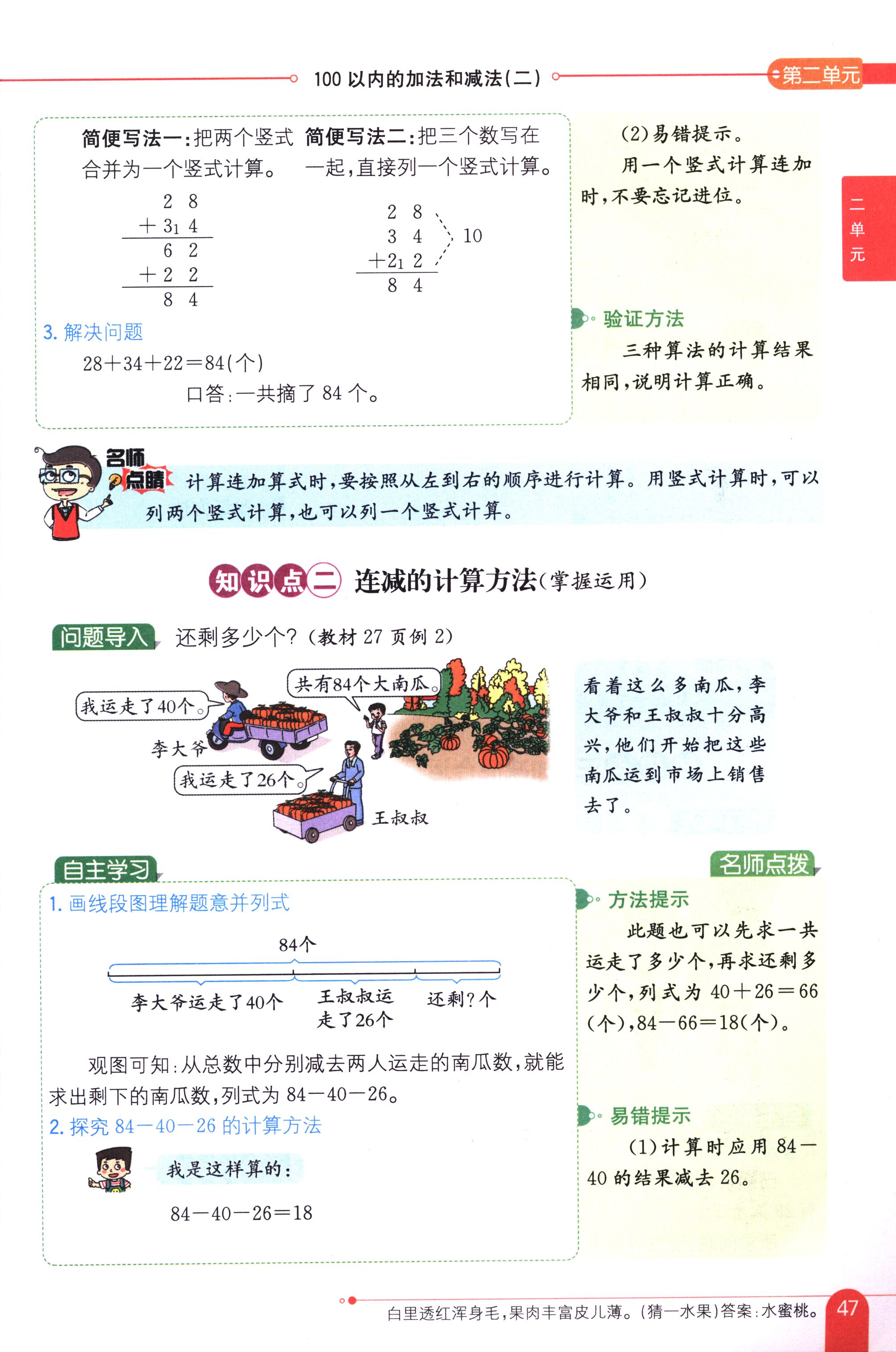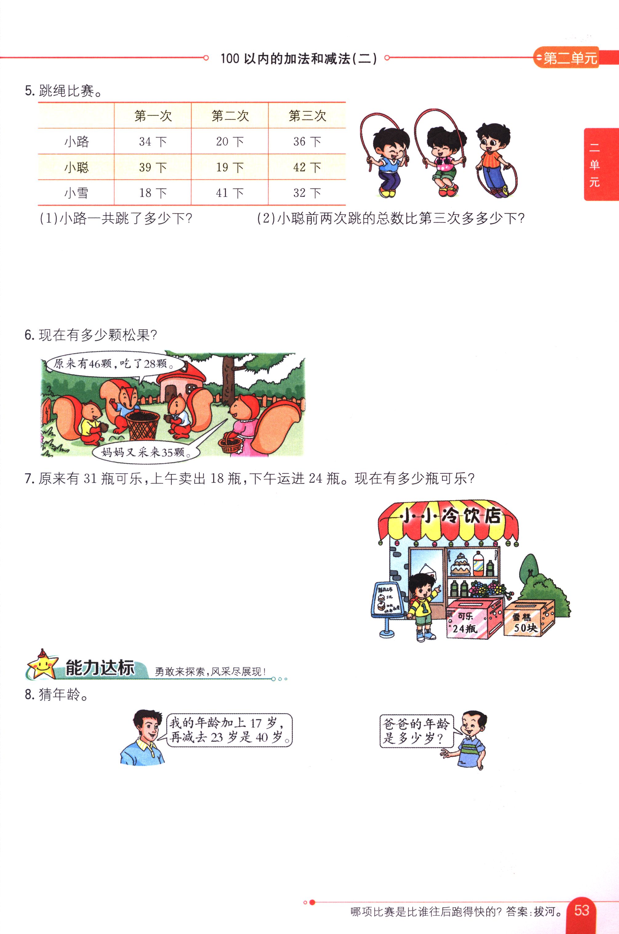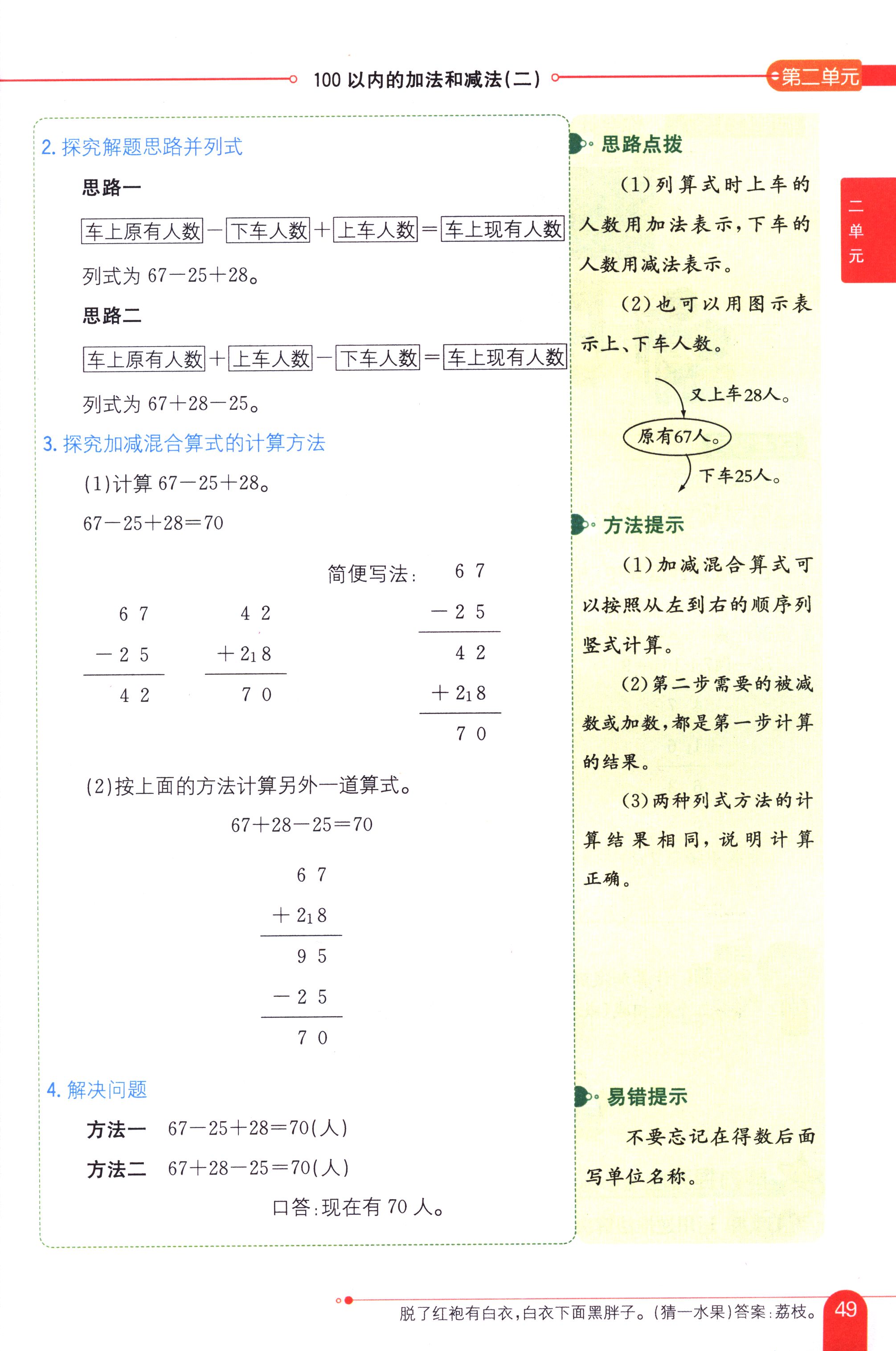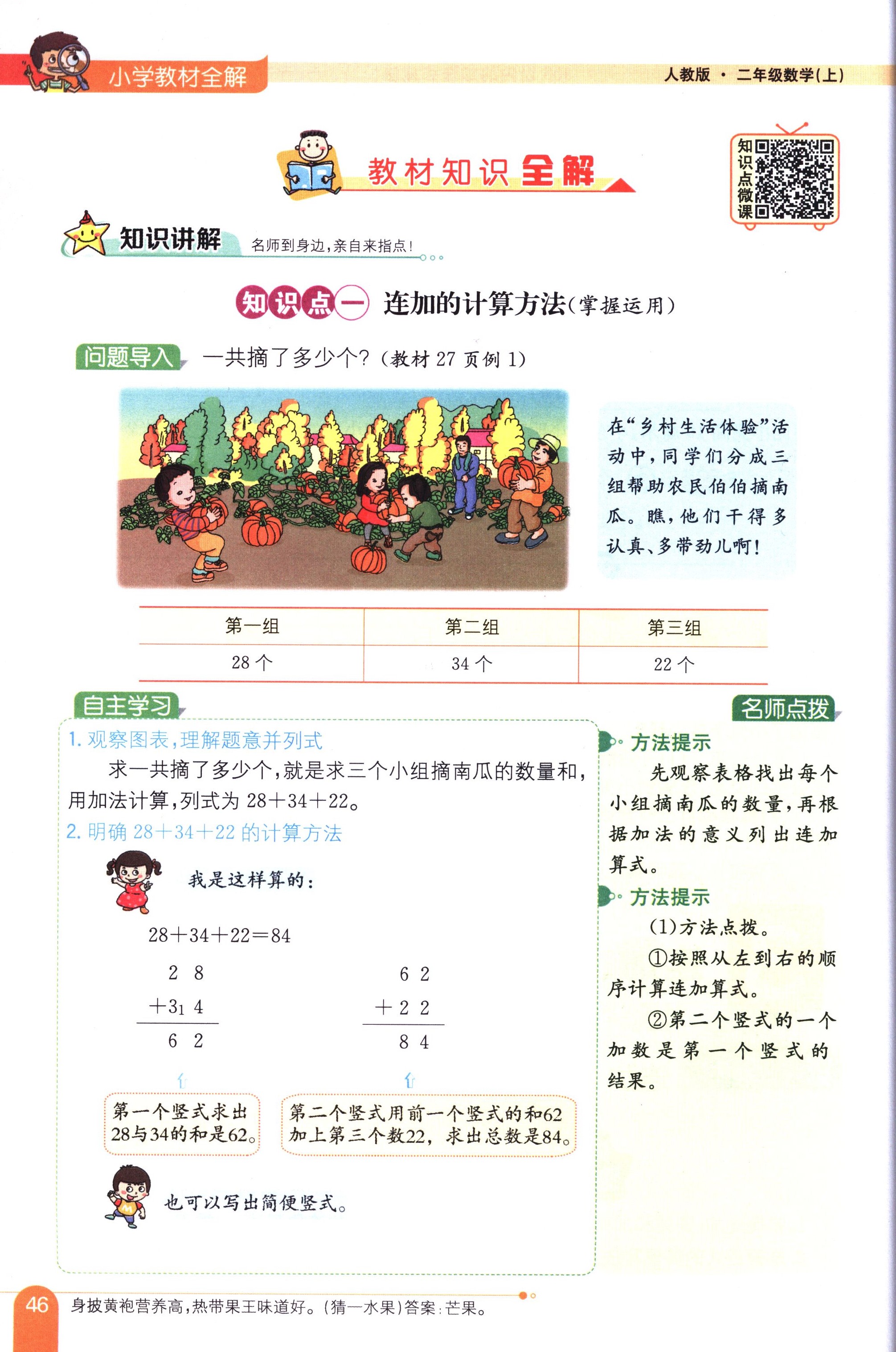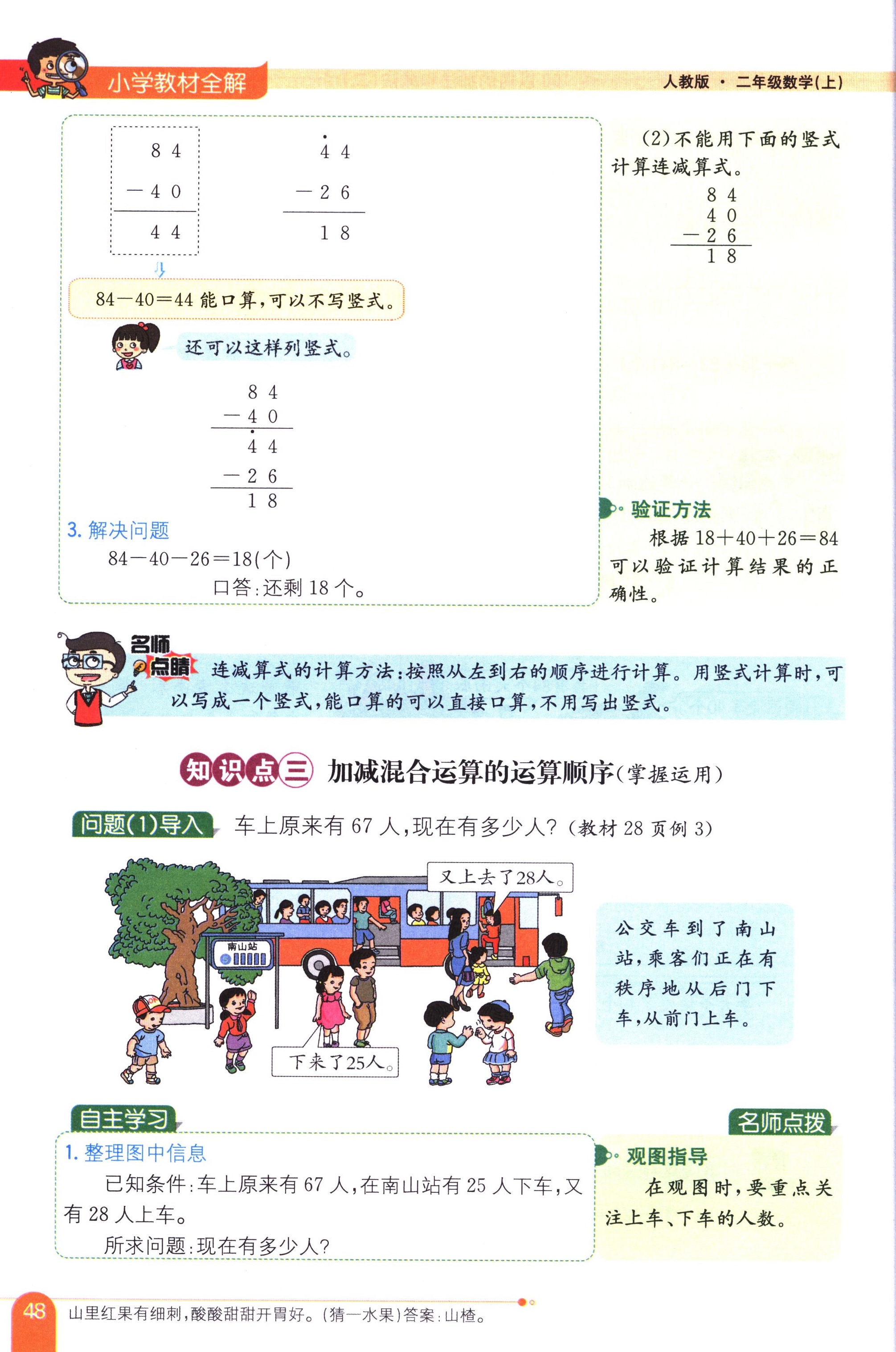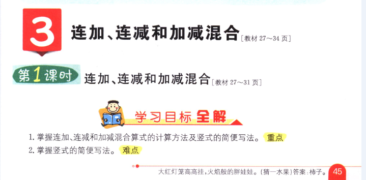 數(shù)學(xué)課本人教版二年級上 2.3 連加、連減和加減混合