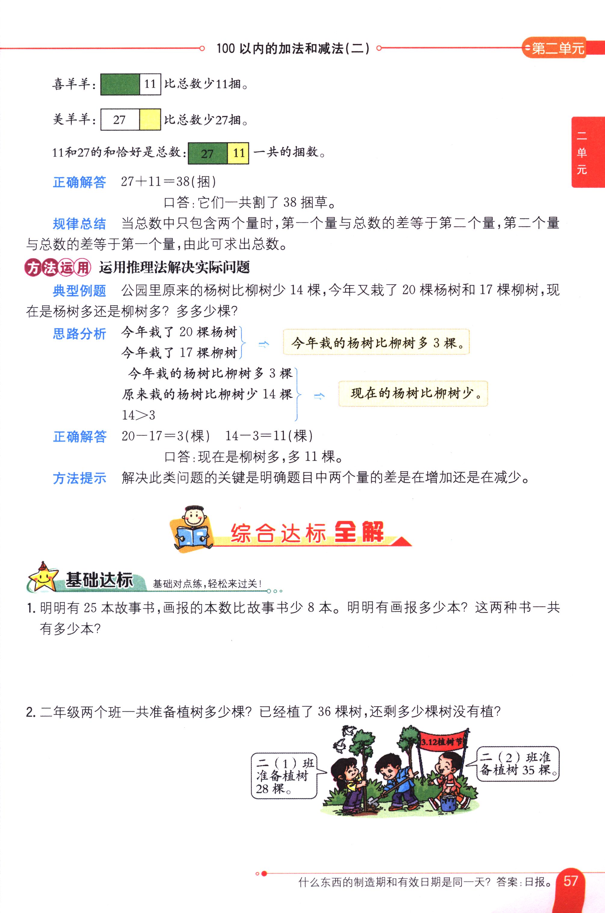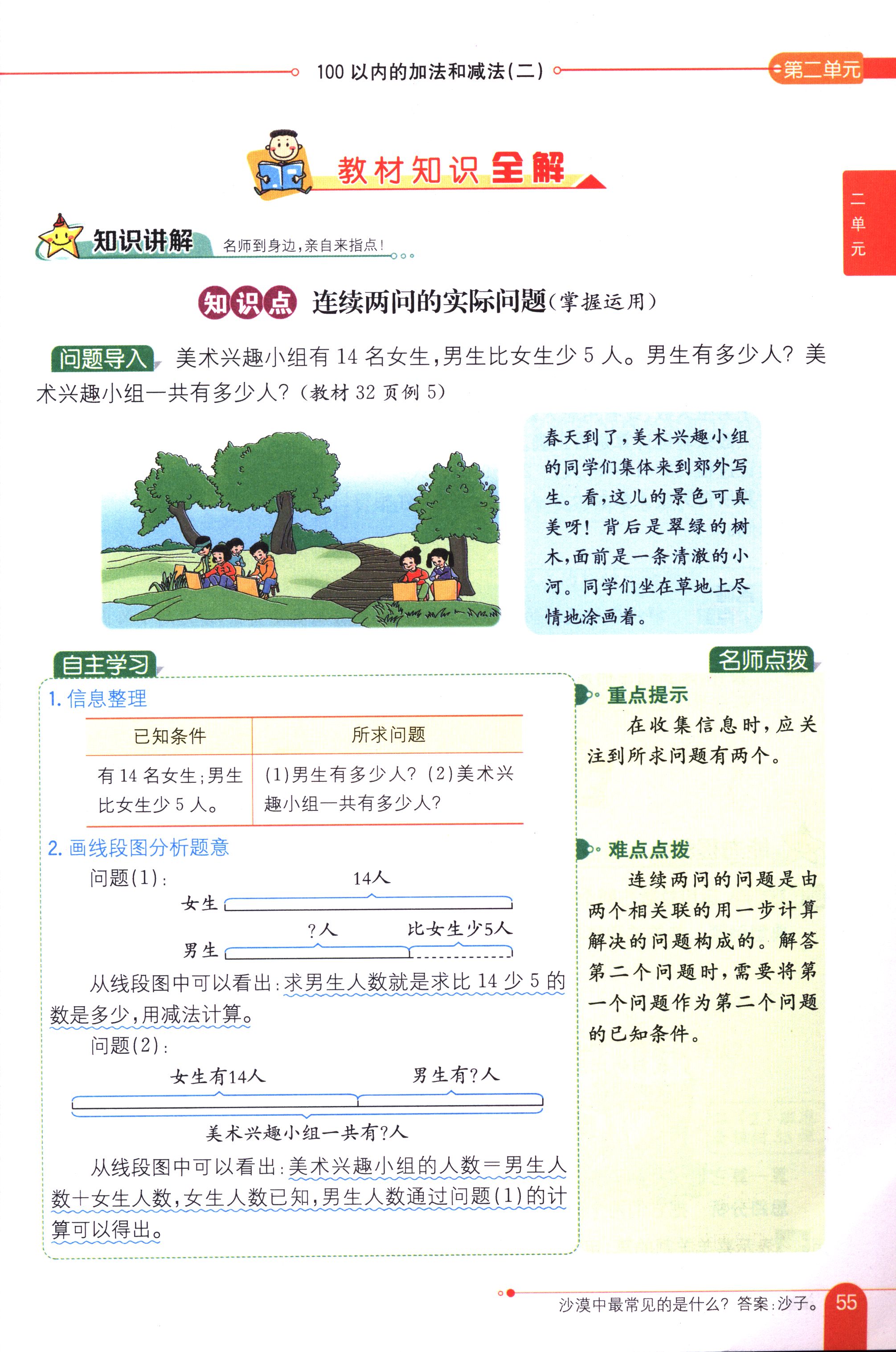 數(shù)學(xué)課本人教版二年級上 第2課時 解決問題