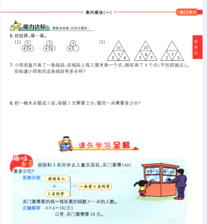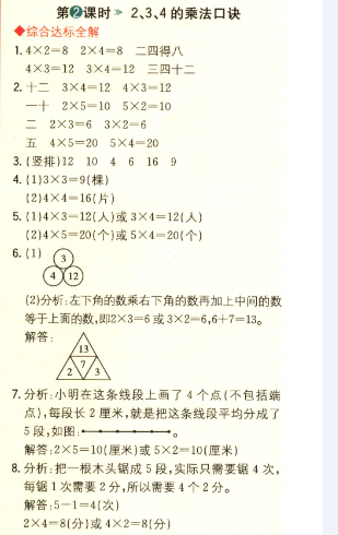 數(shù)學(xué)課本人教版二年級(jí)上 第2課時(shí) 2、3、4的乘法口訣