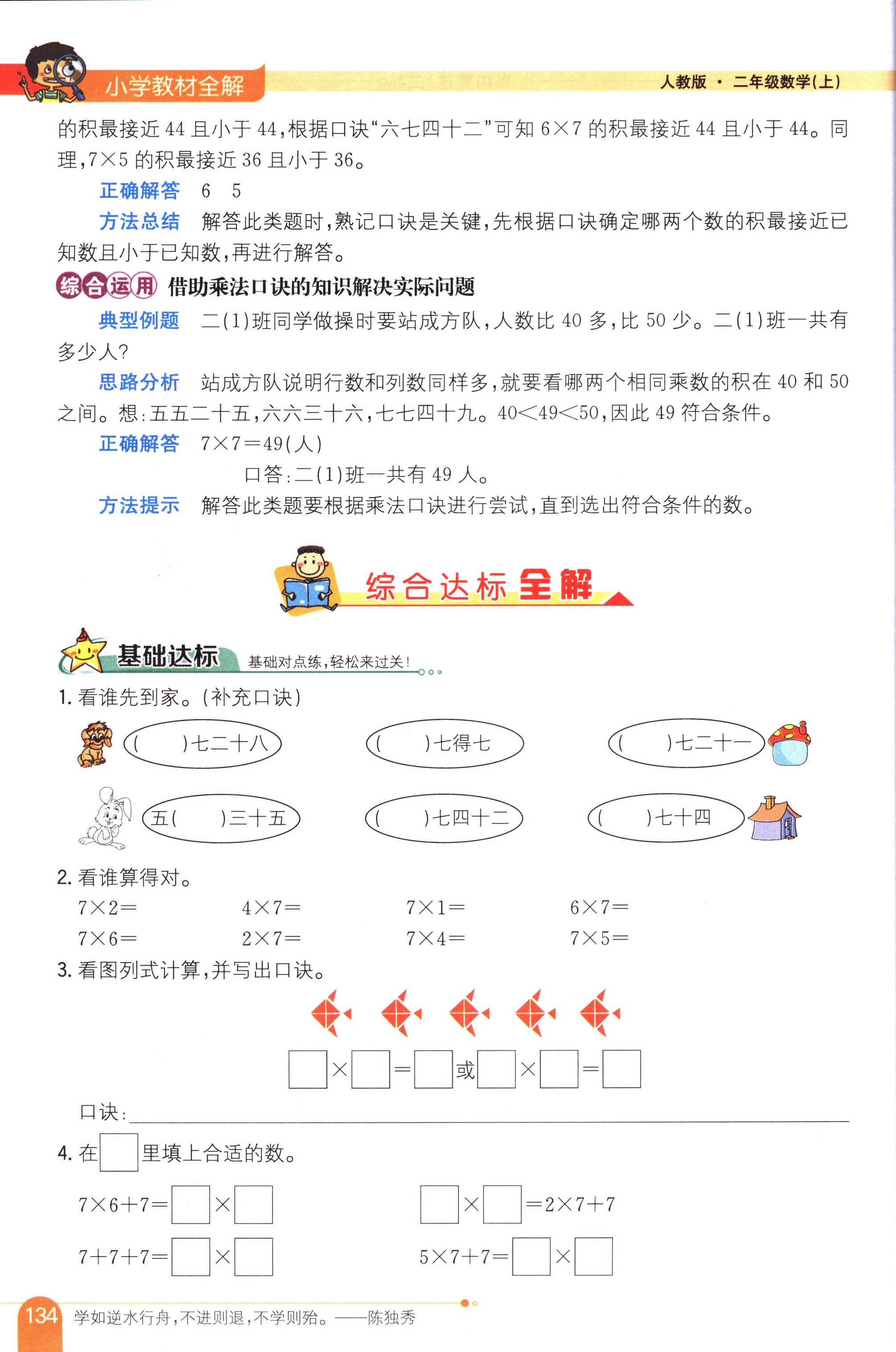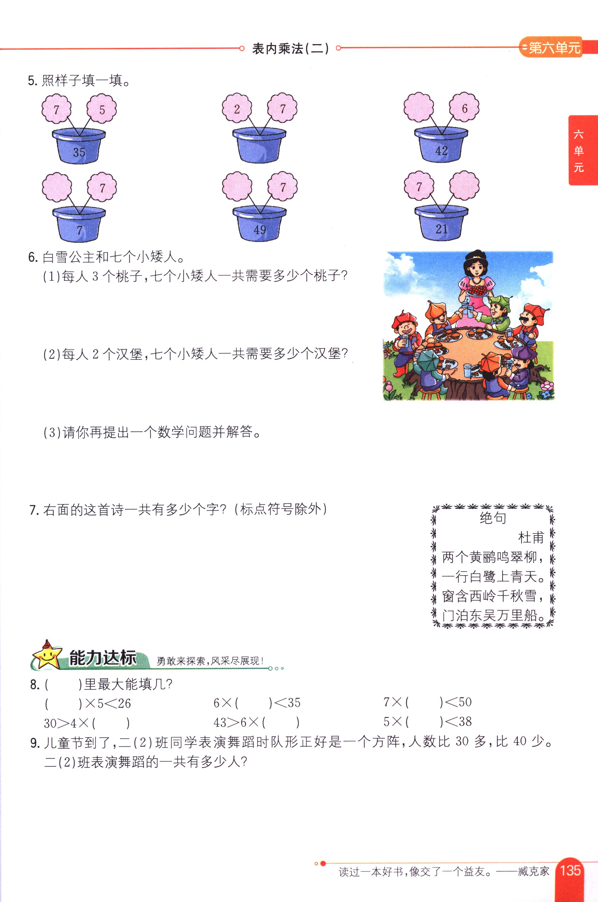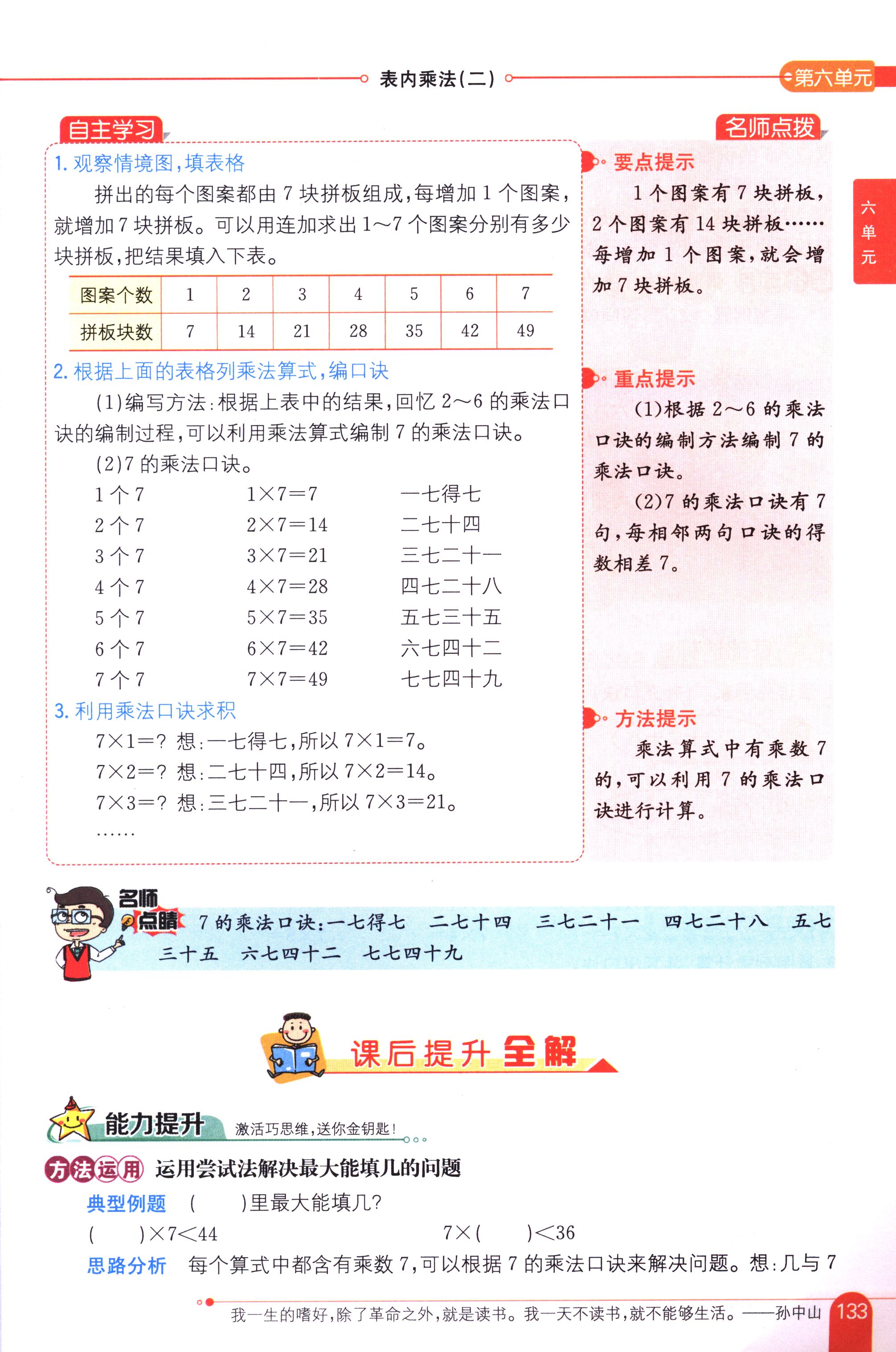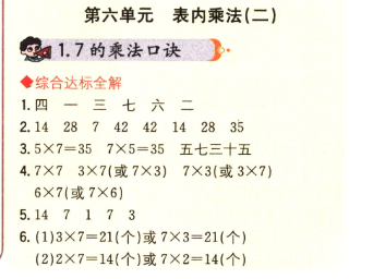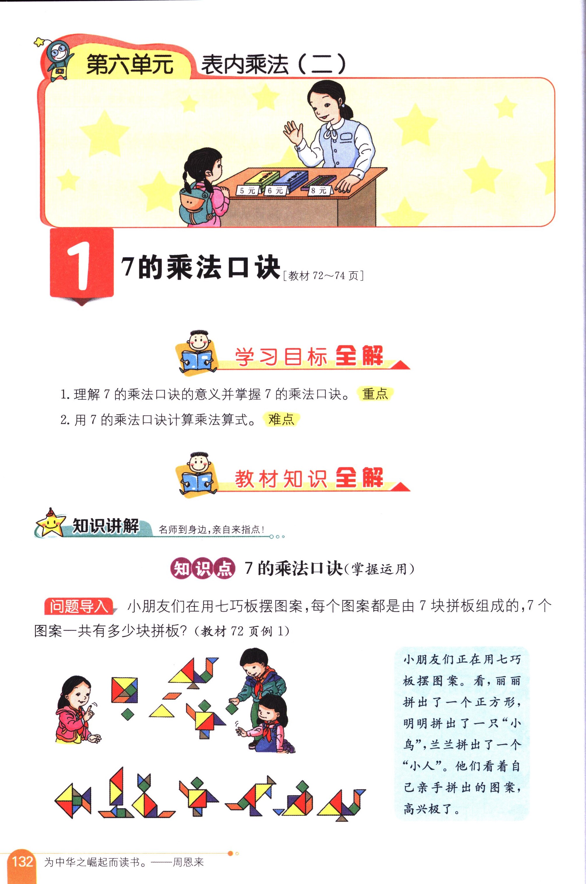 數(shù)學(xué)課本人教版二年級上 6.1 7的乘法口訣 & 表內(nèi)乘法(二)