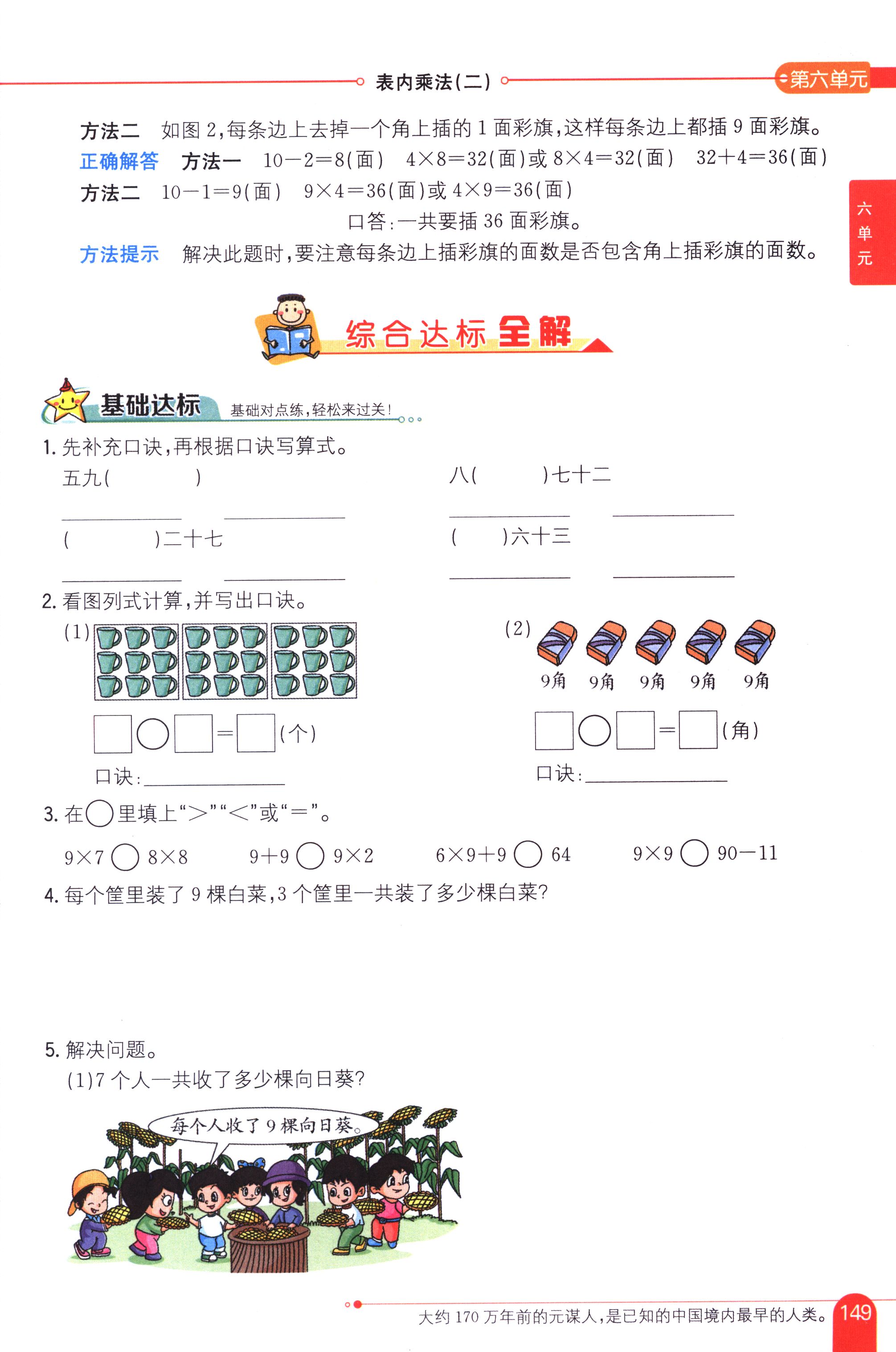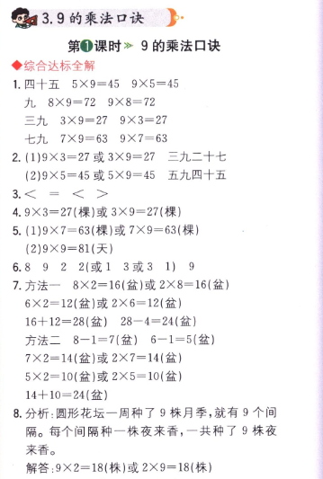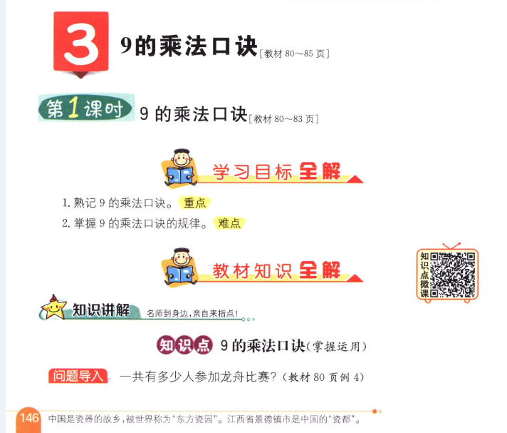 數(shù)學(xué)課本人教版二年級(jí)上 第1課時(shí) 9的乘法口訣