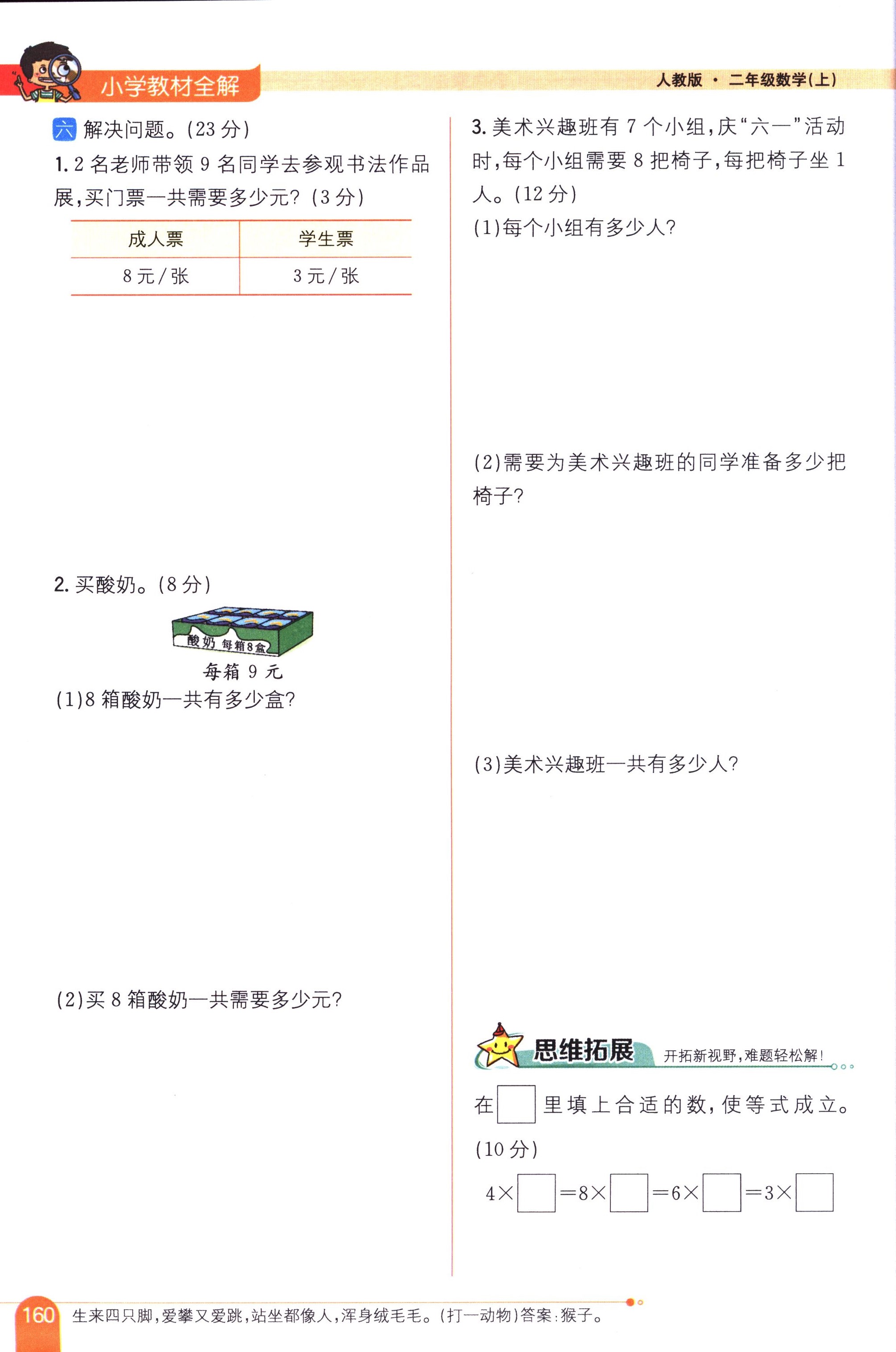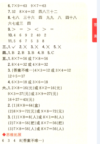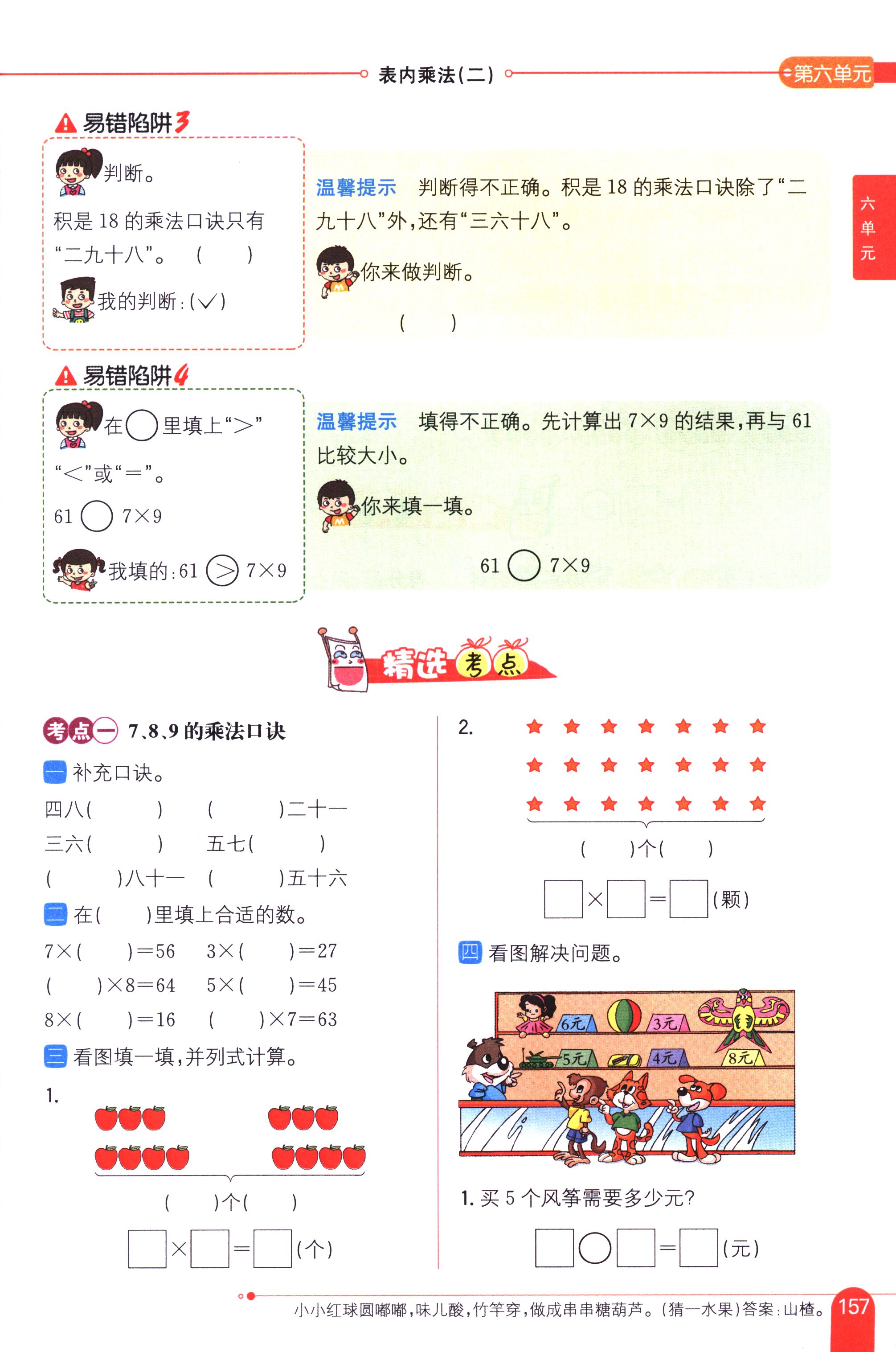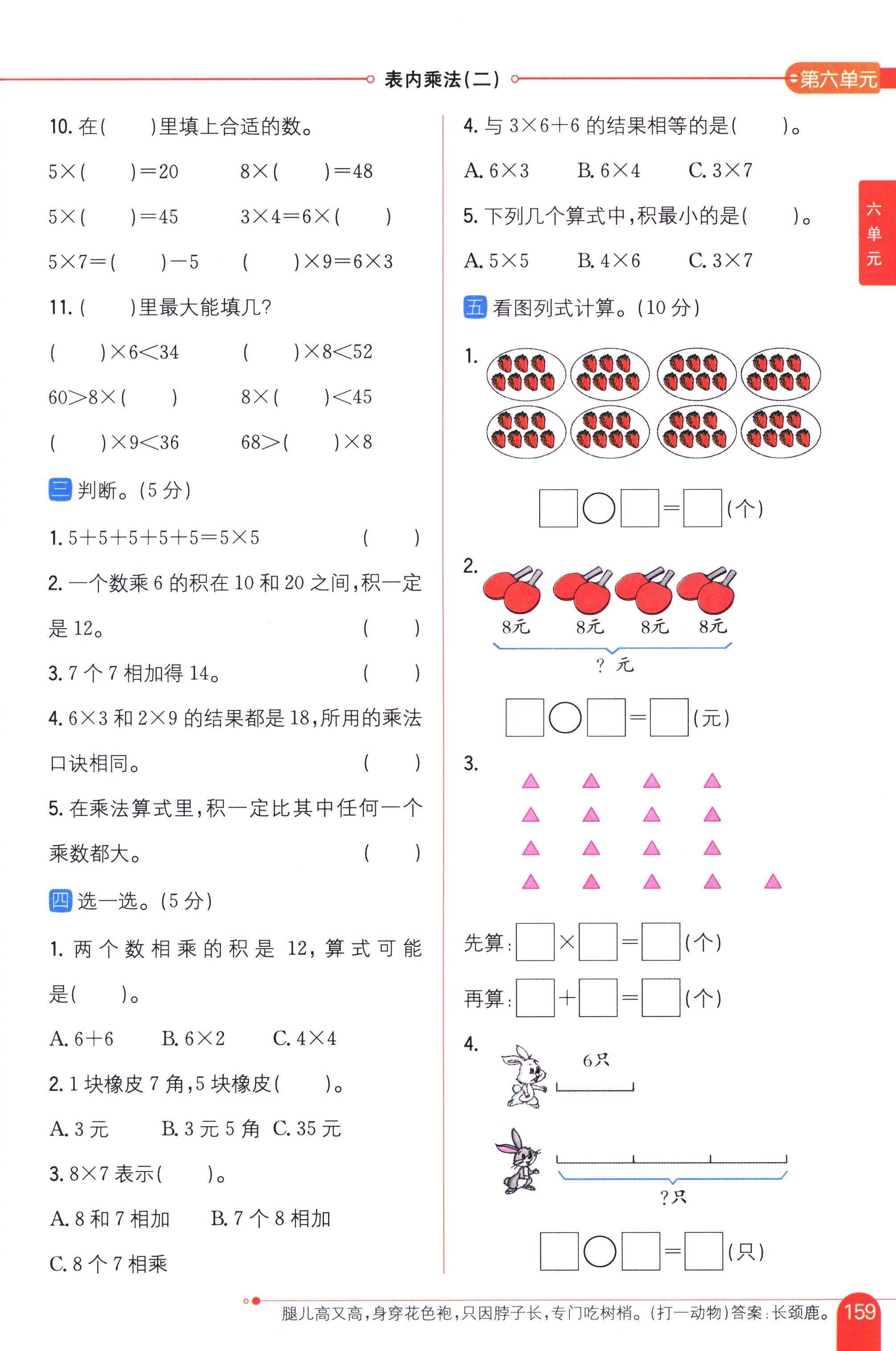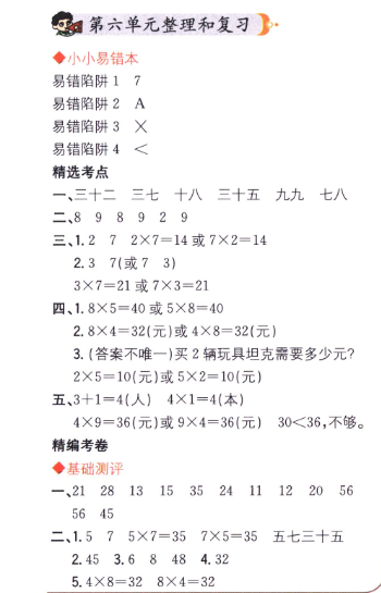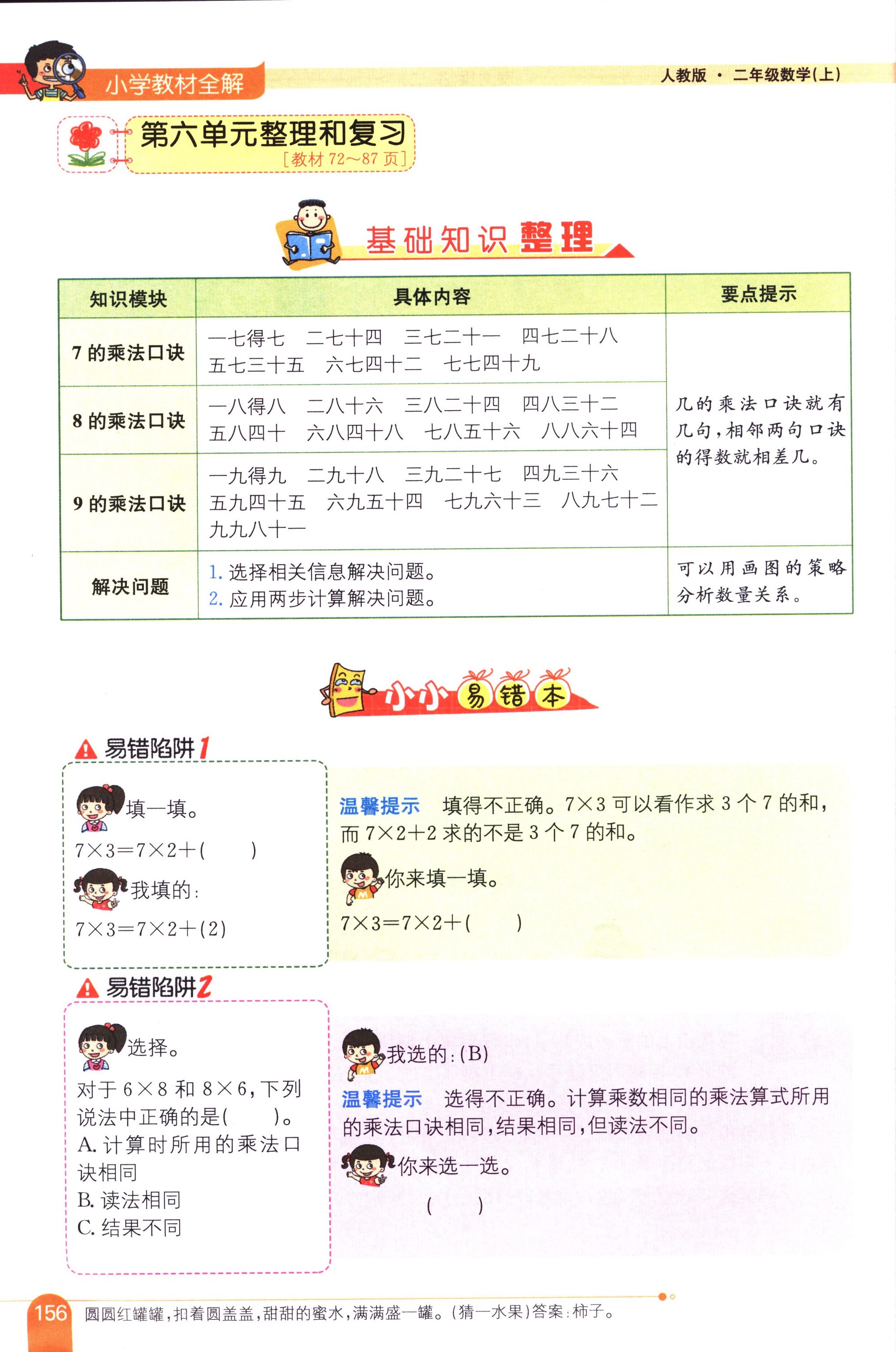 數(shù)學(xué)課本人教版二年級上 第六單元整理和復(fù)習(xí)