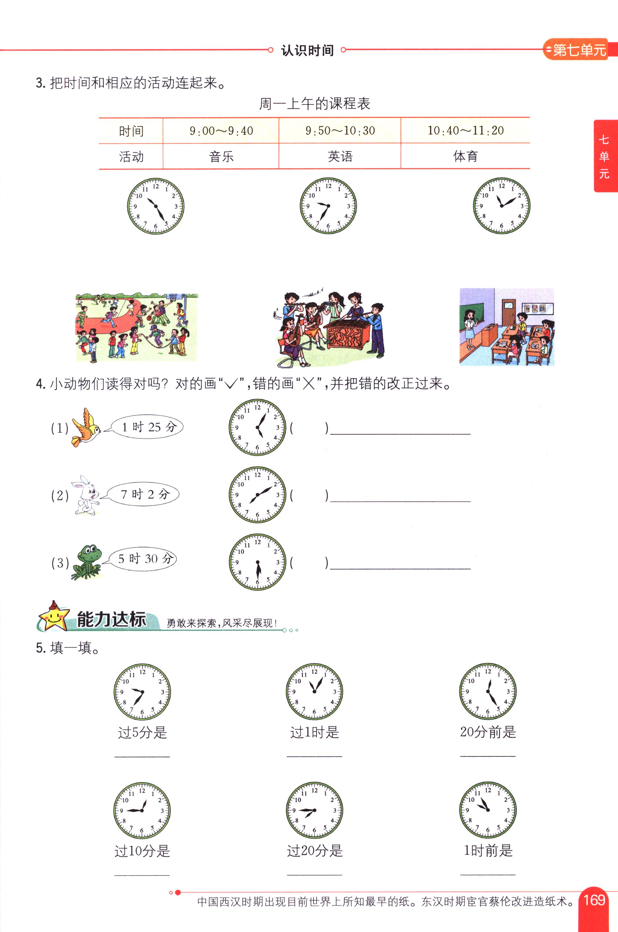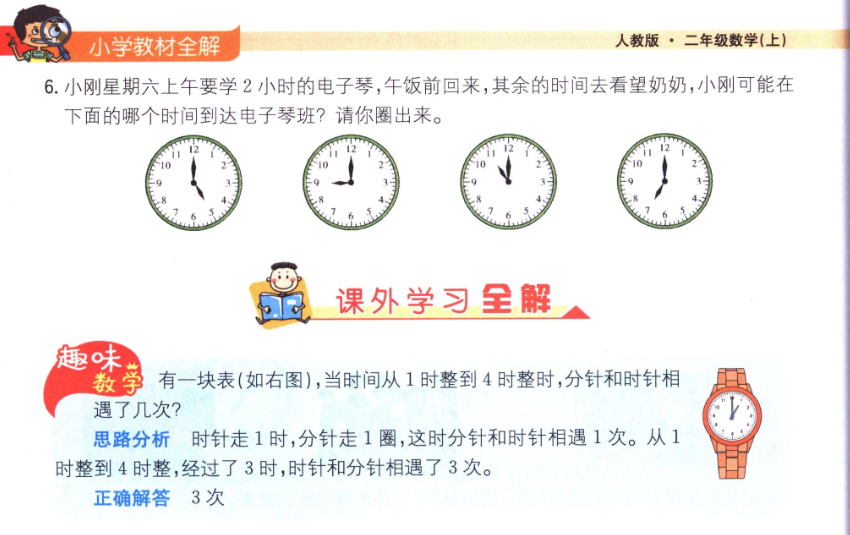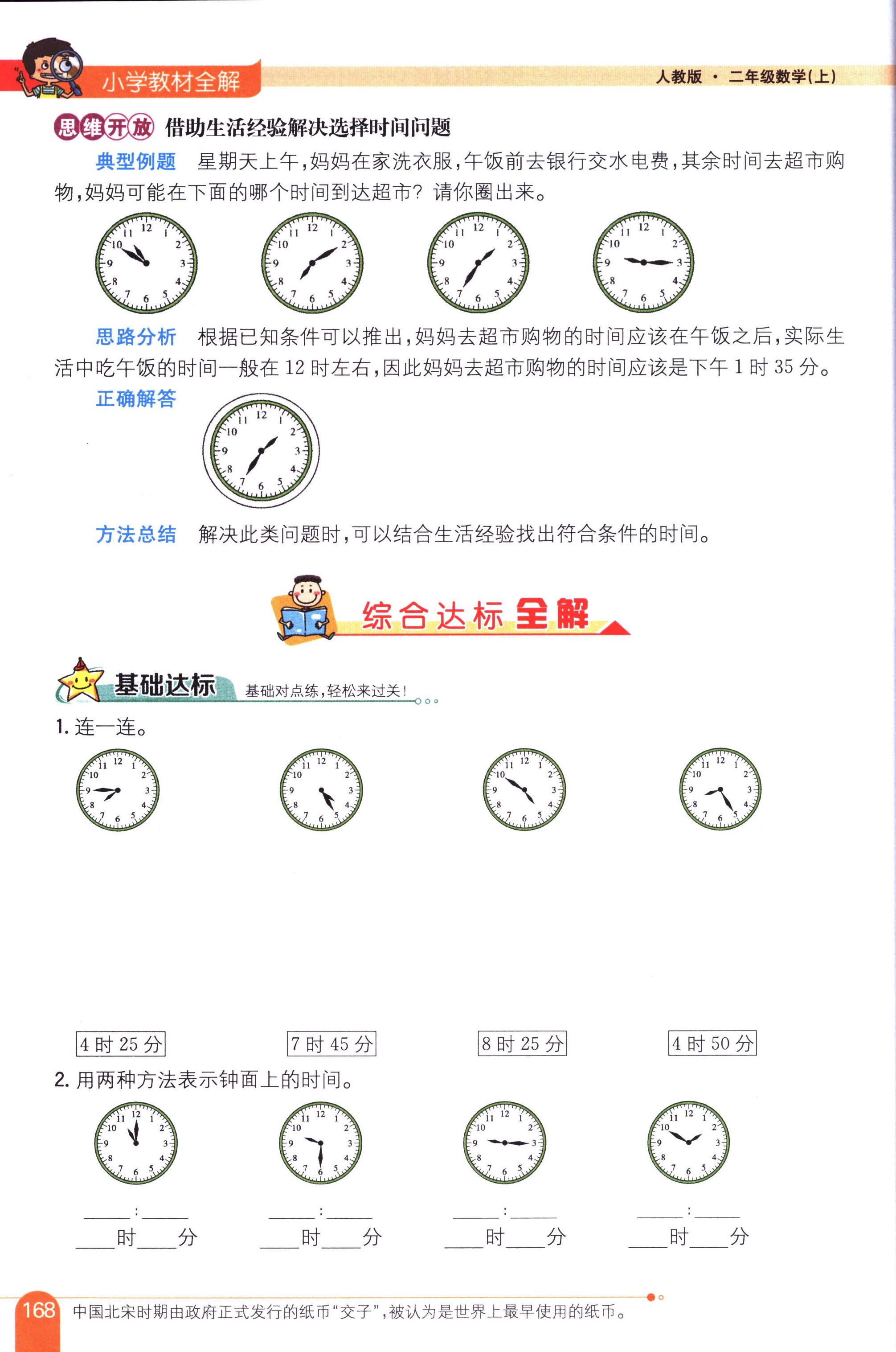 數(shù)學(xué)課本人教版二年級(jí)上 認(rèn)識(shí)時(shí)間