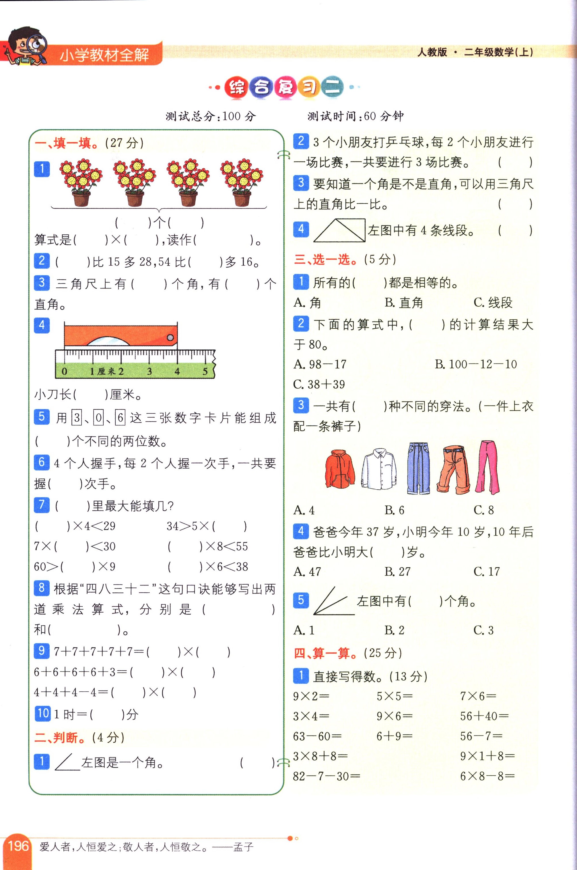 數(shù)學(xué)課本人教版二年級上 綜合復(fù)習(xí)二