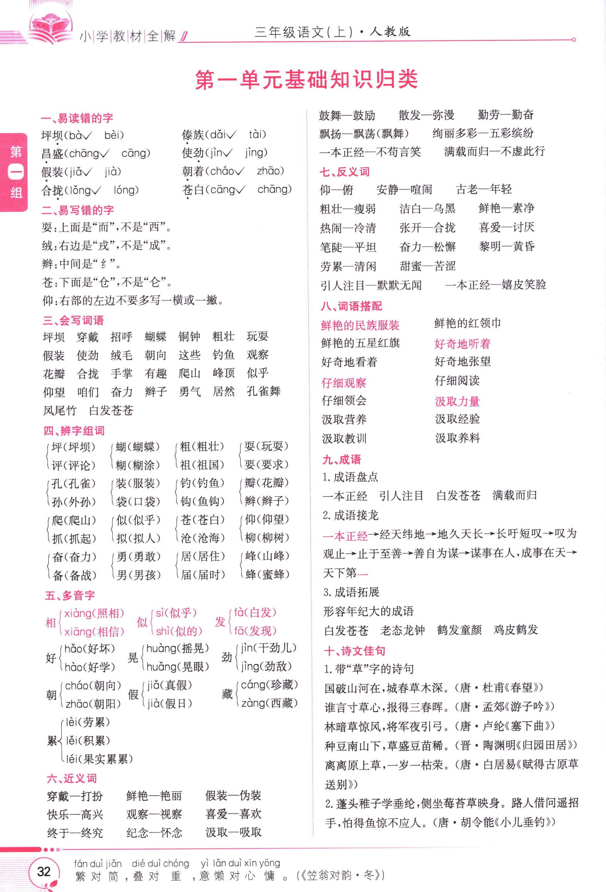 第一單元基礎(chǔ)知識歸類
