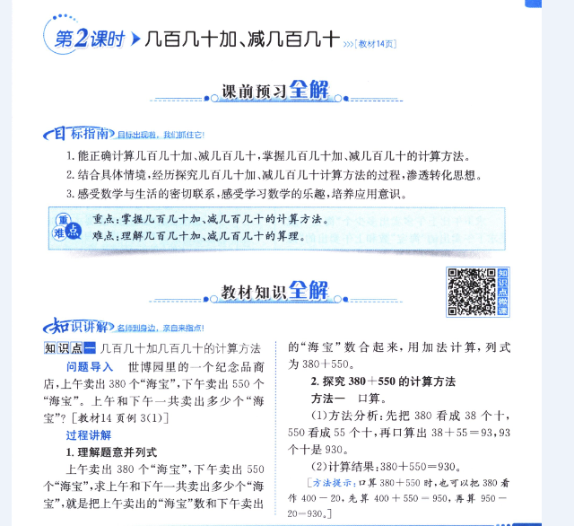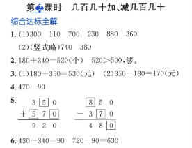 數(shù)學(xué)課本人教版三年級(jí)上 第2課時(shí) 幾百幾十加、減幾百幾十