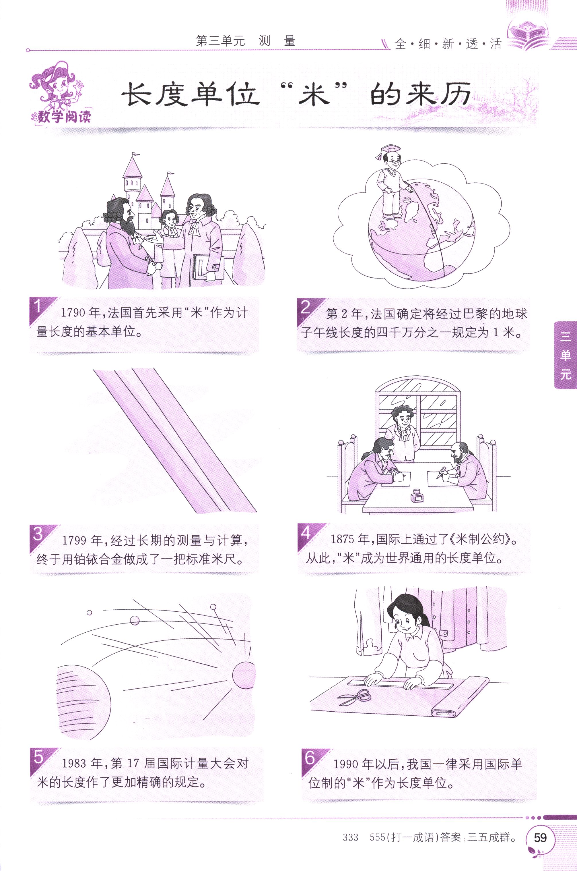 數(shù)學(xué)課本人教版三年級(jí)上 數(shù)學(xué)閱讀 長度單位“米”的來歷