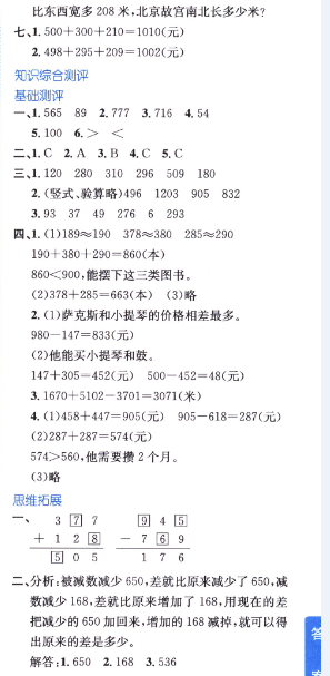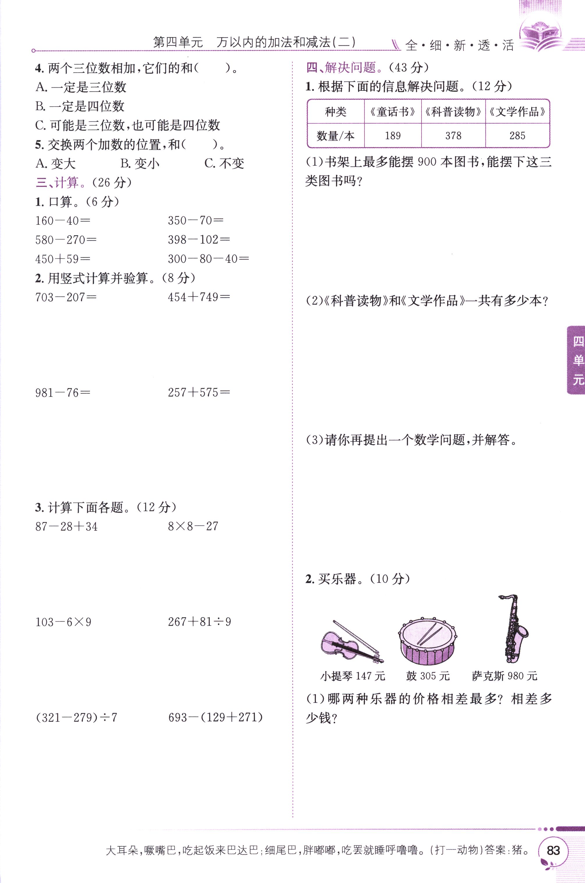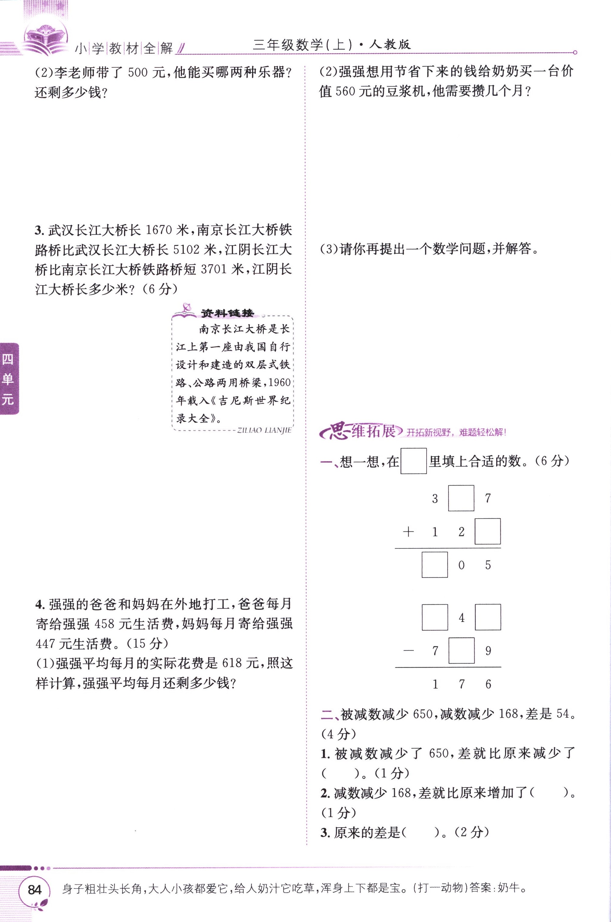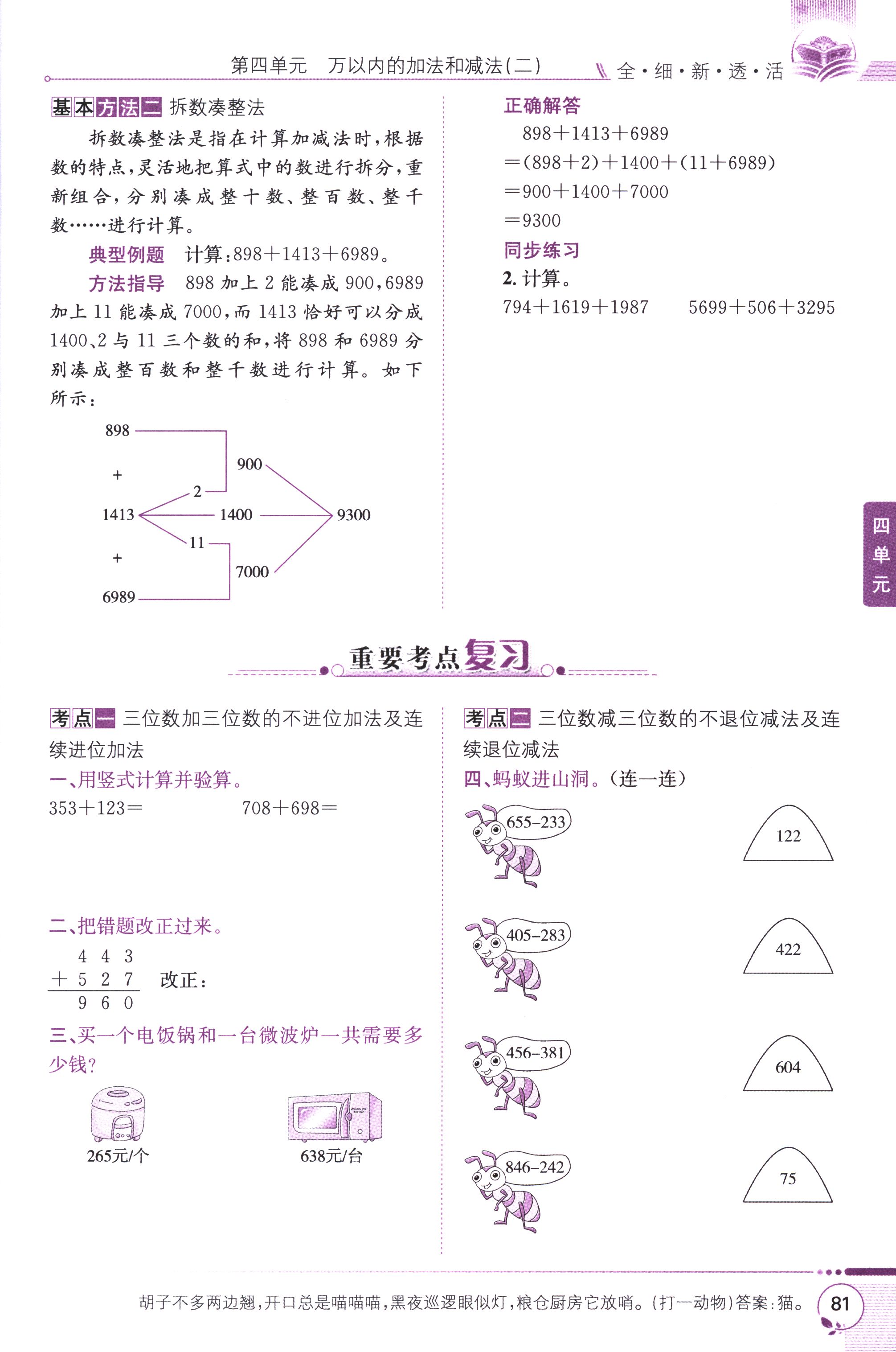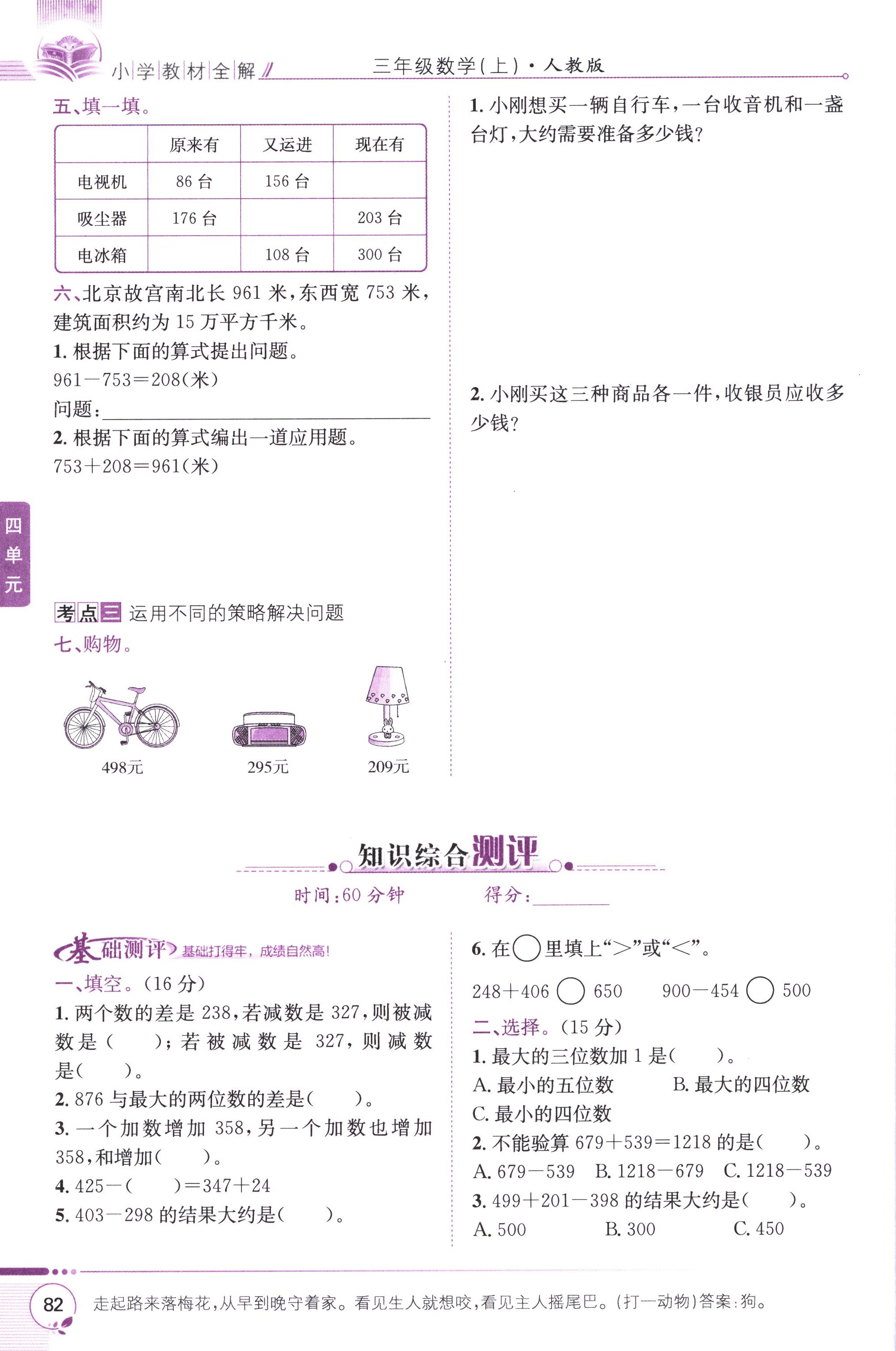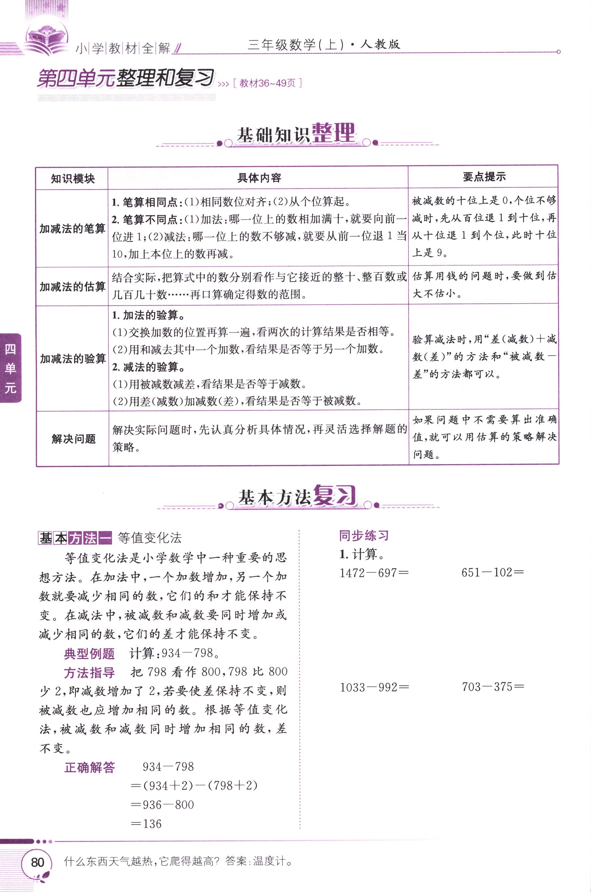 數(shù)學(xué)課本人教版三年級(jí)上 第四單元整理和復(fù)習(xí)