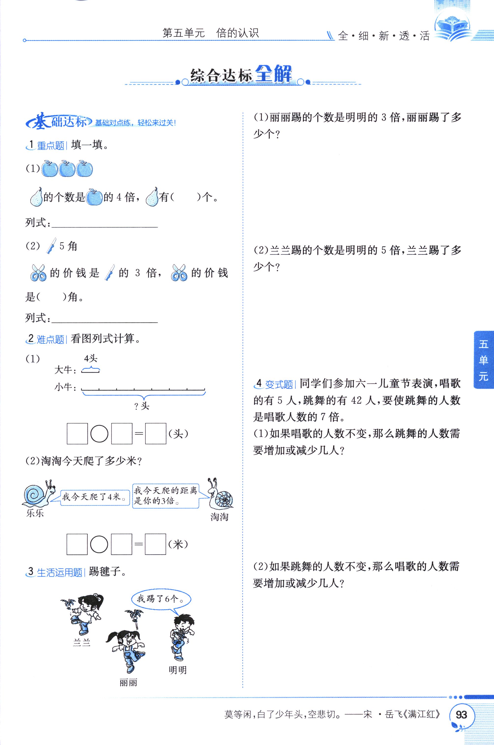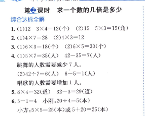 數(shù)學(xué)課本人教版三年級上 第2課時(shí) 求一個(gè)數(shù)的幾倍是多少