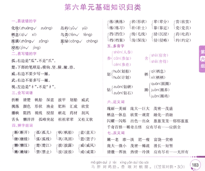 第六單元基礎(chǔ)知識(shí)歸類