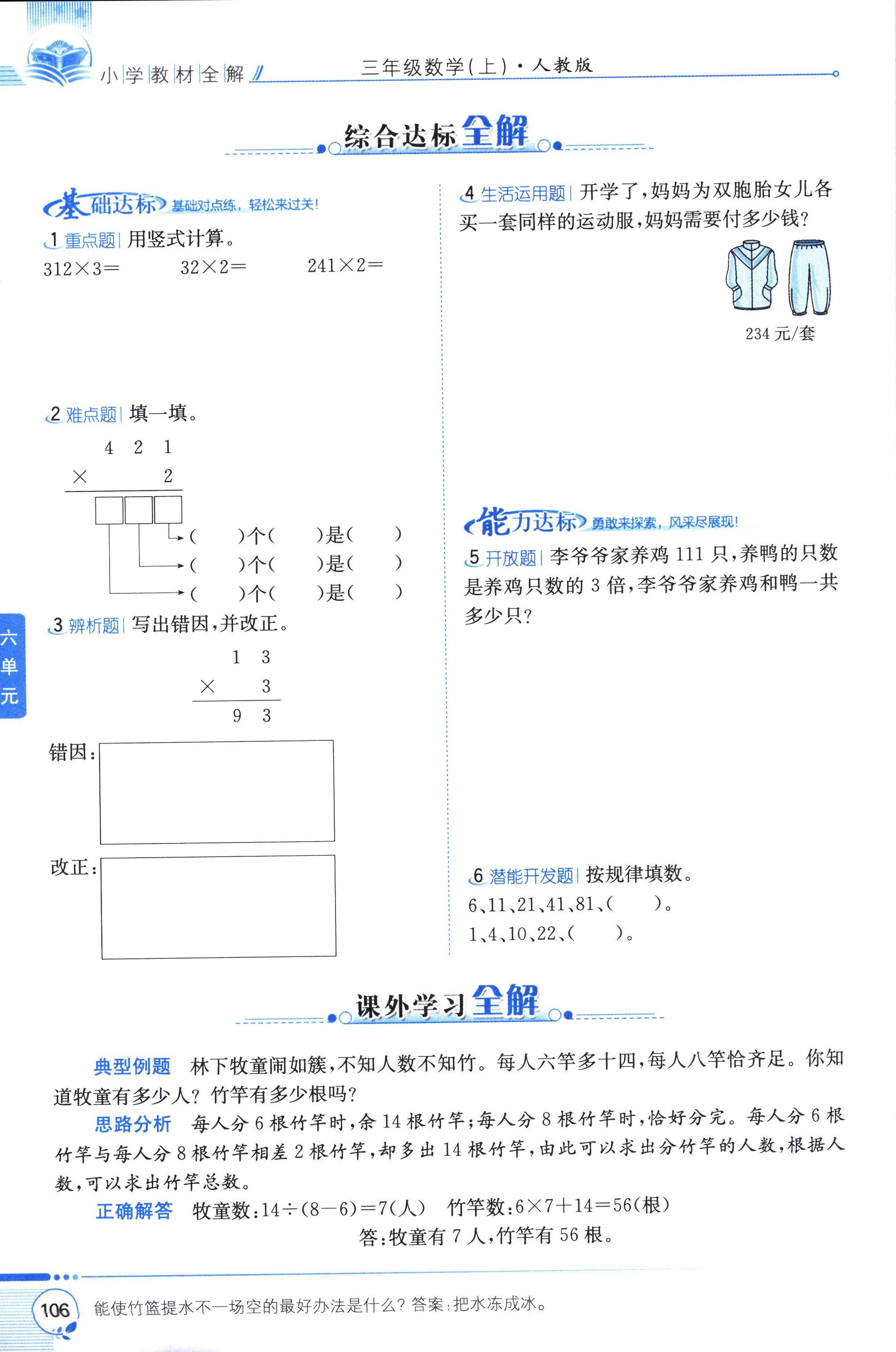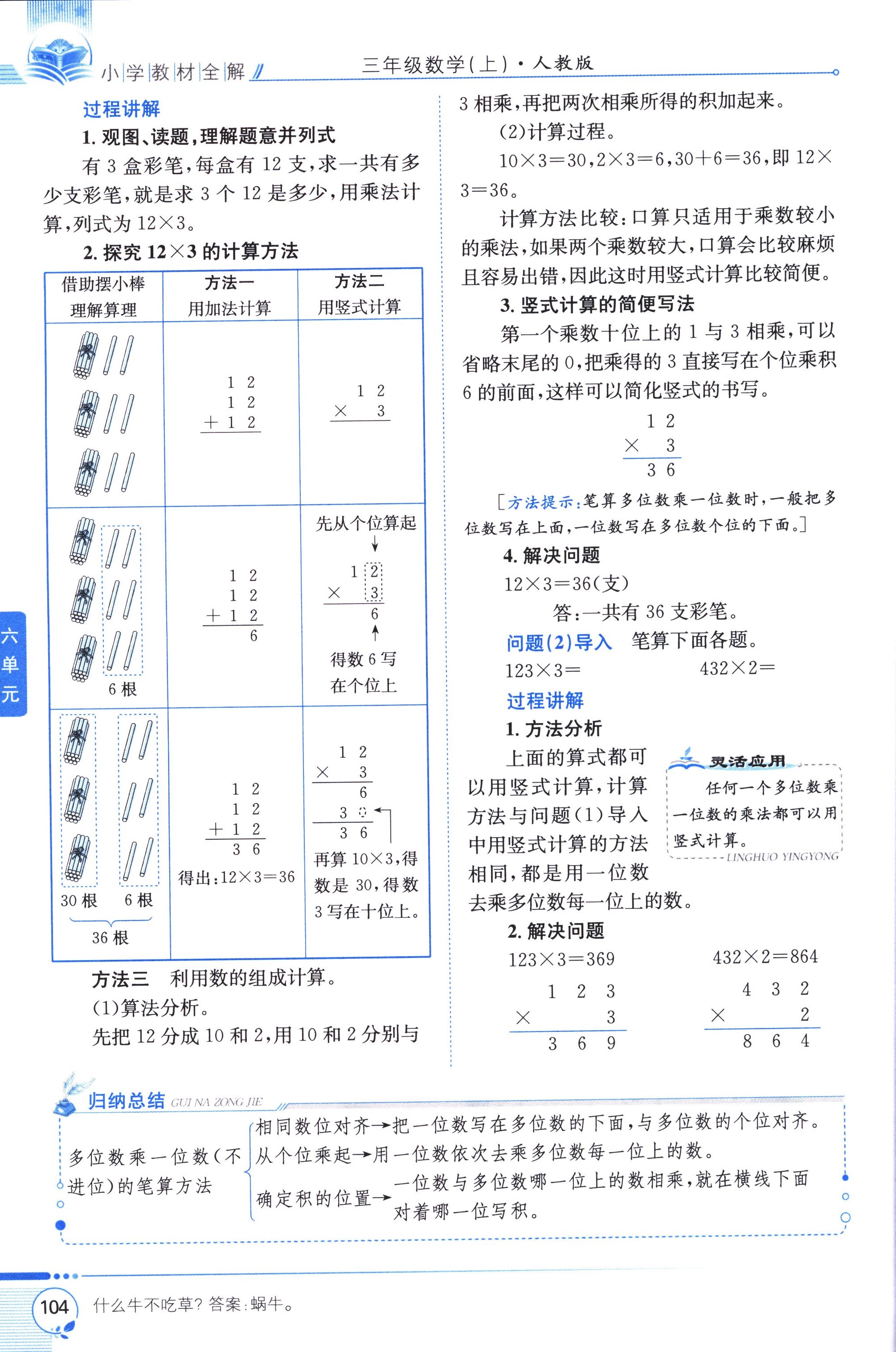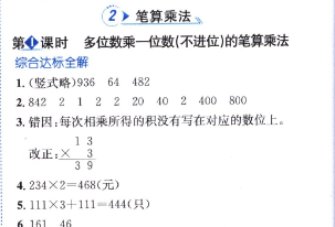 數(shù)學課本人教版三年級上 2.筆算乘法-第1課時 多位數(shù)乘一位數(shù)(不進位)的筆算乘法