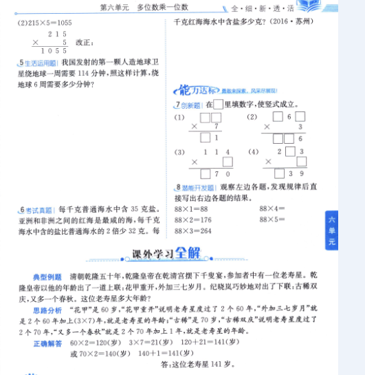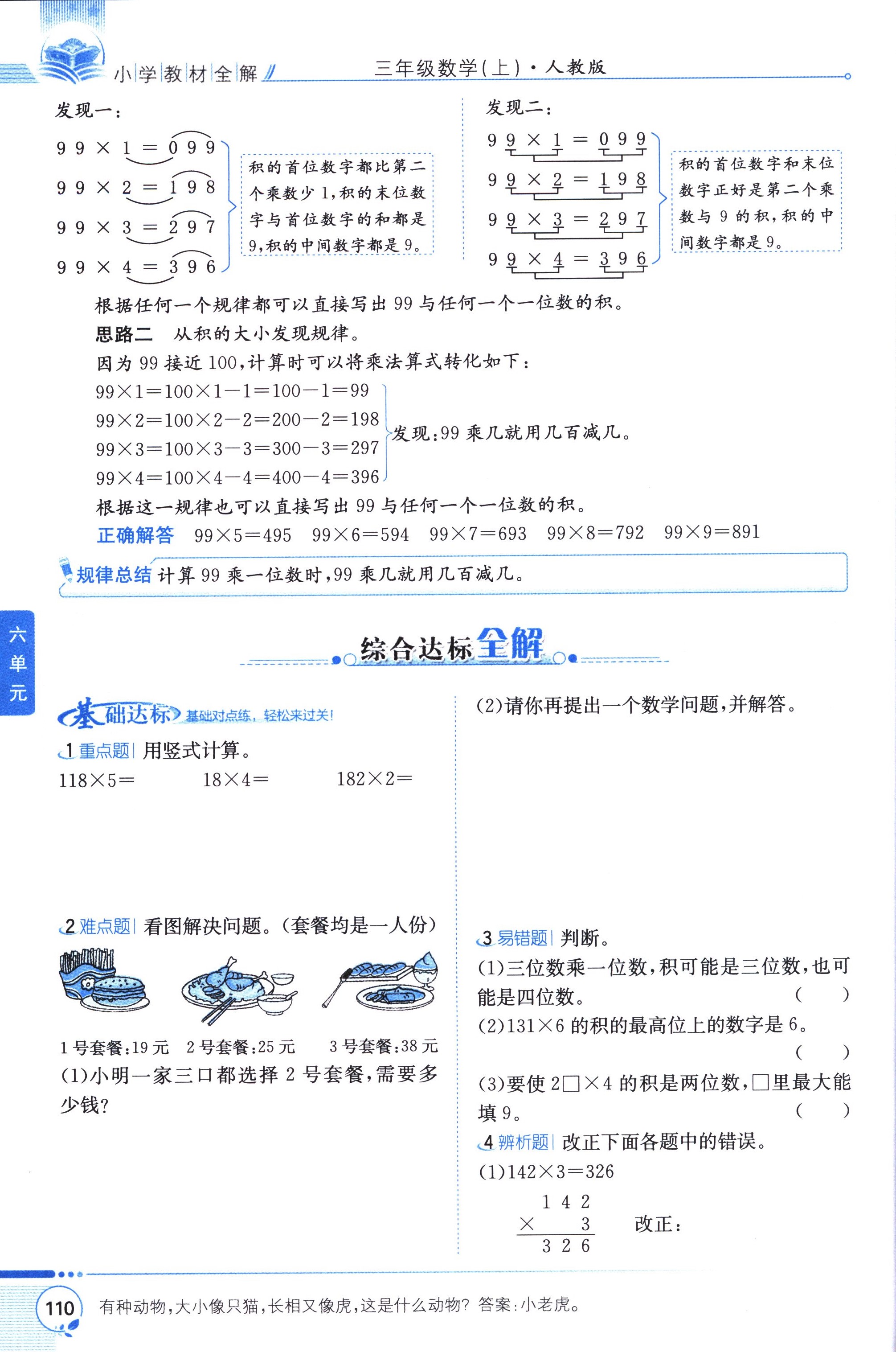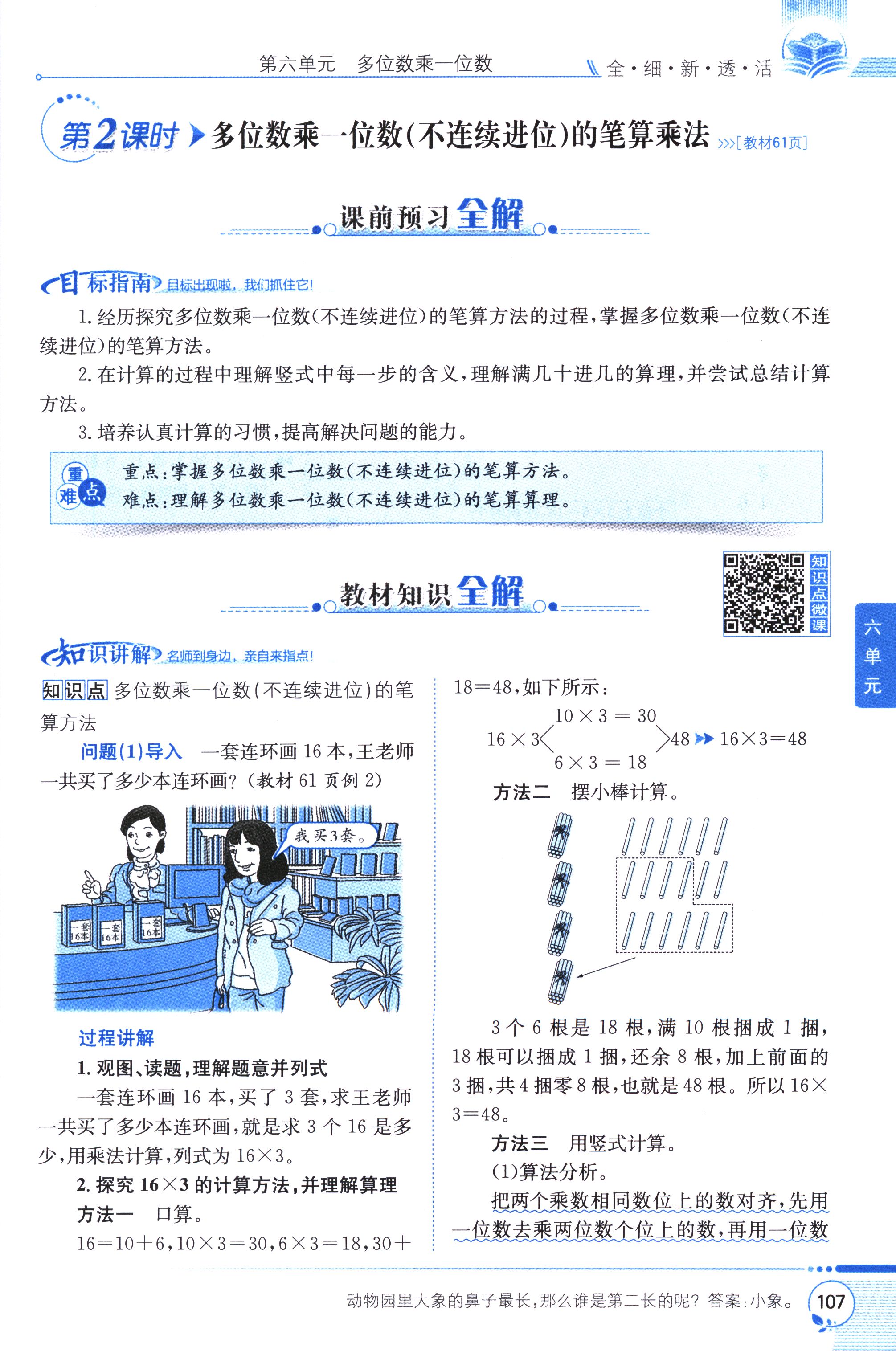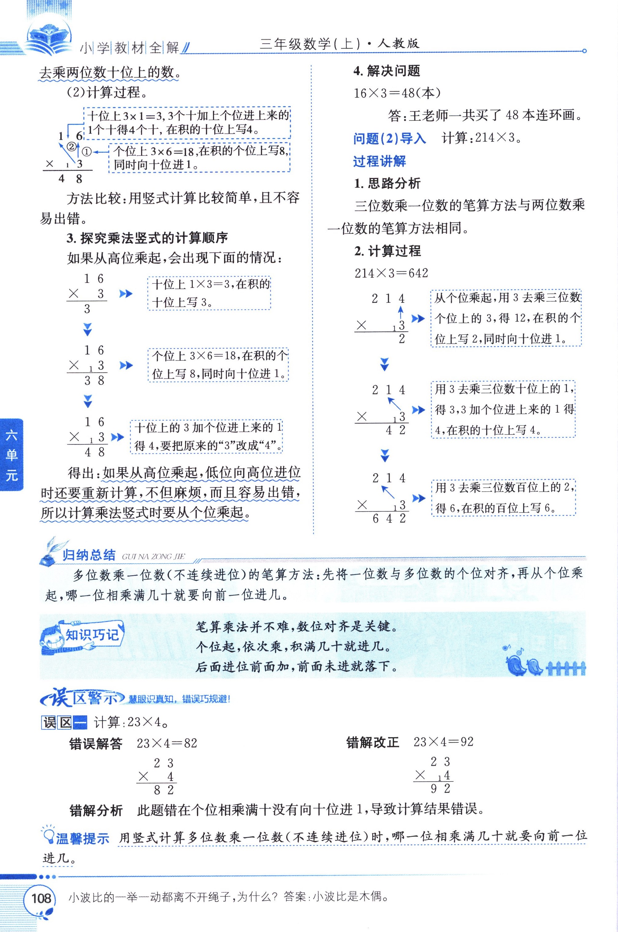 數(shù)學課本人教版三年級上 第2課時 多位數(shù)乘一位數(shù)(不連續(xù)進位)的筆算乘法