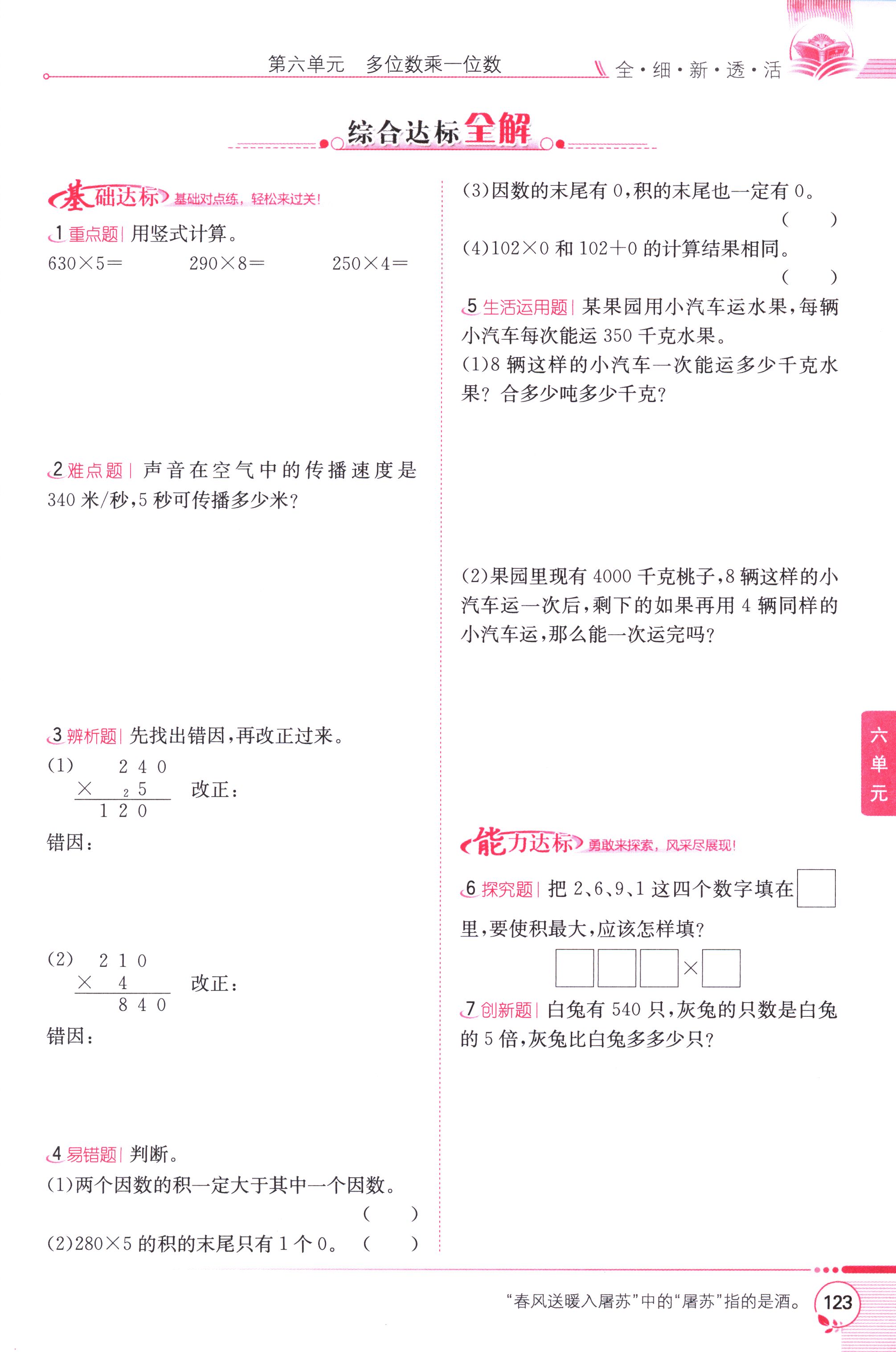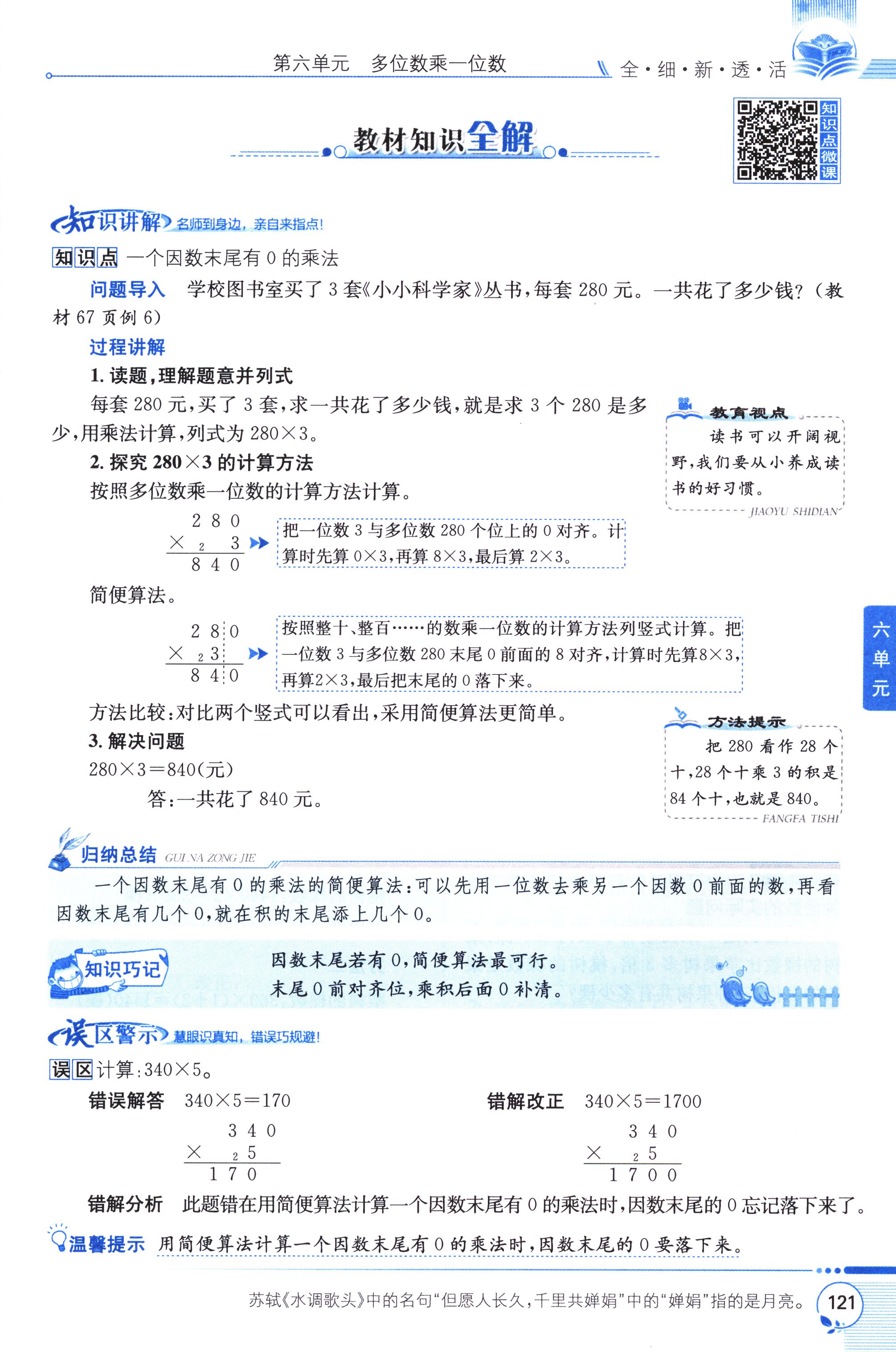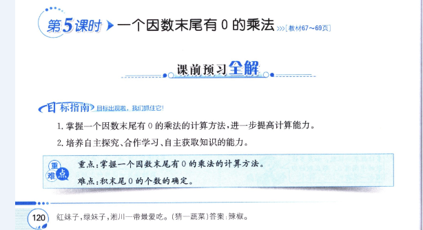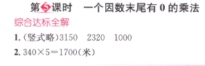 數(shù)學(xué)課本人教版三年級上 第5課時(shí) 一個(gè)因數(shù)末尾有0的乘法