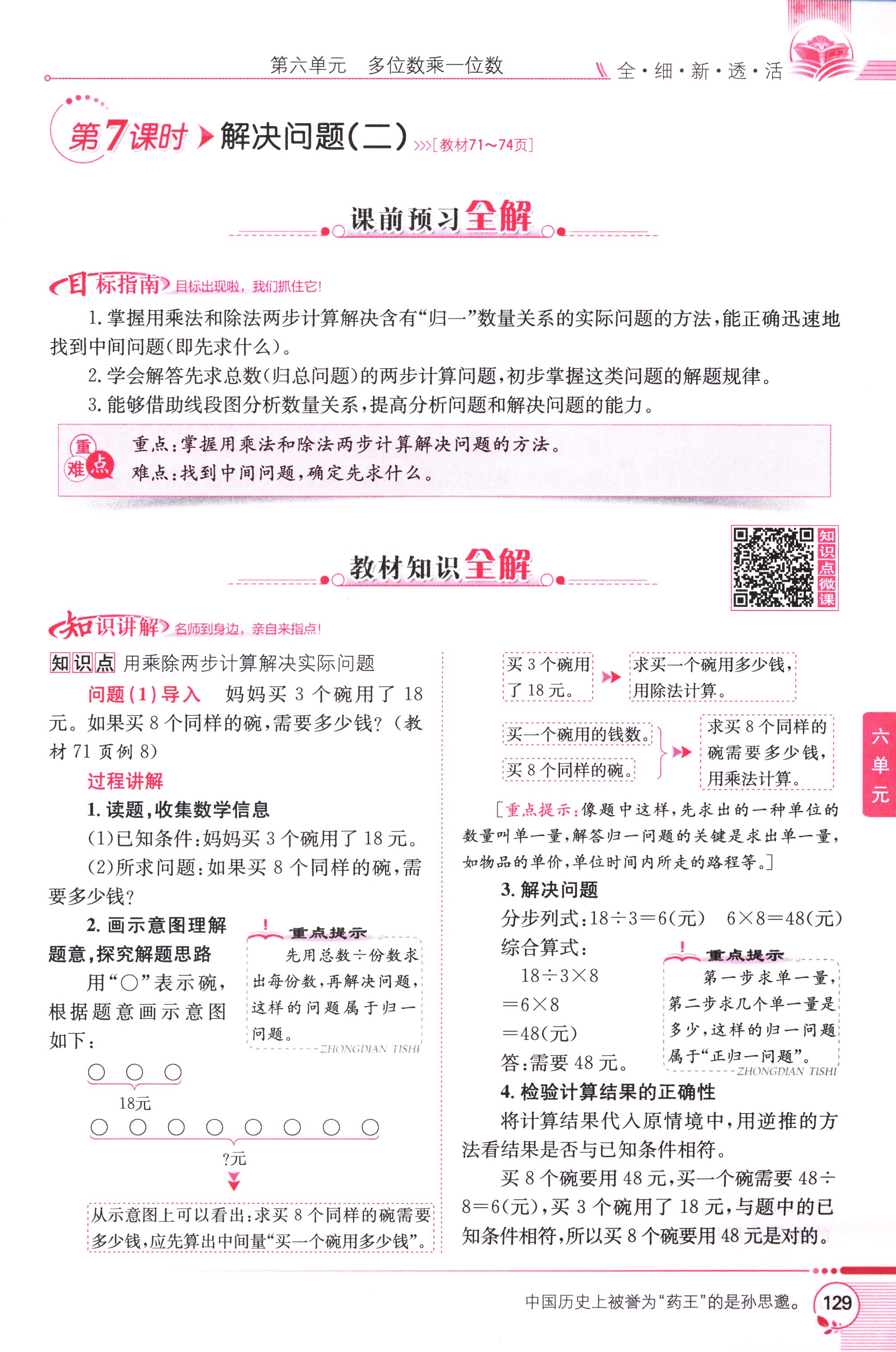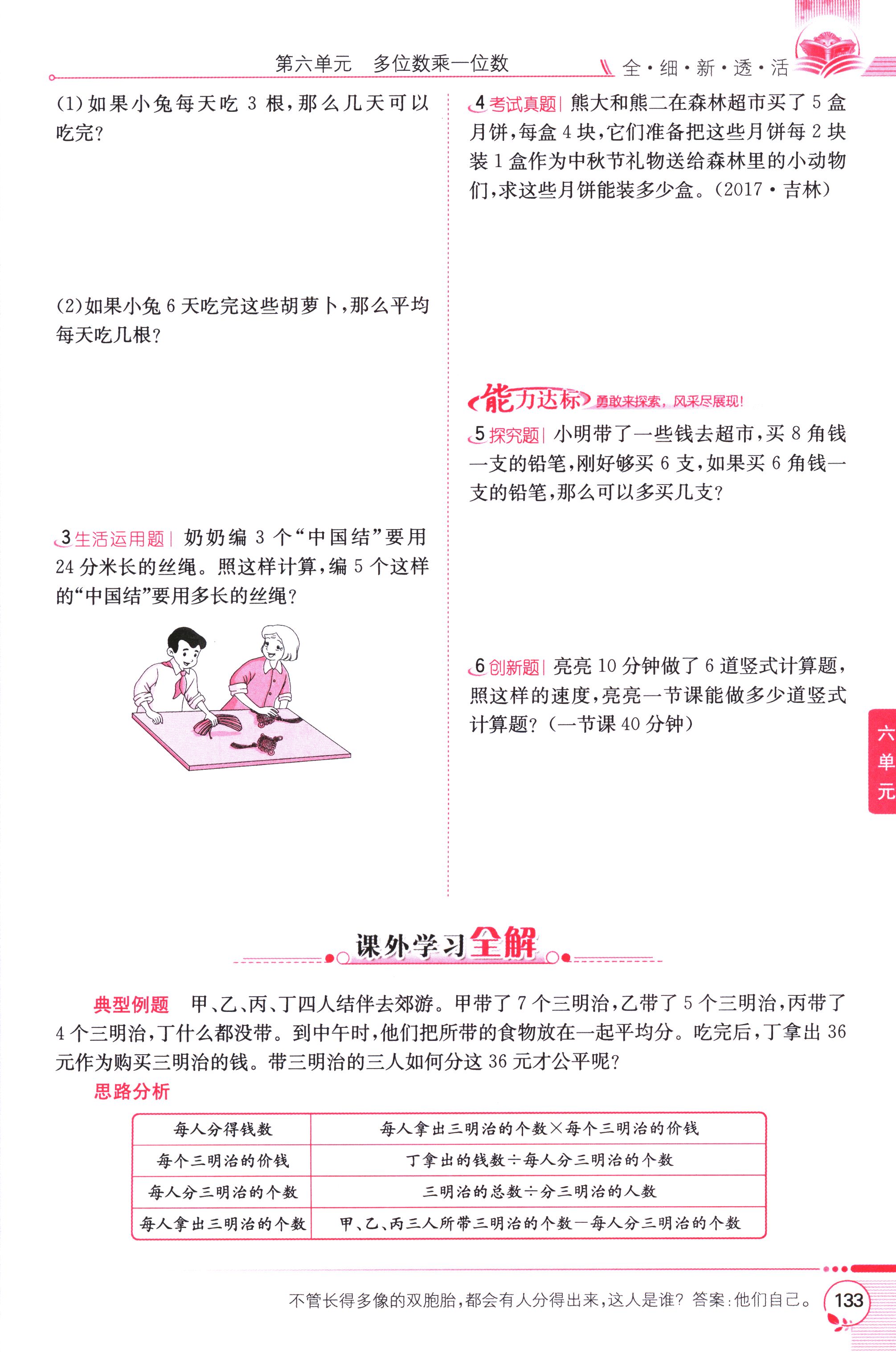 數(shù)學(xué)課本人教版三年級上 第7課時 解決問題(二)