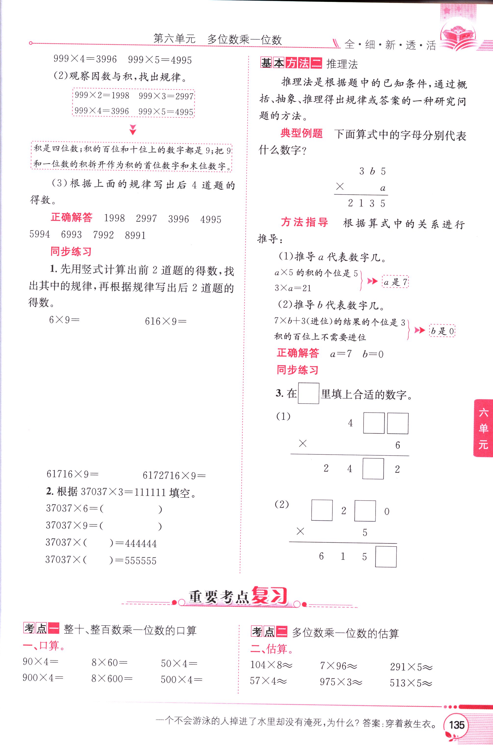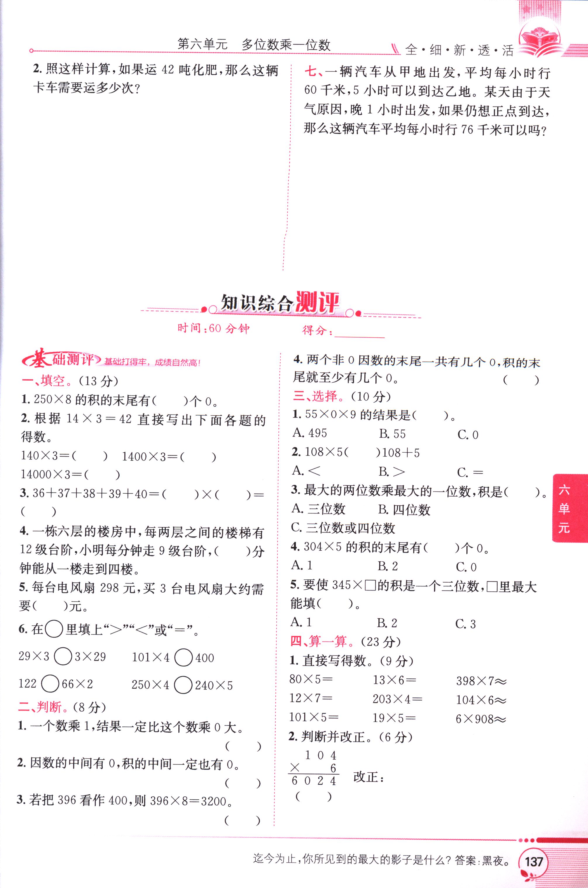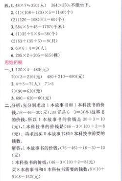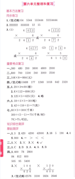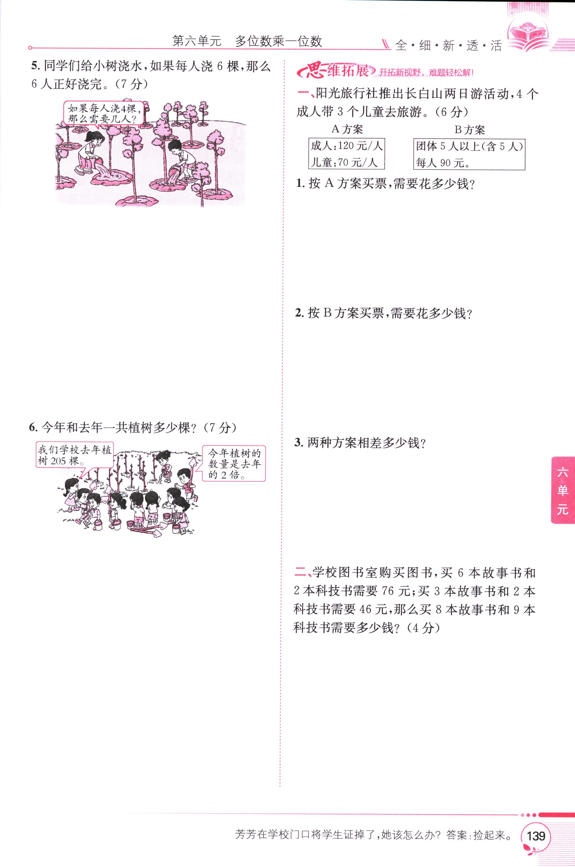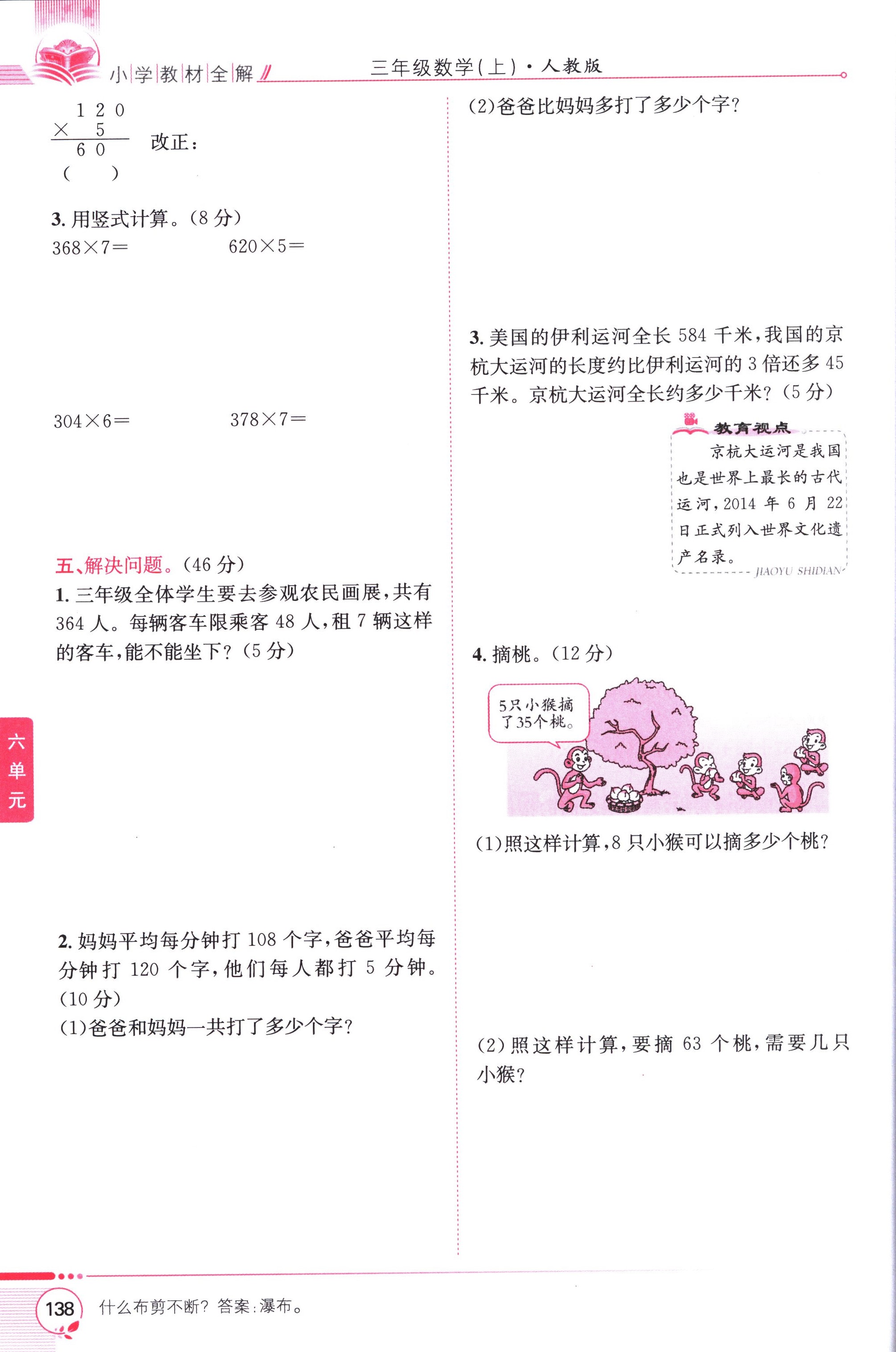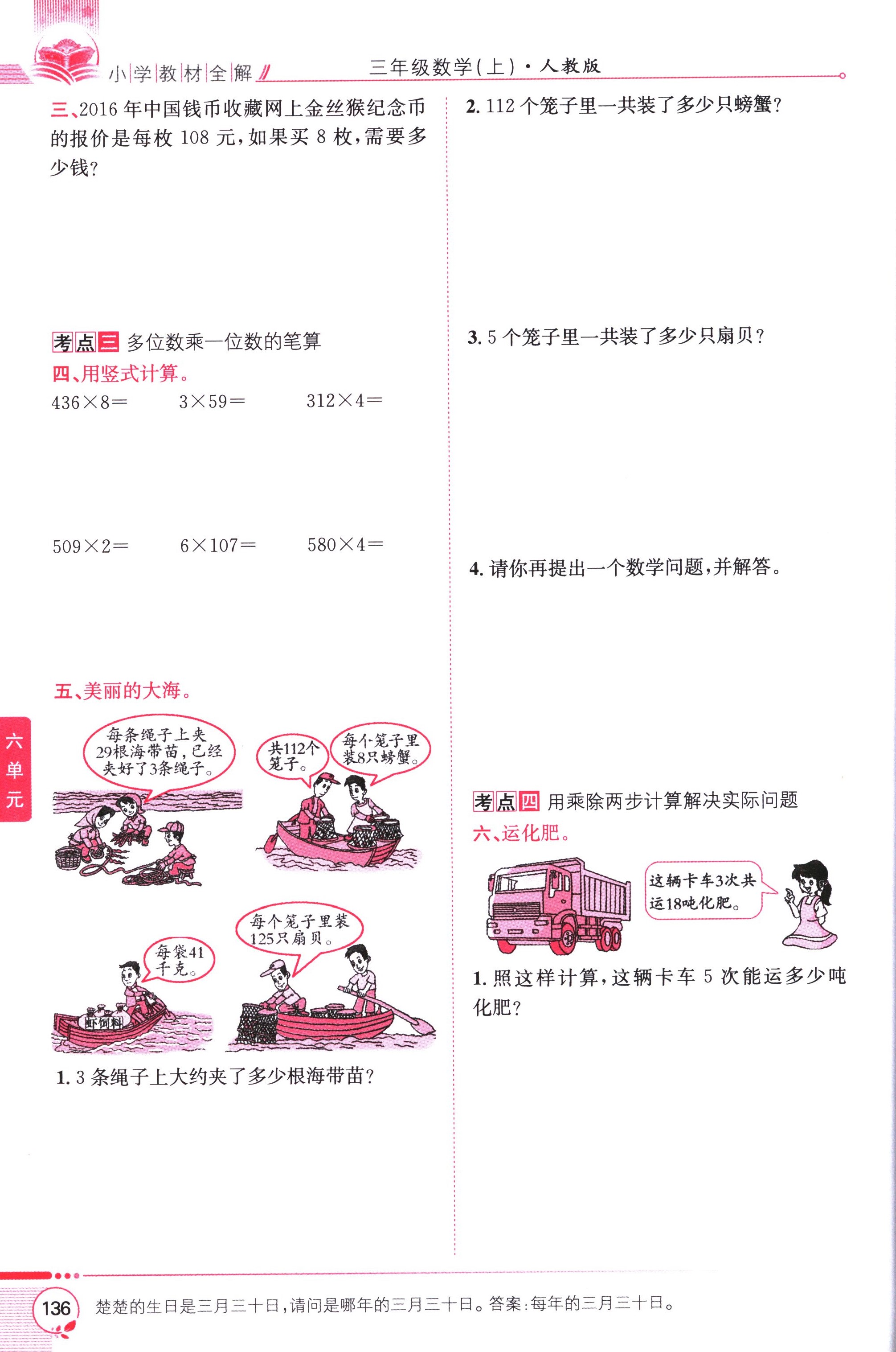 數(shù)學課本人教版三年級上 第六單元整理和復(fù)習