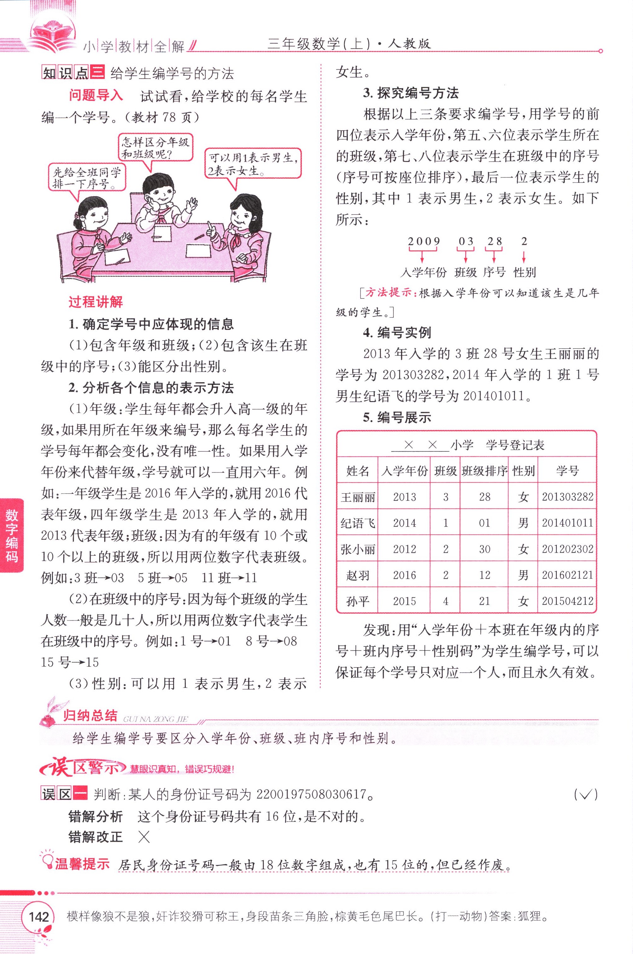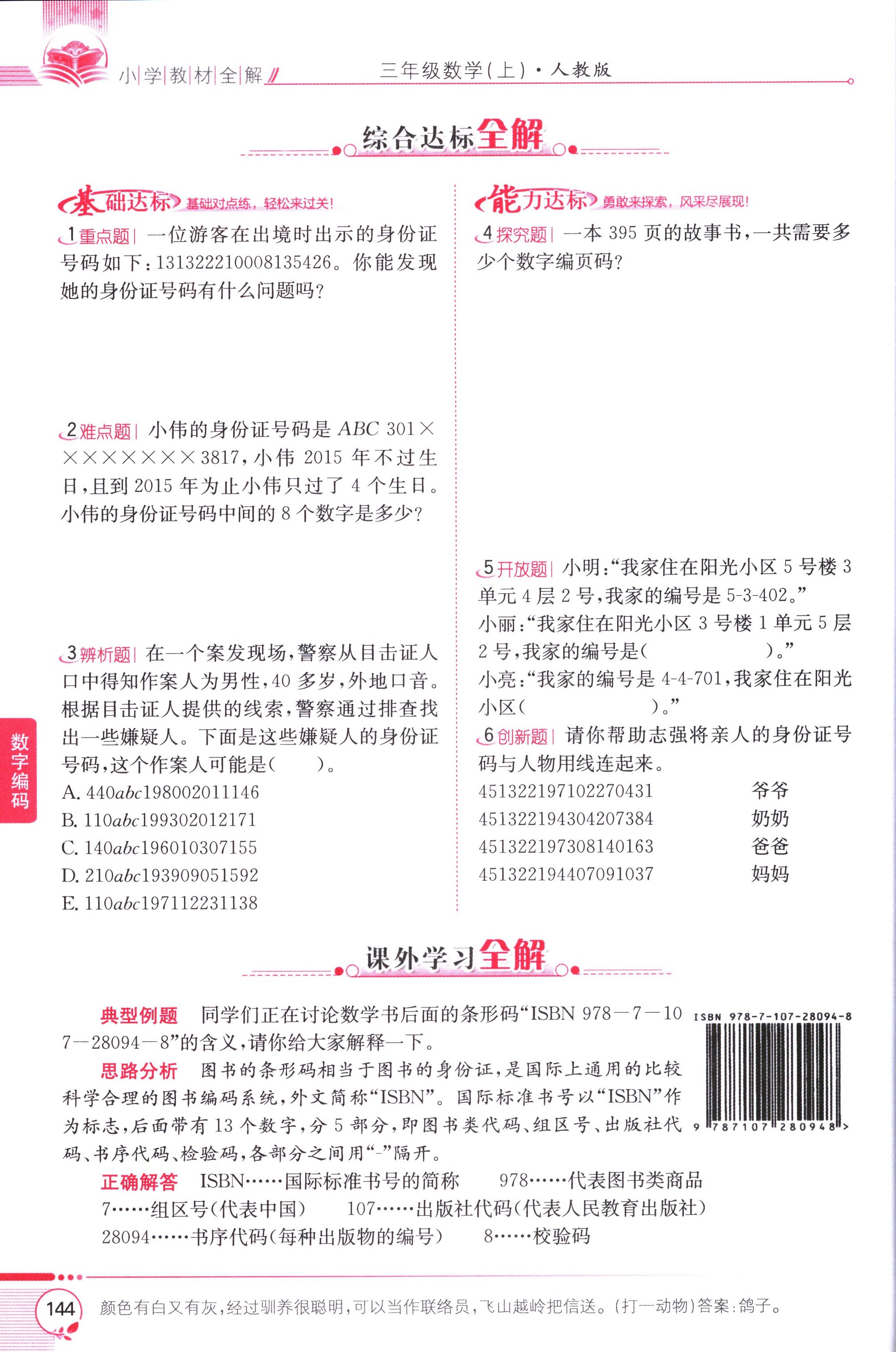 數(shù)學(xué)課本人教版三年級(jí)上 數(shù)字編碼