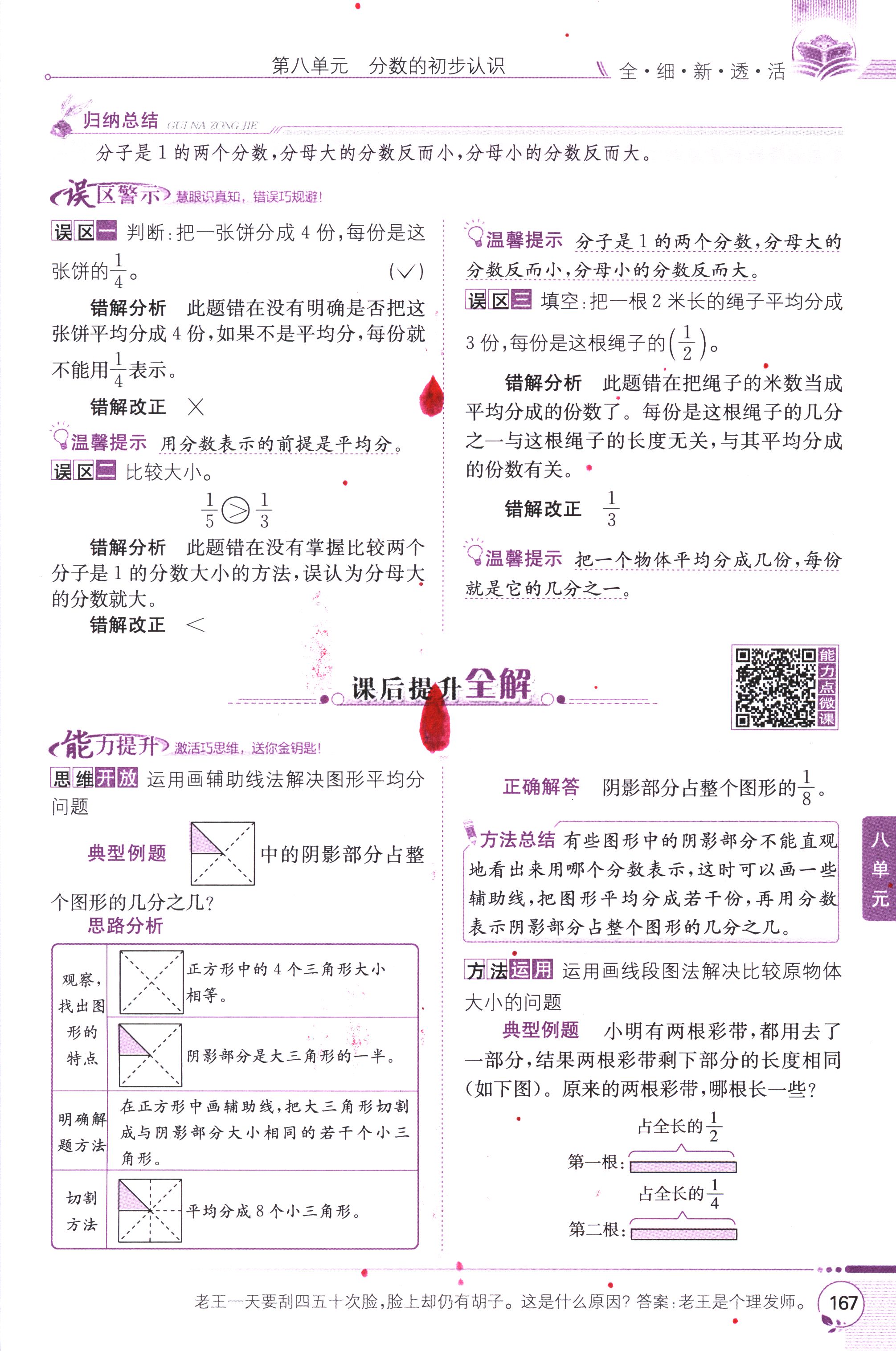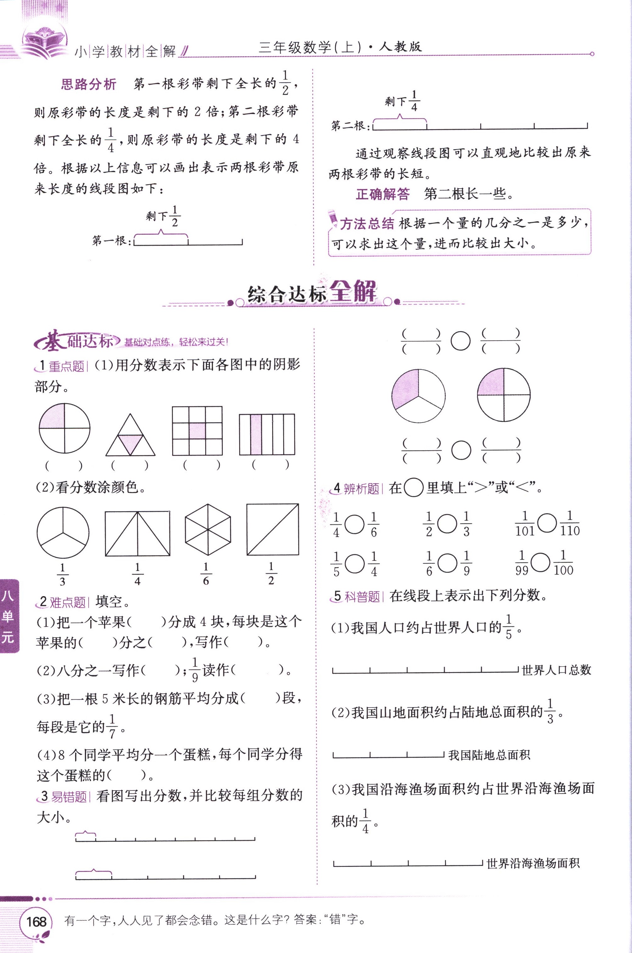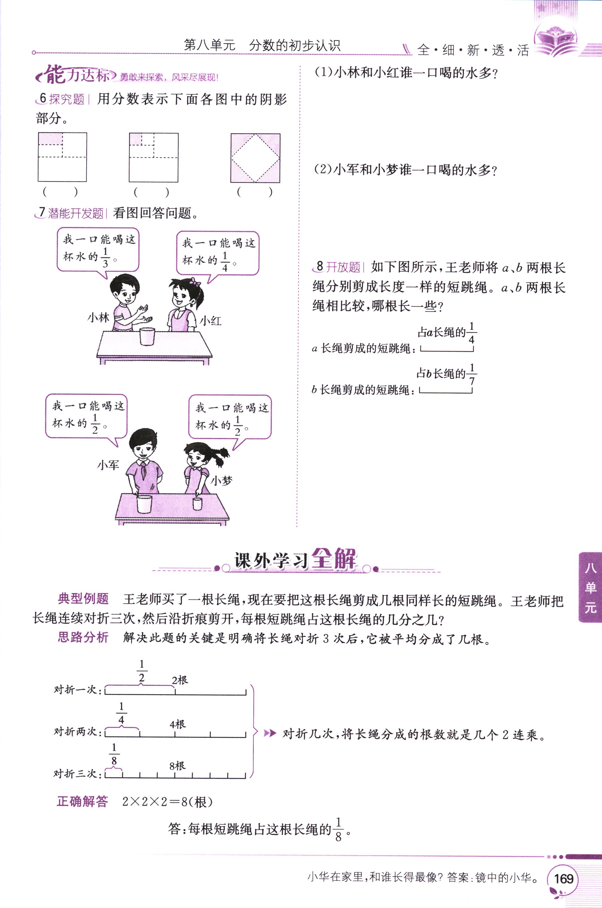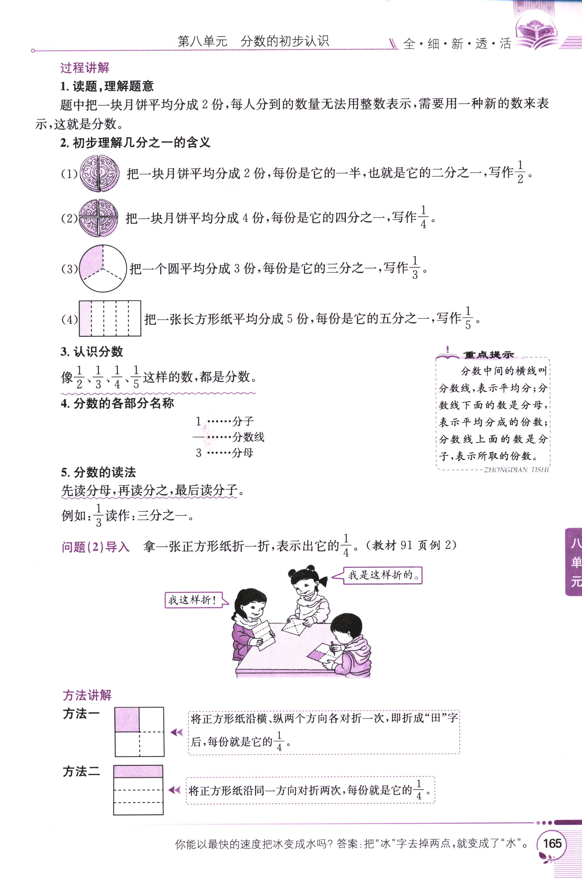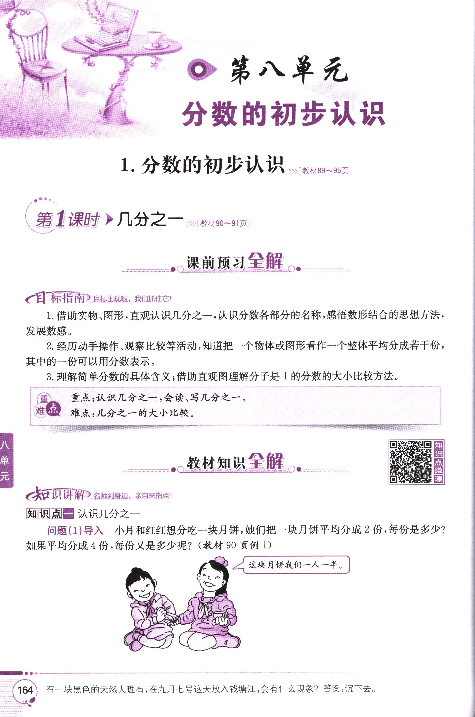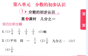 數(shù)學課本人教版三年級上 第八單元 1.分數(shù)的初步認識-第1課時 幾分之一