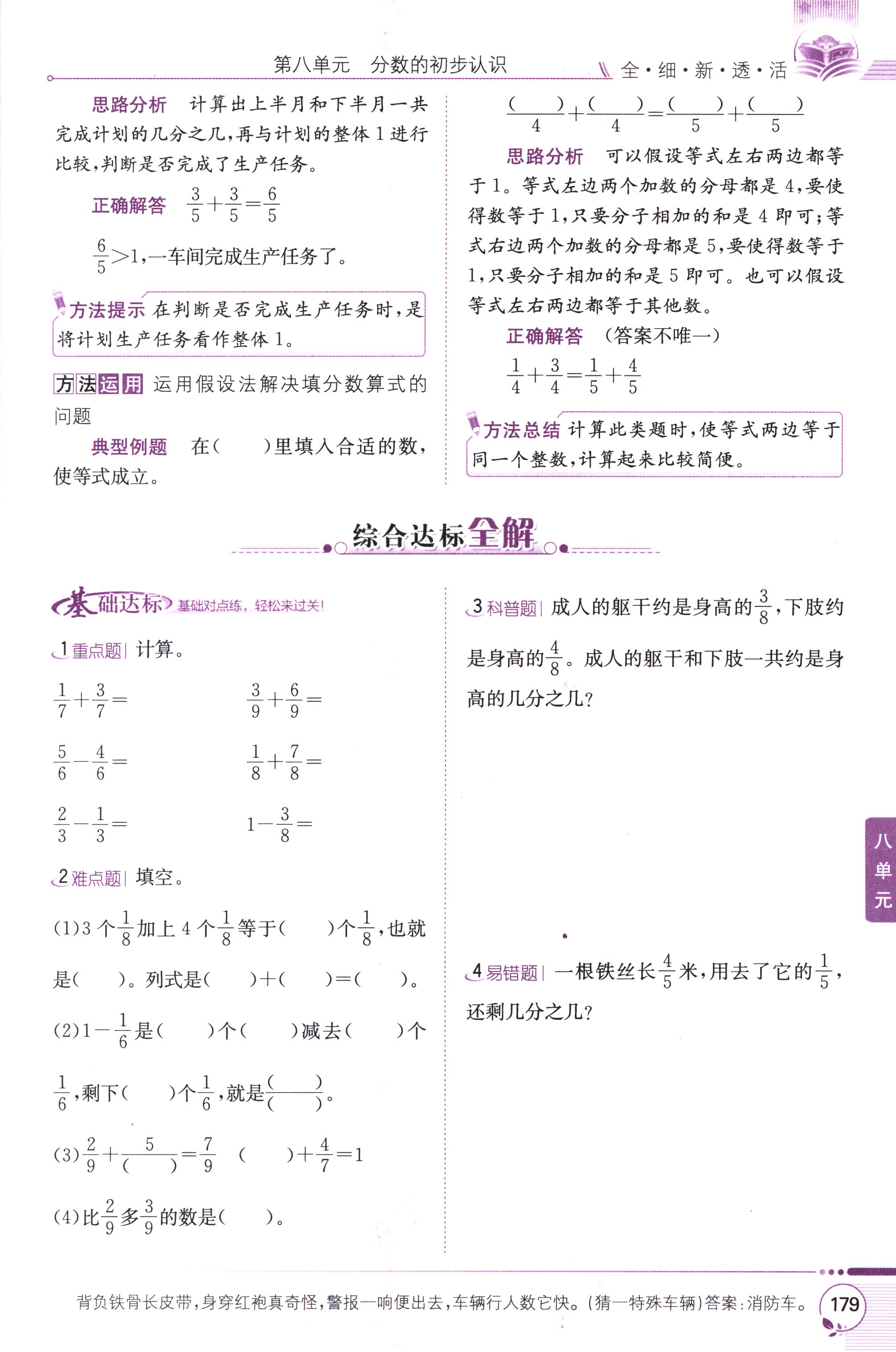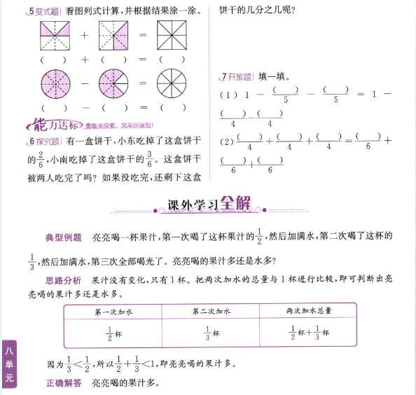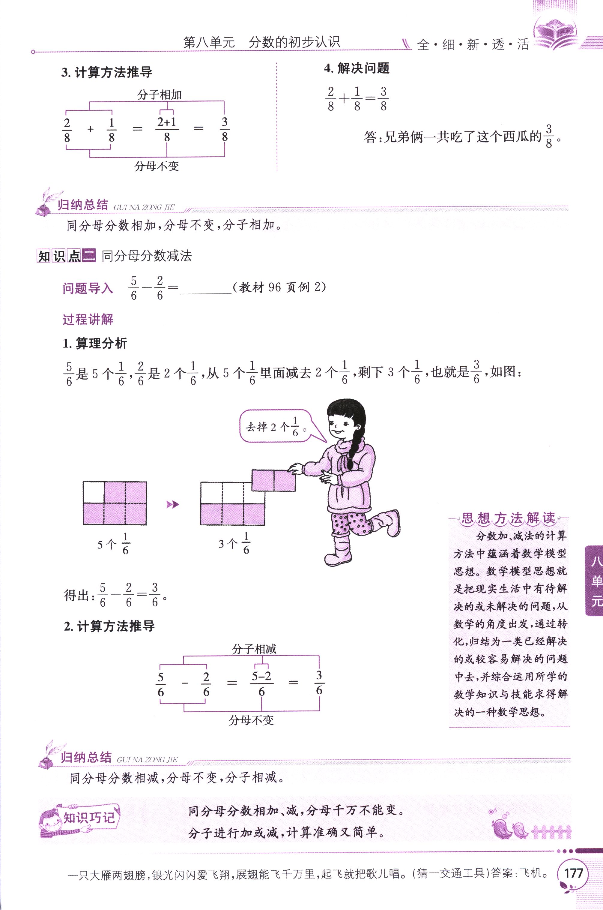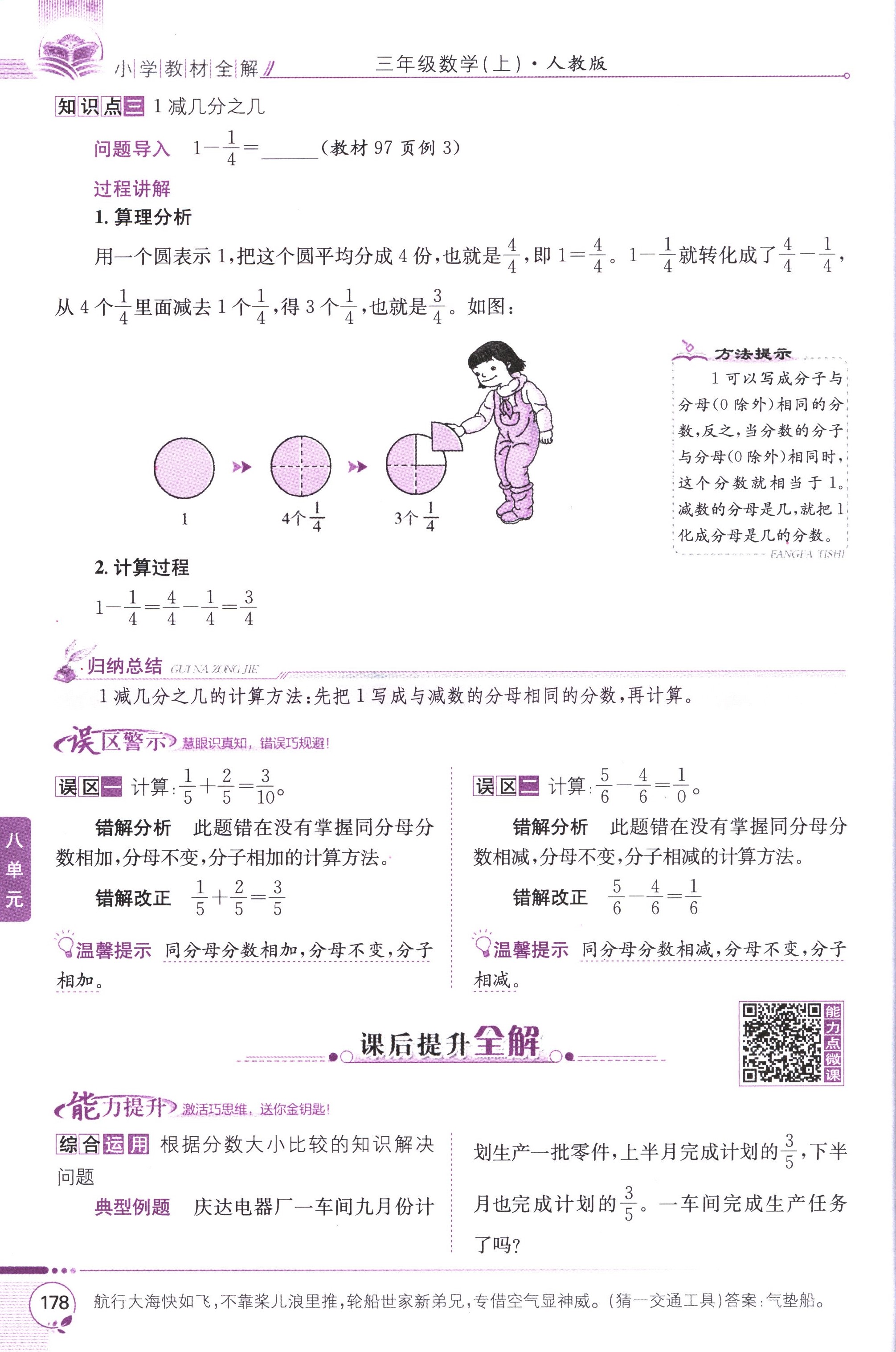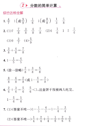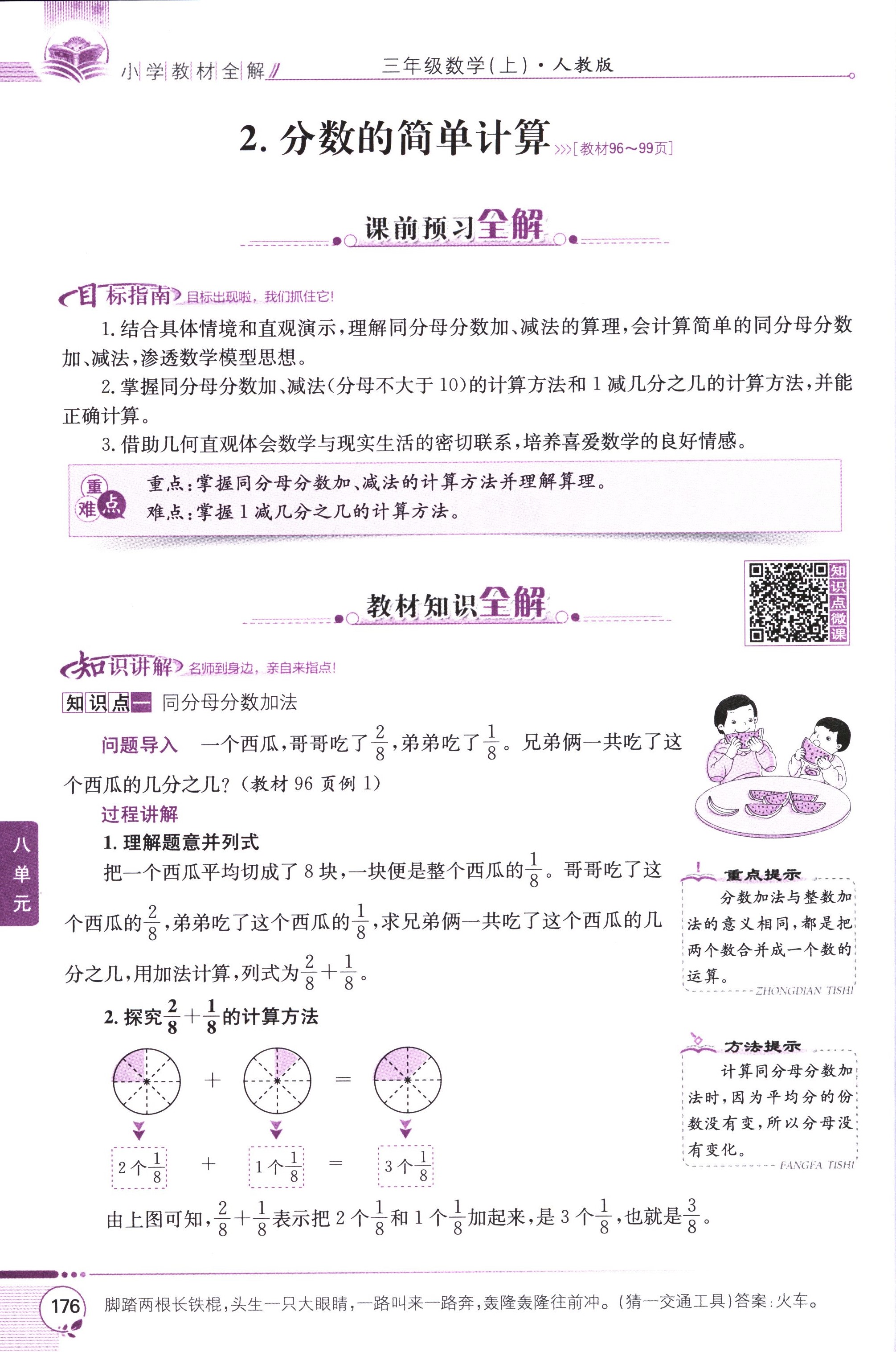 數(shù)學(xué)課本人教版三年級(jí)上 2.分?jǐn)?shù)的簡單計(jì)算