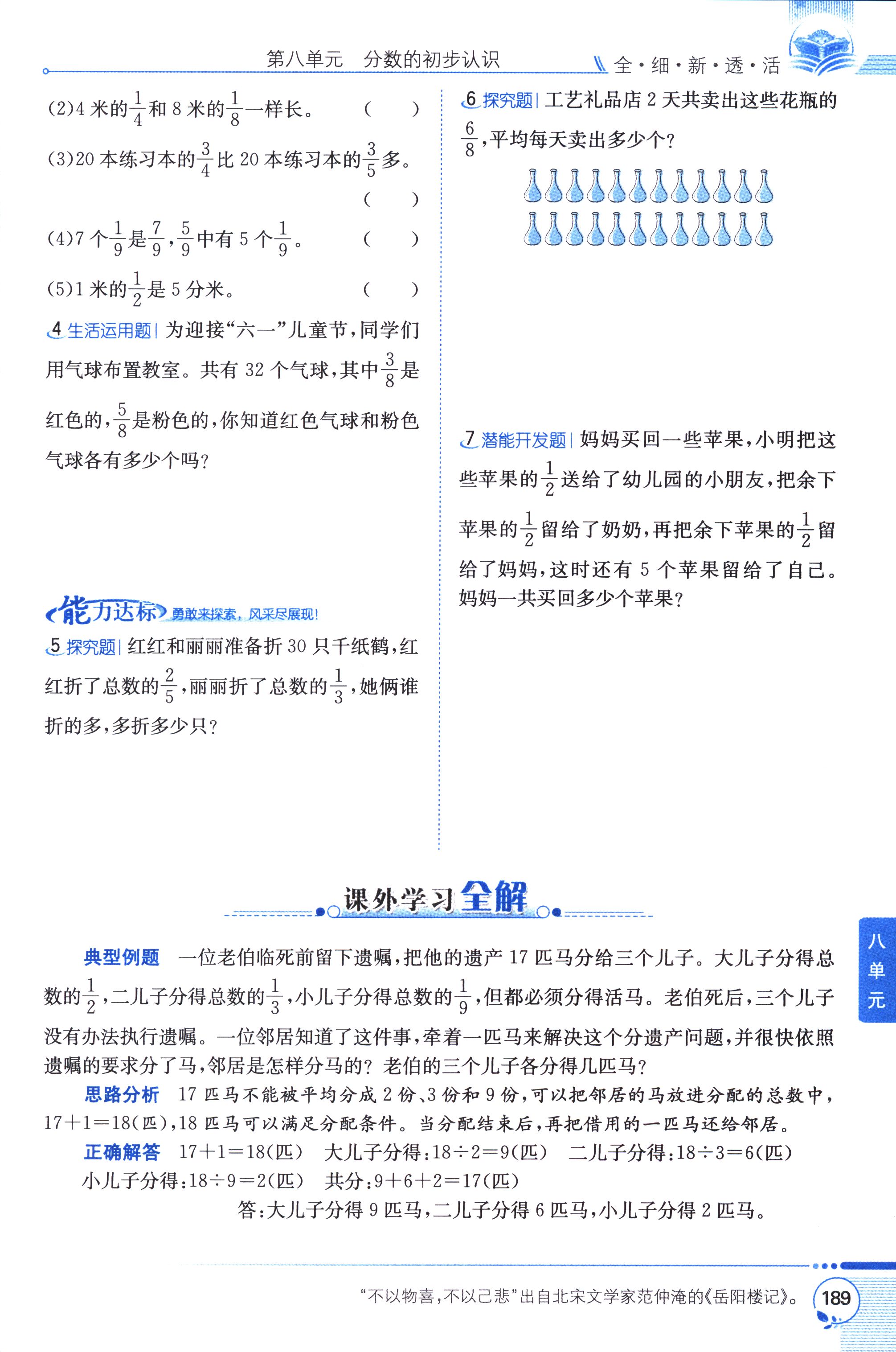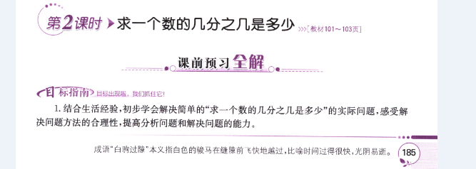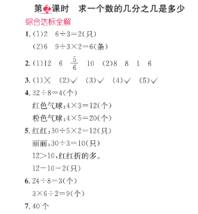 數學課本人教版三年級上 第2課時 求一個數的幾分之幾是多少