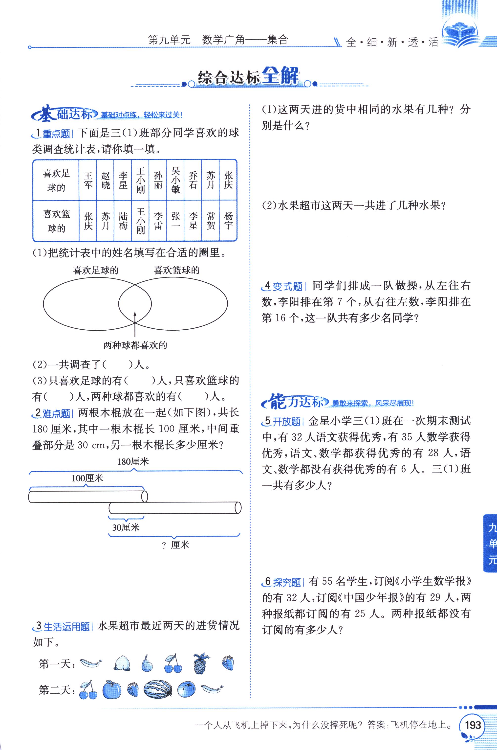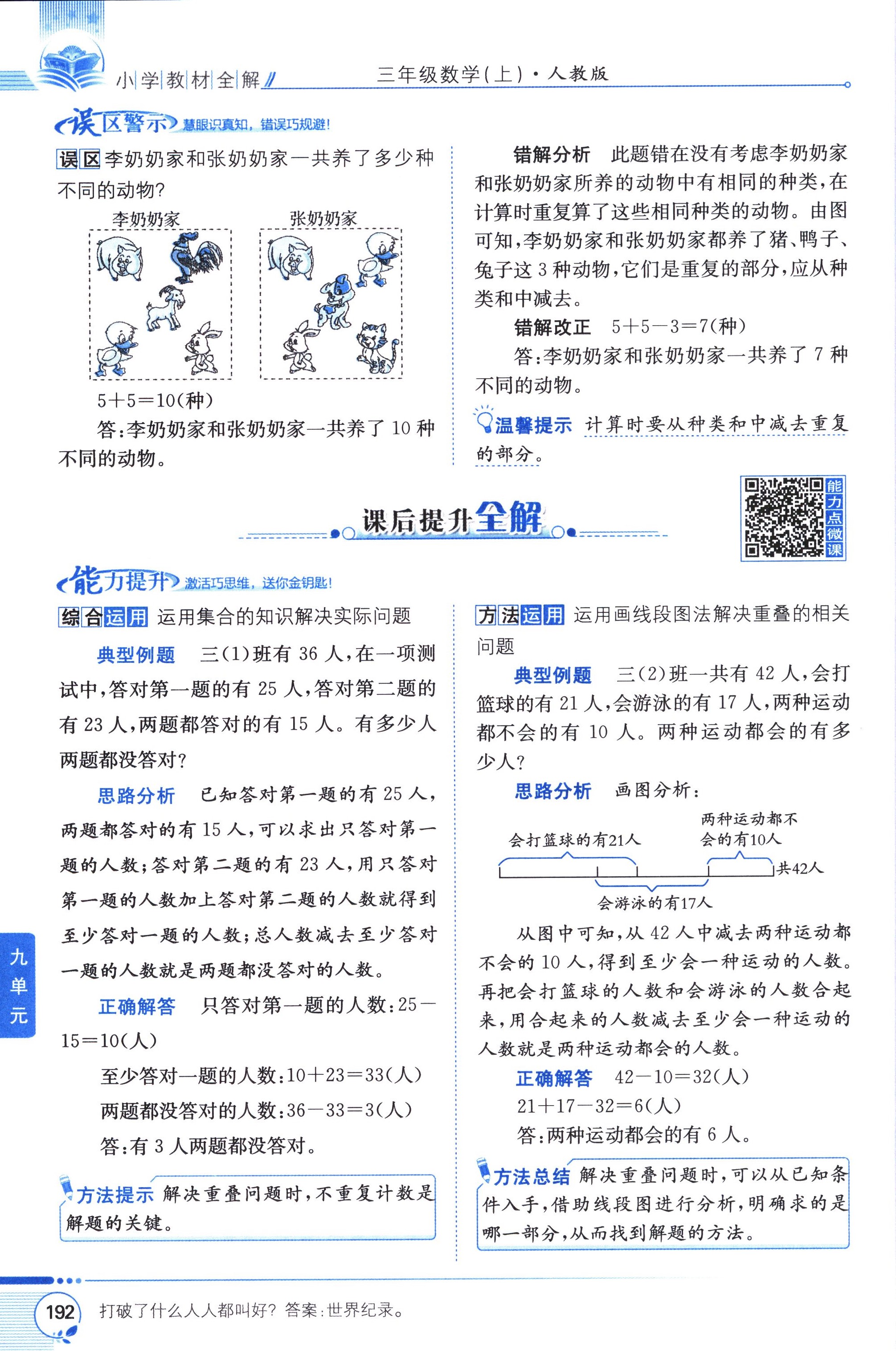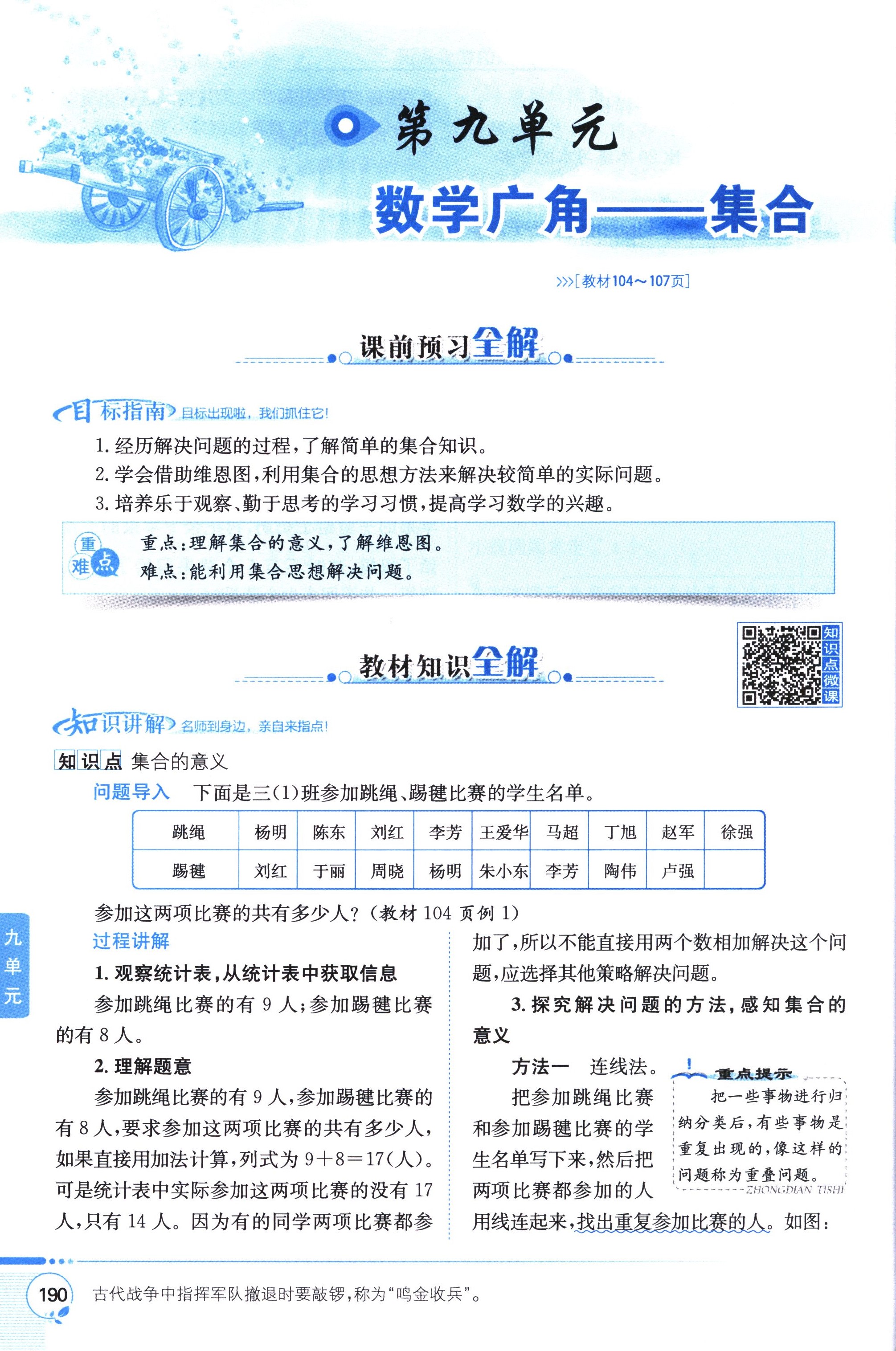 數(shù)學(xué)課本人教版三年級上 第九單元 數(shù)學(xué)廣角--集合
