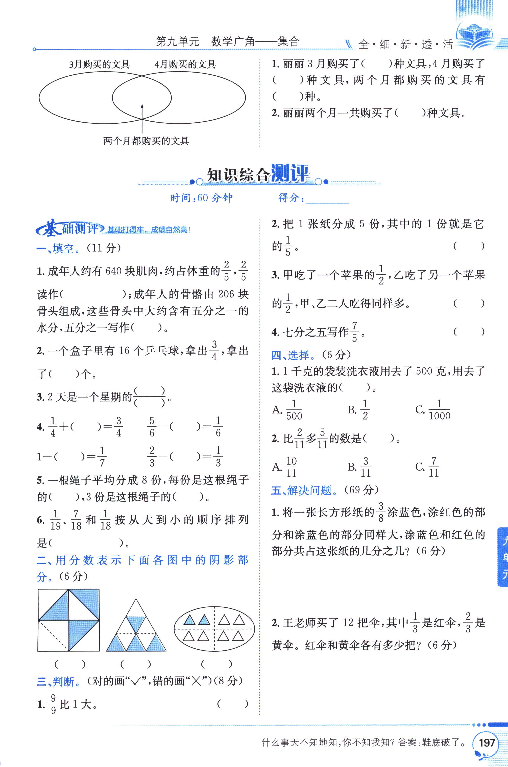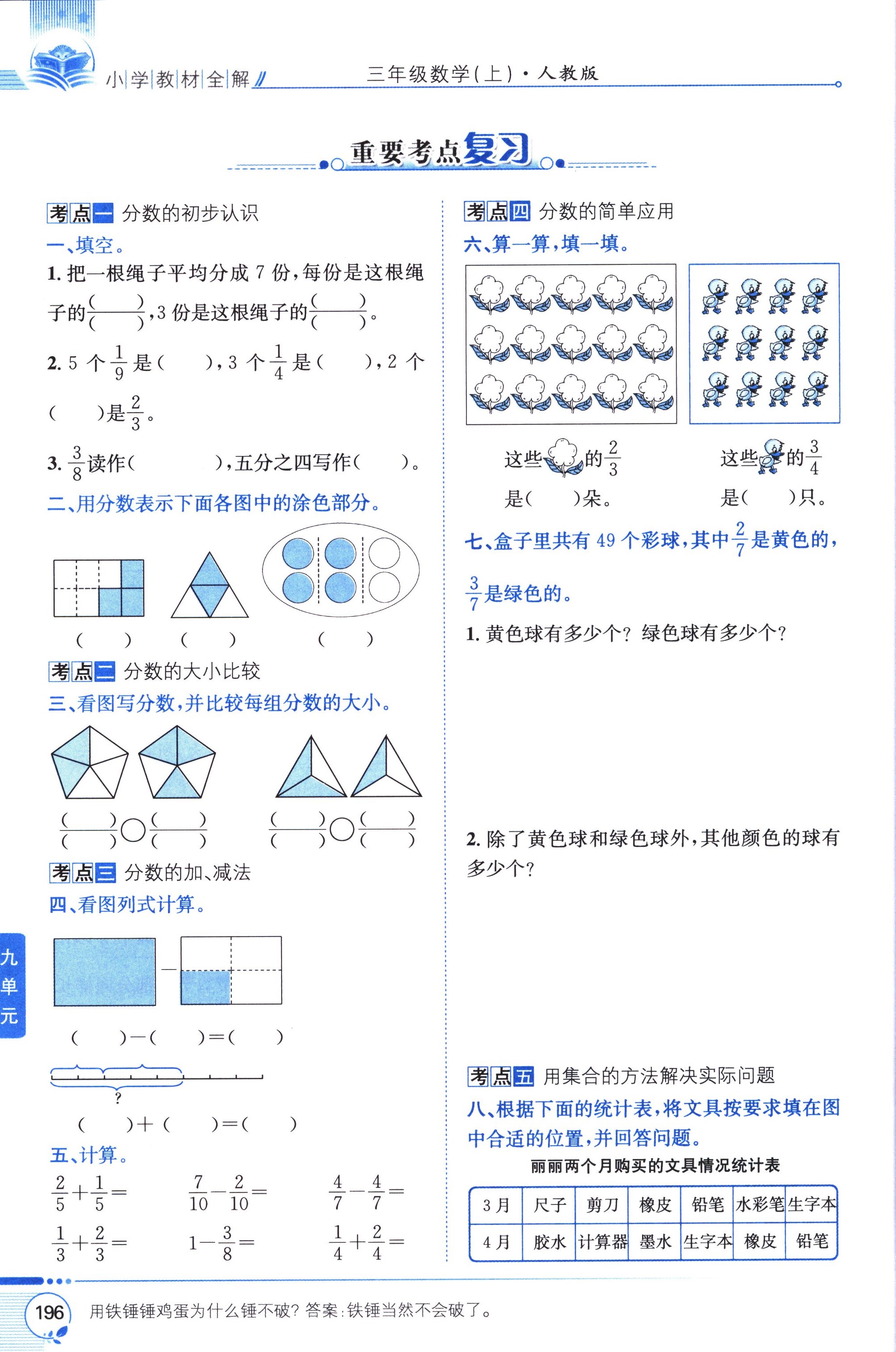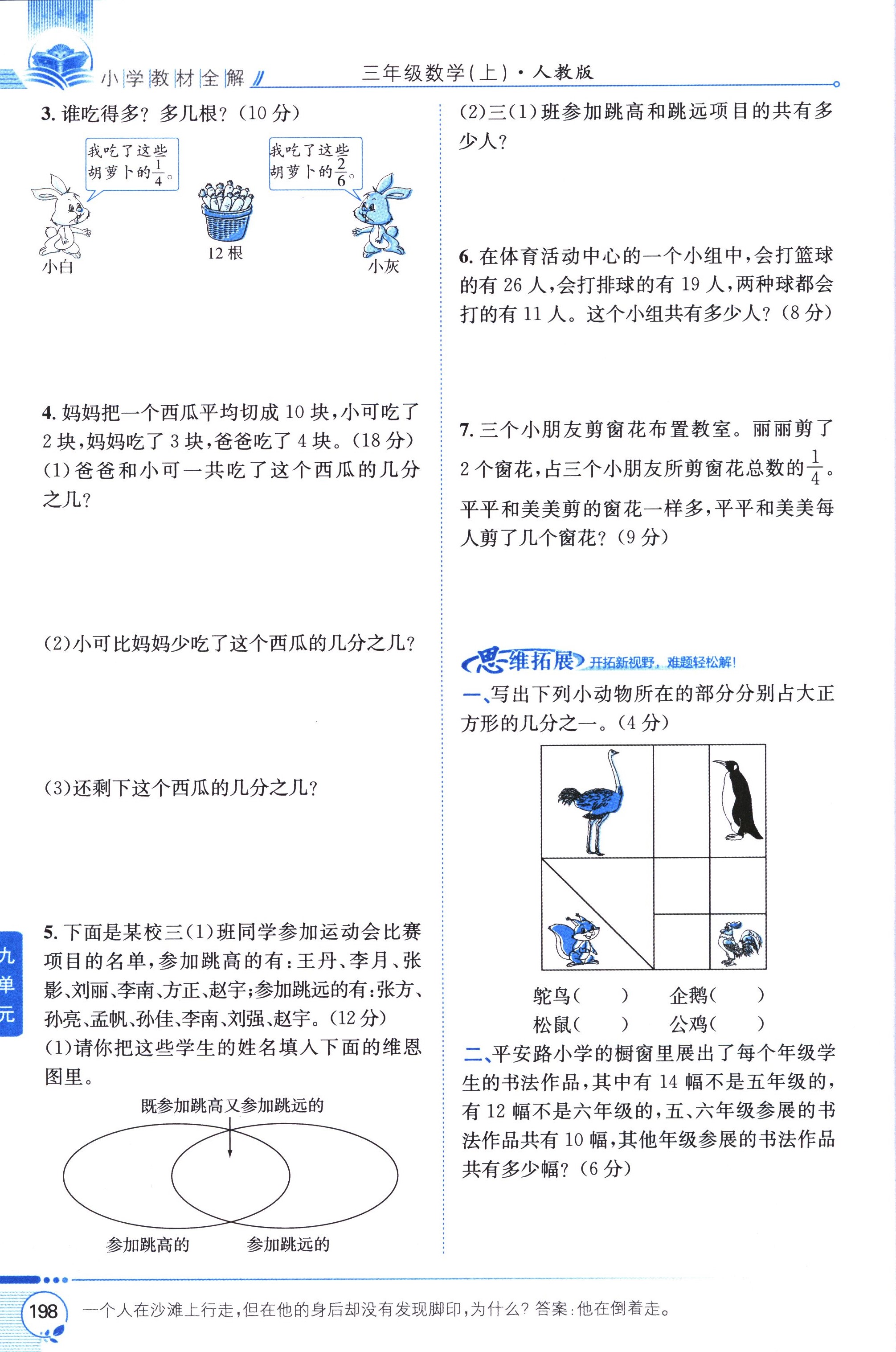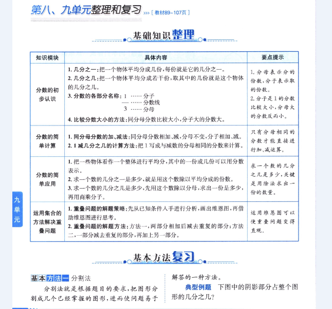 數(shù)學(xué)課本人教版三年級(jí)上 第八、九單元整理和復(fù)習(xí)