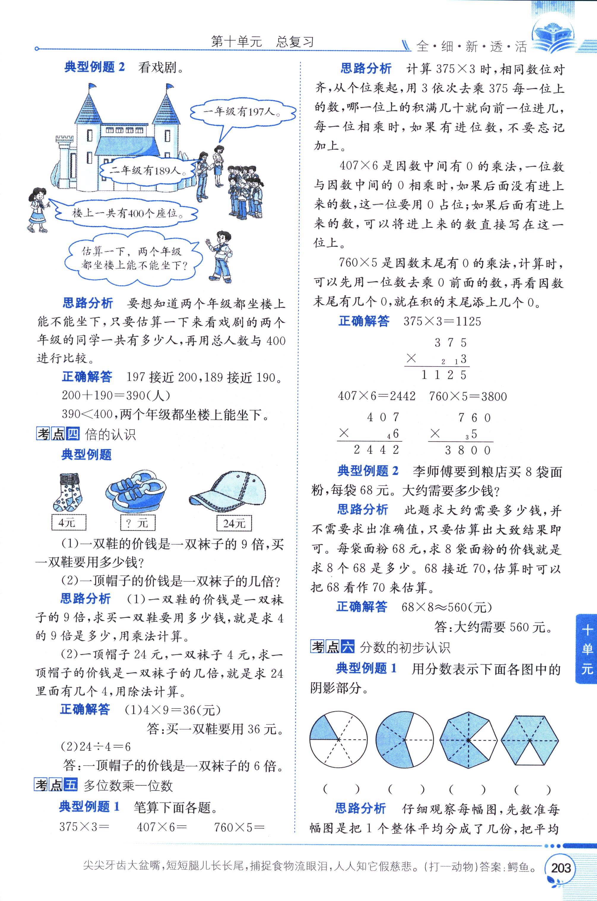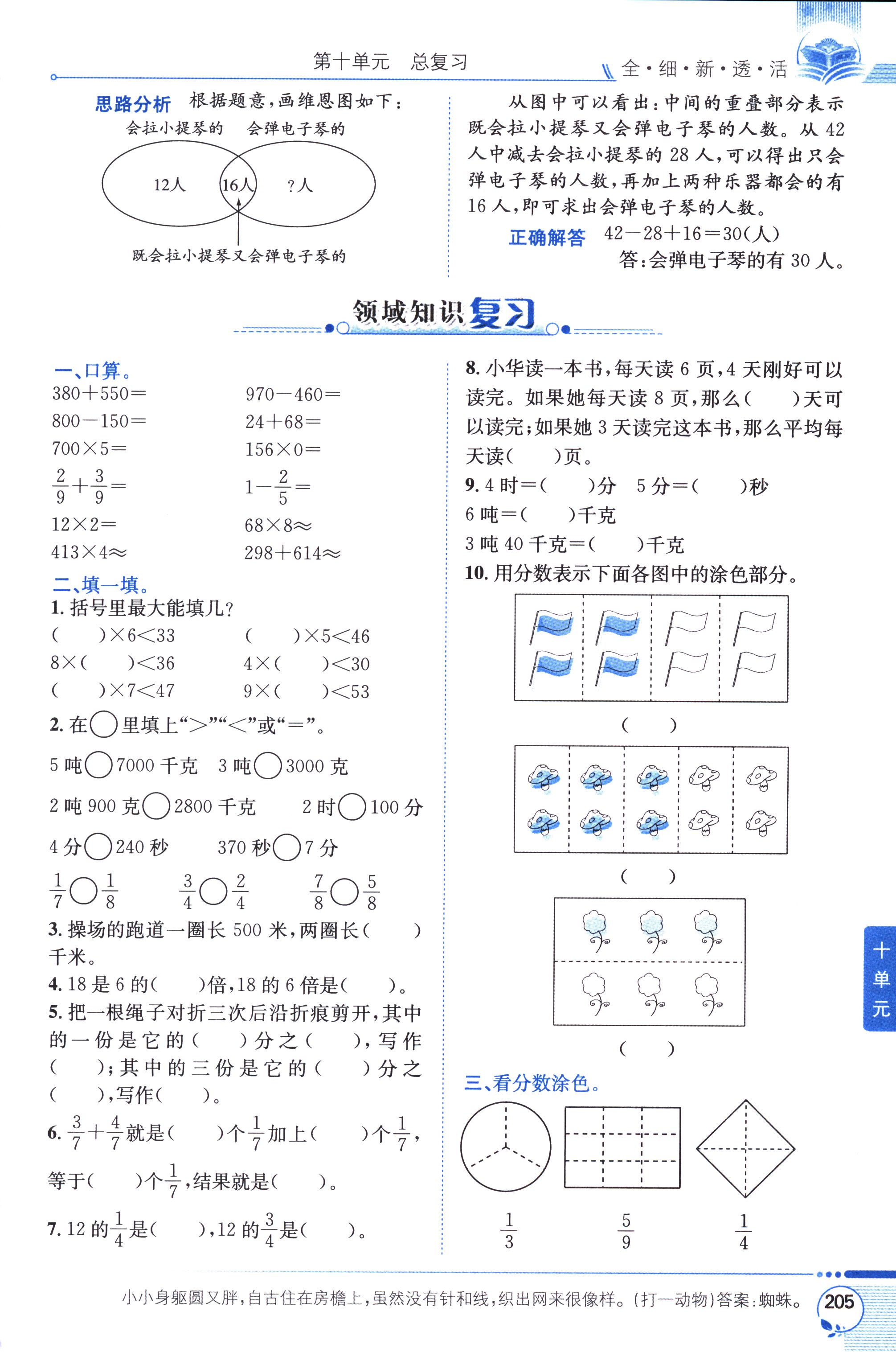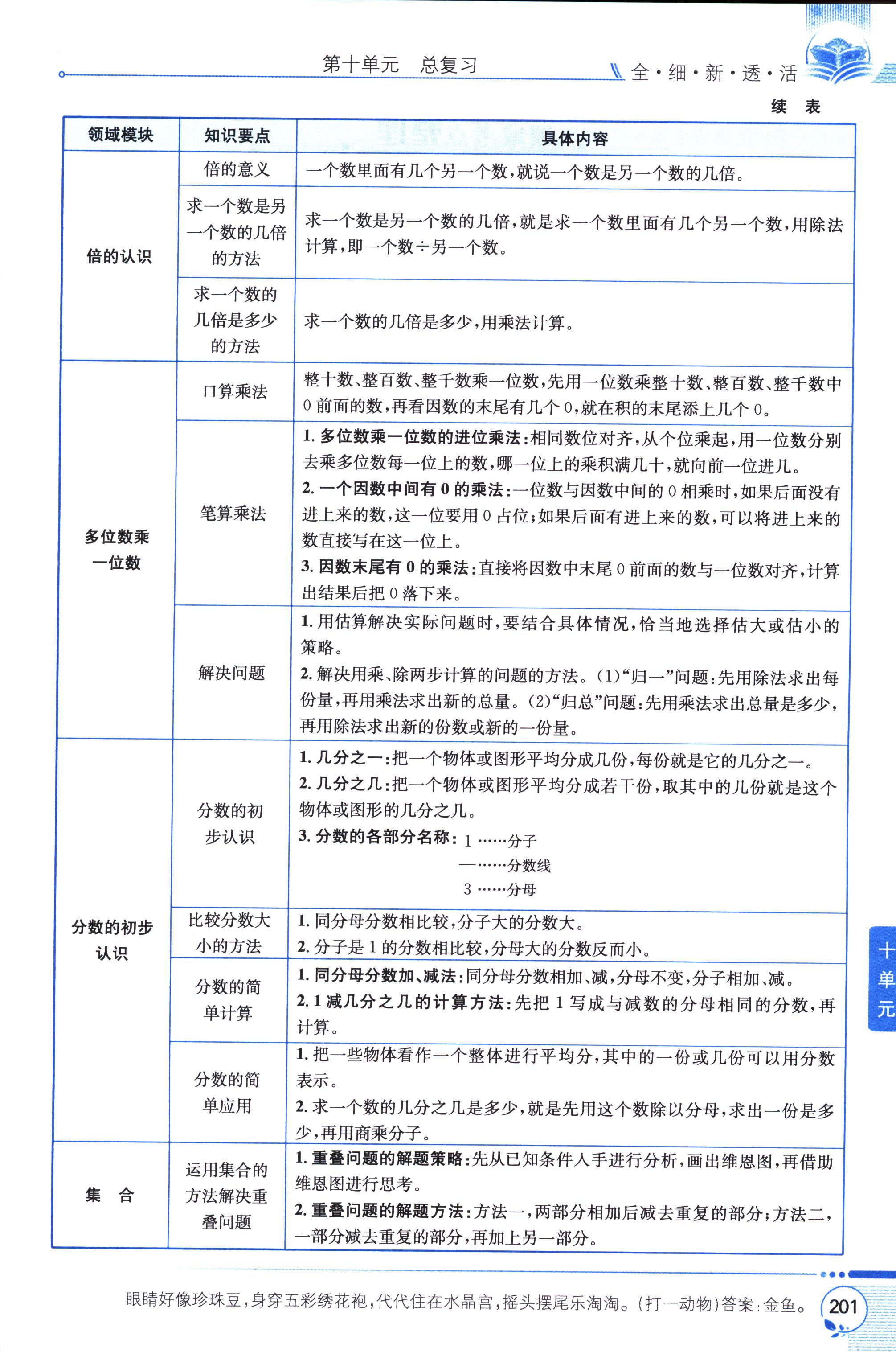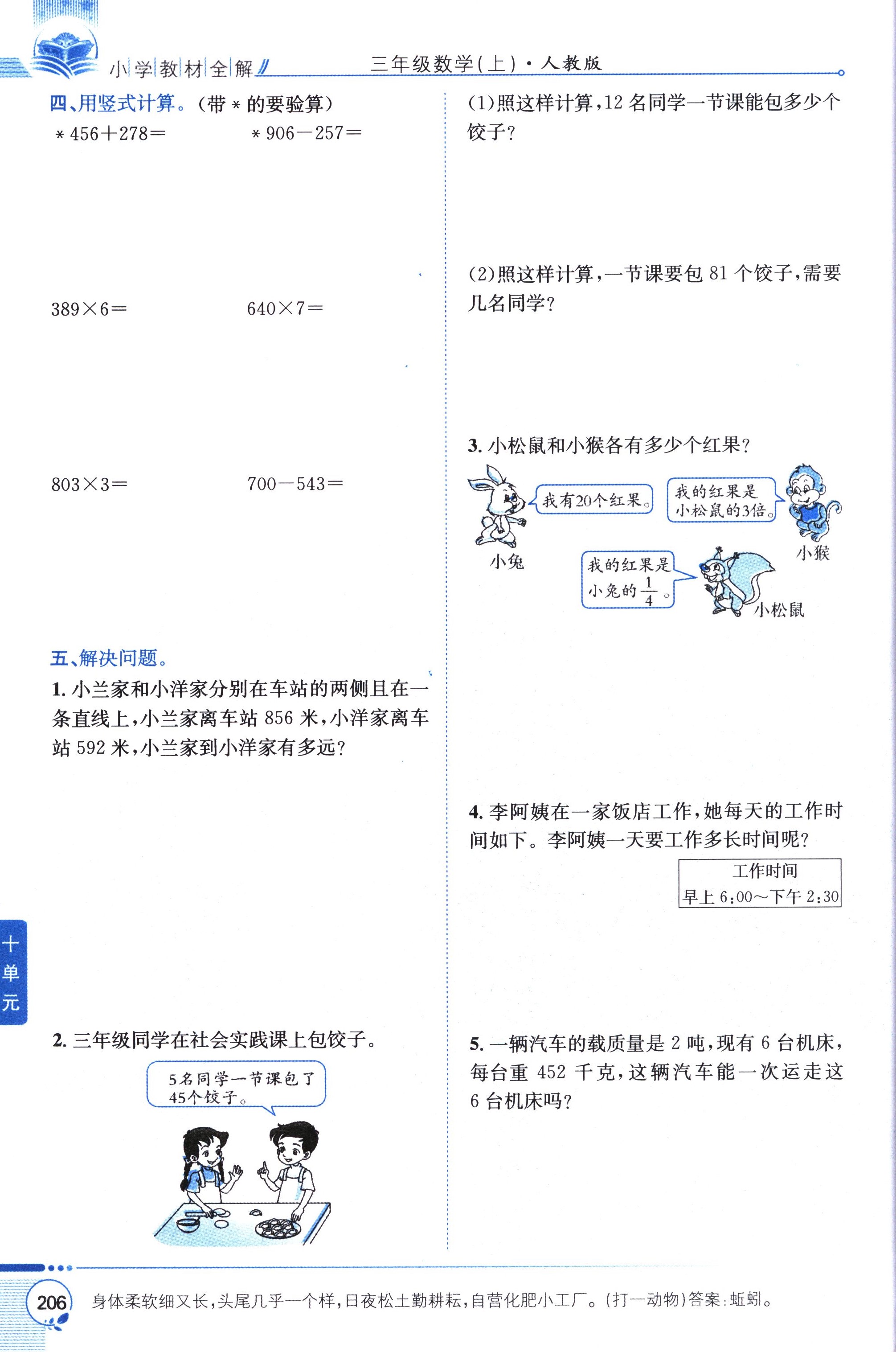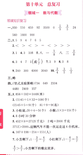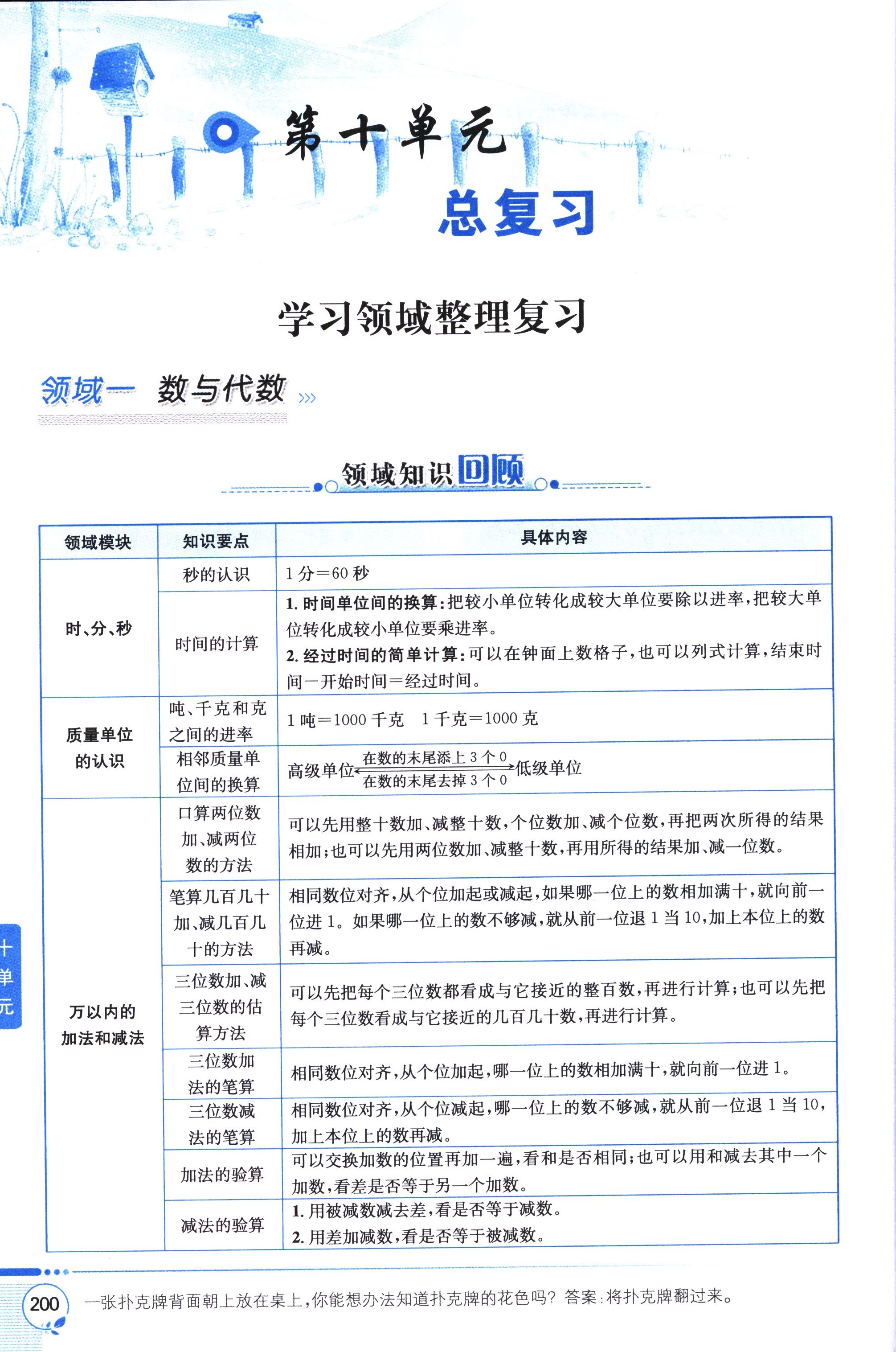 數(shù)學(xué)課本人教版三年級(jí)上 第十單元 領(lǐng)域一 數(shù)與代數(shù)