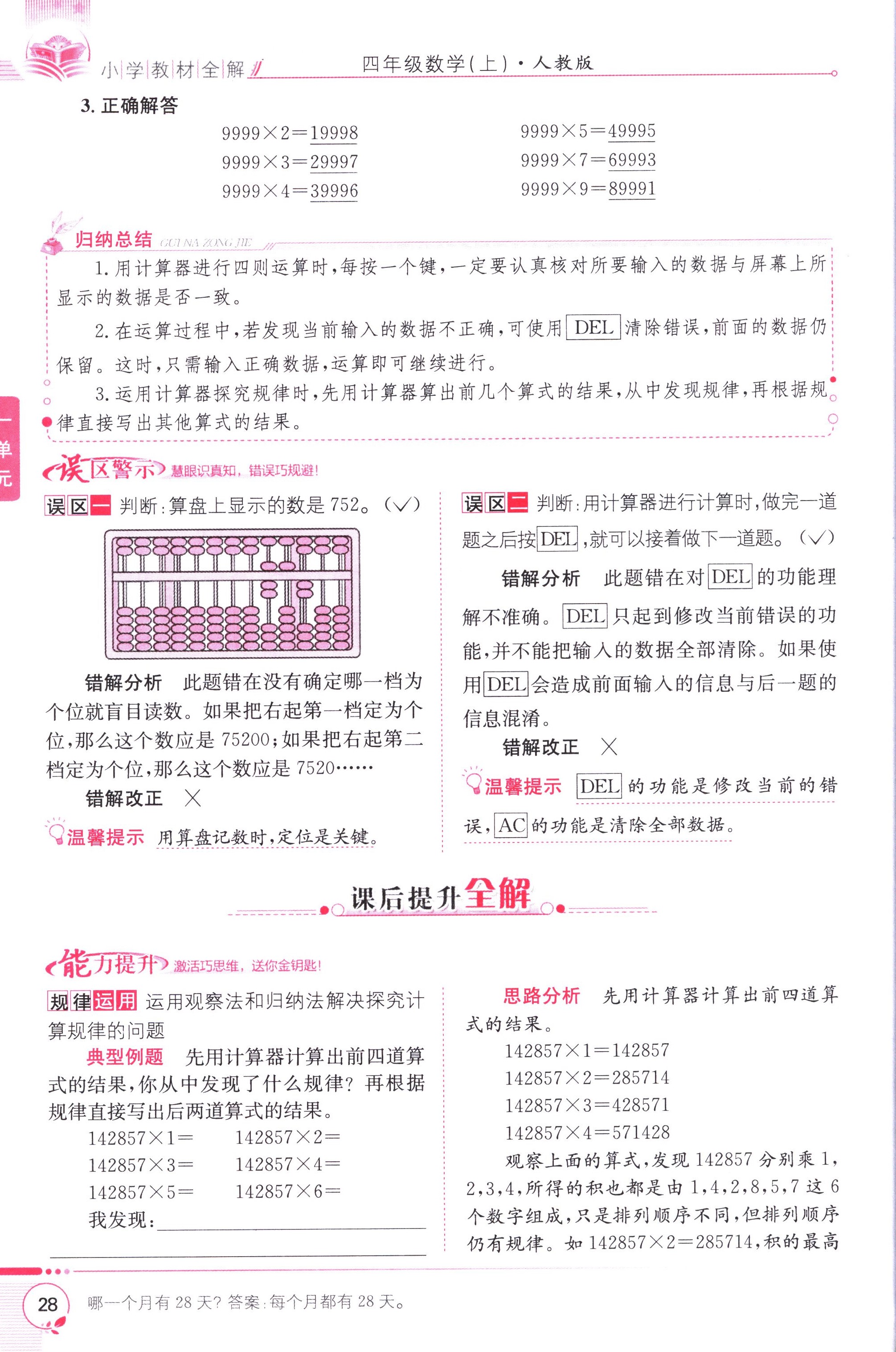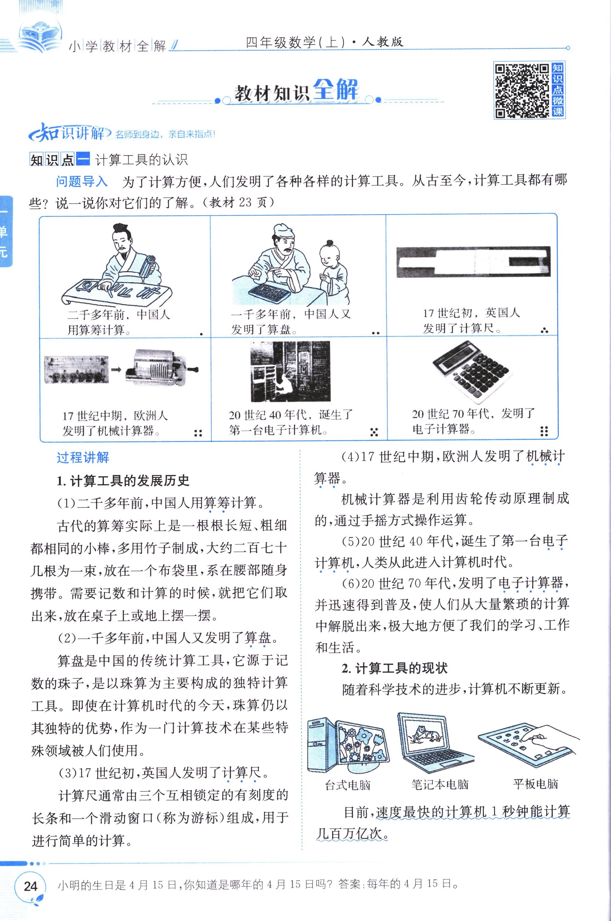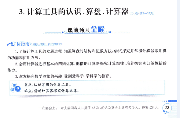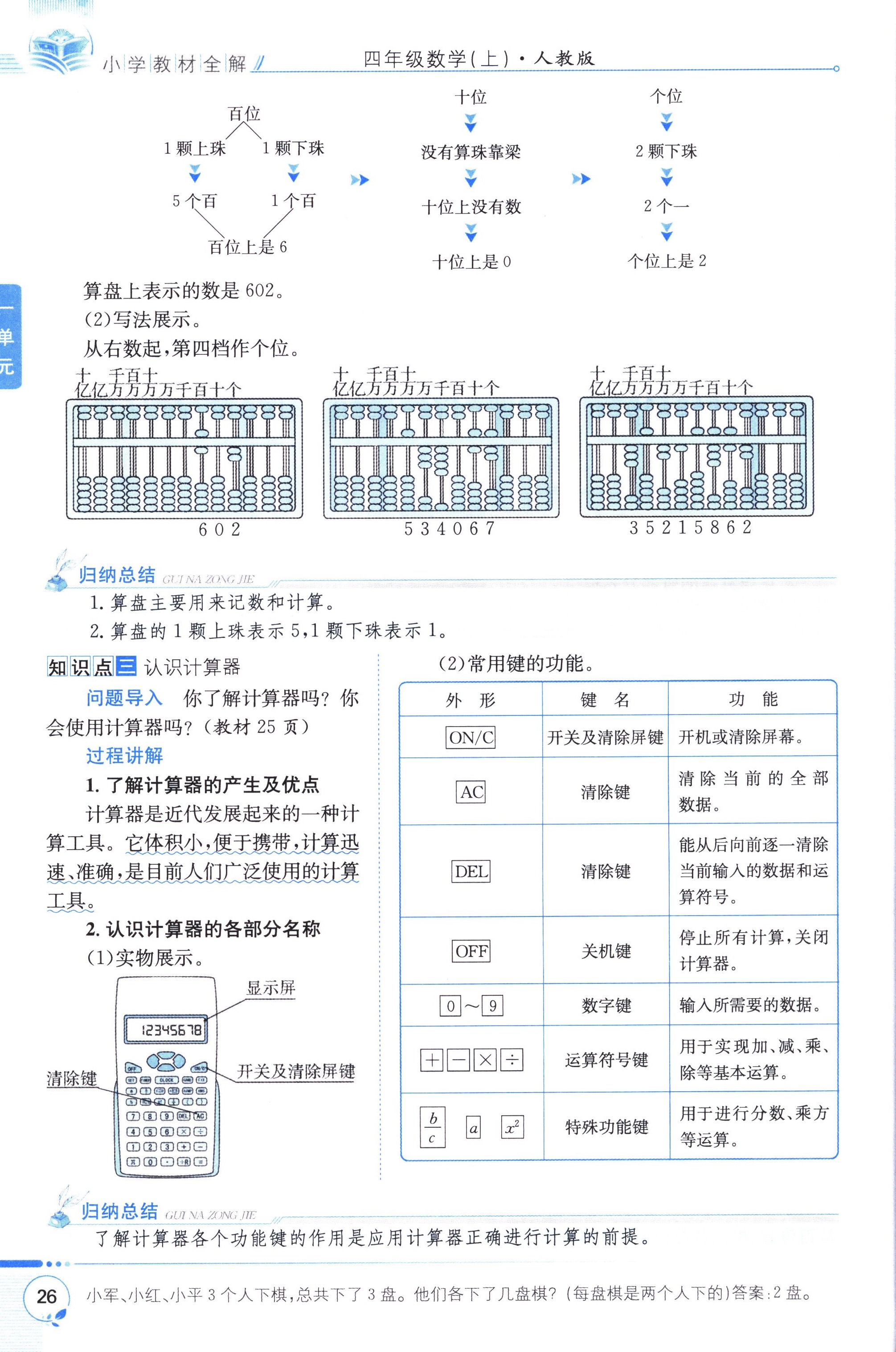 數(shù)學(xué)課本人教版四年級上 3.計(jì)算工具的認(rèn)識、算盤、計(jì)算器