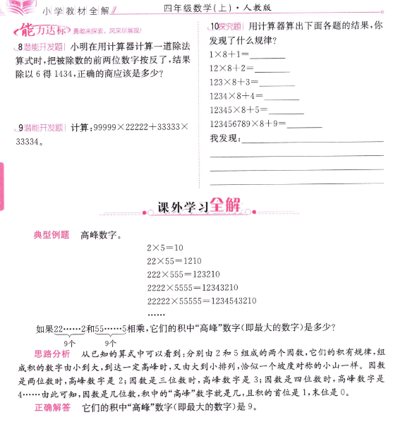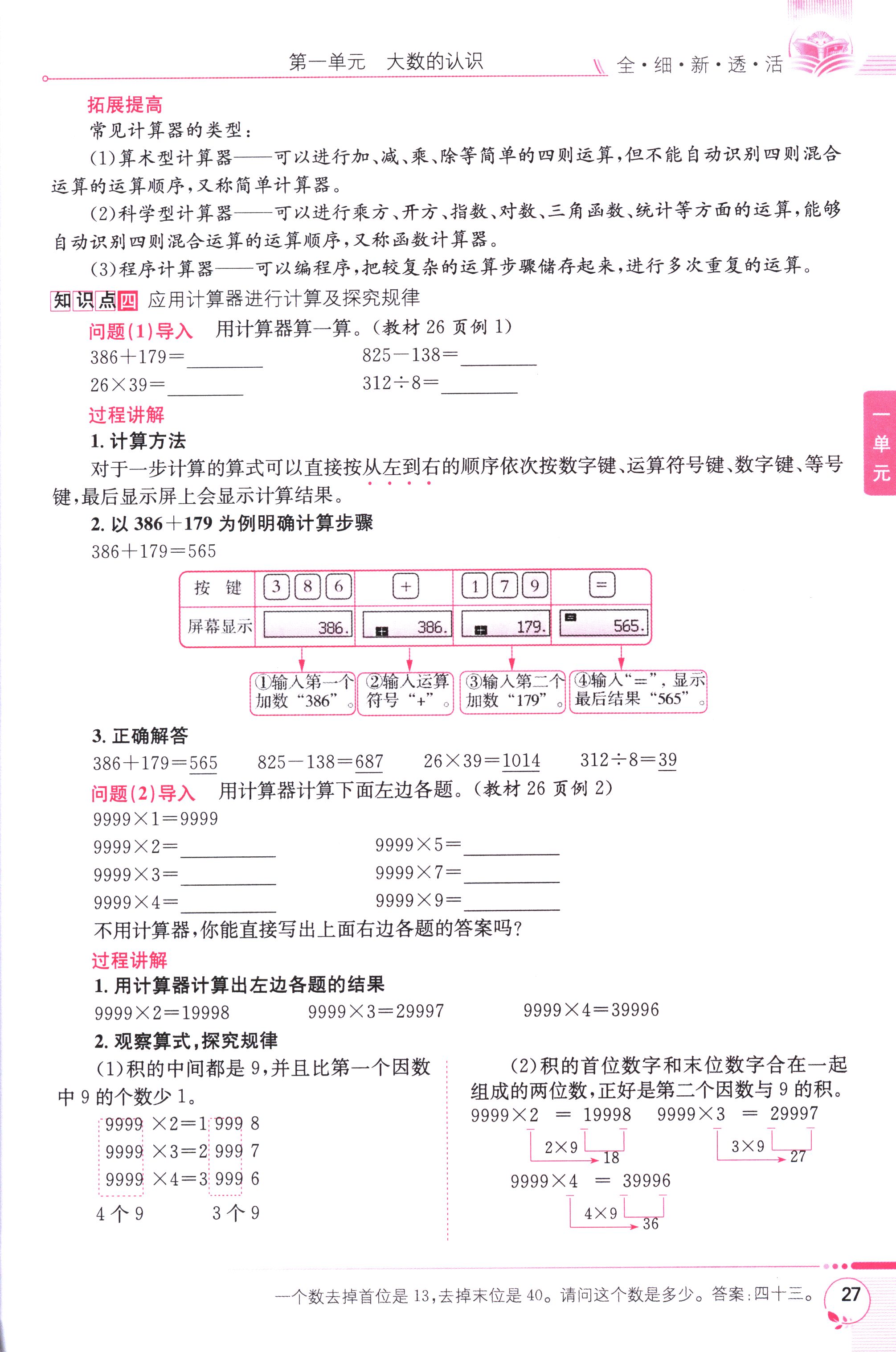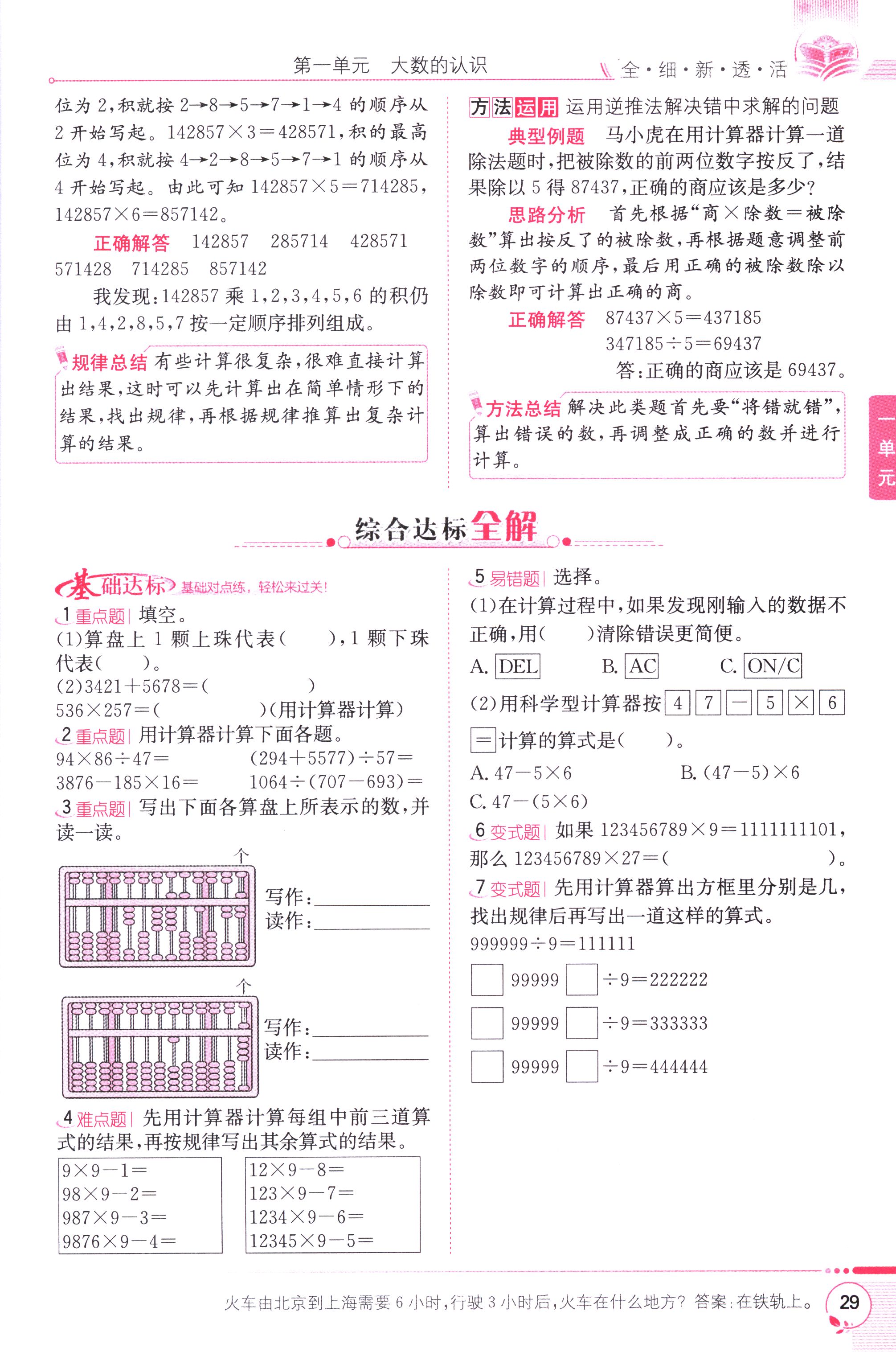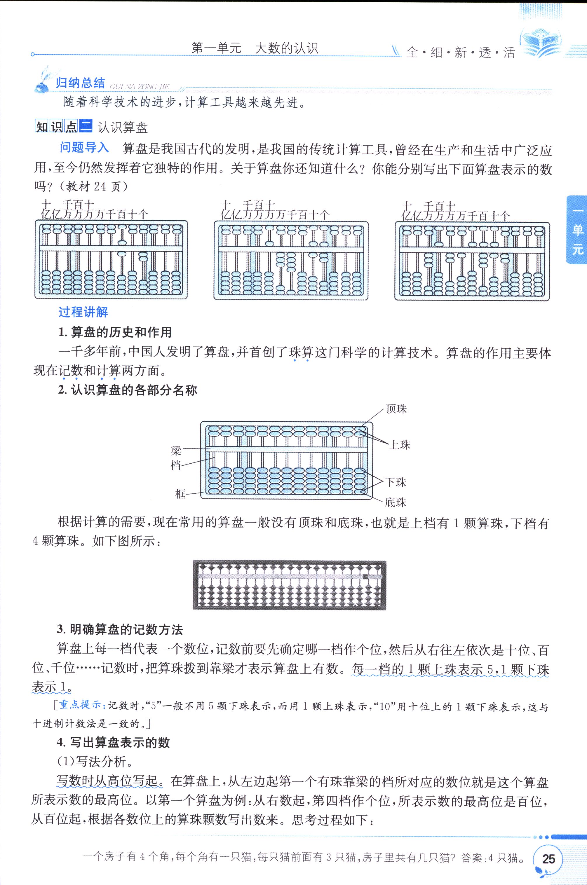 數(shù)學(xué)課本人教版四年級上 3.計(jì)算工具的認(rèn)識、算盤、計(jì)算器