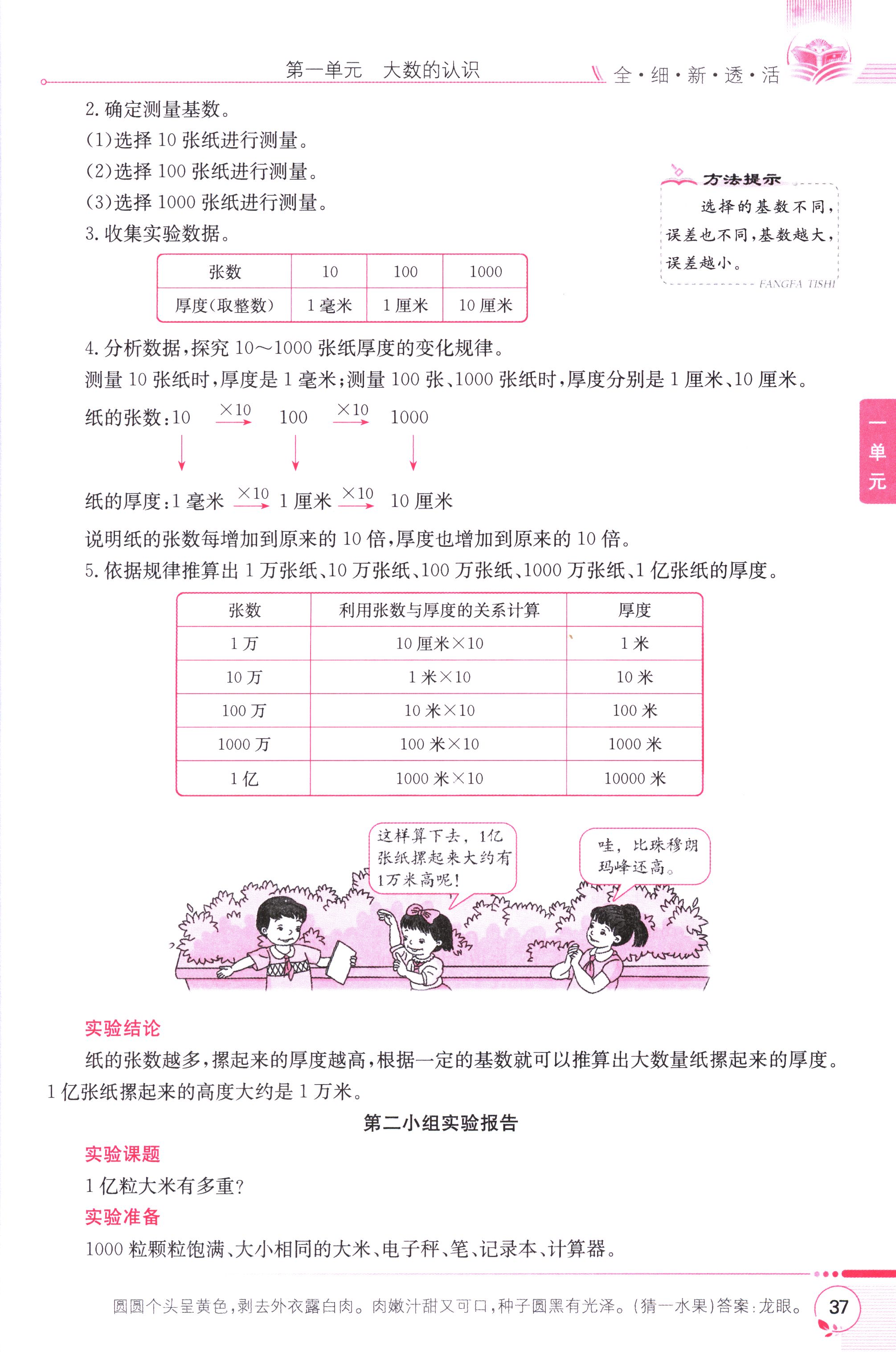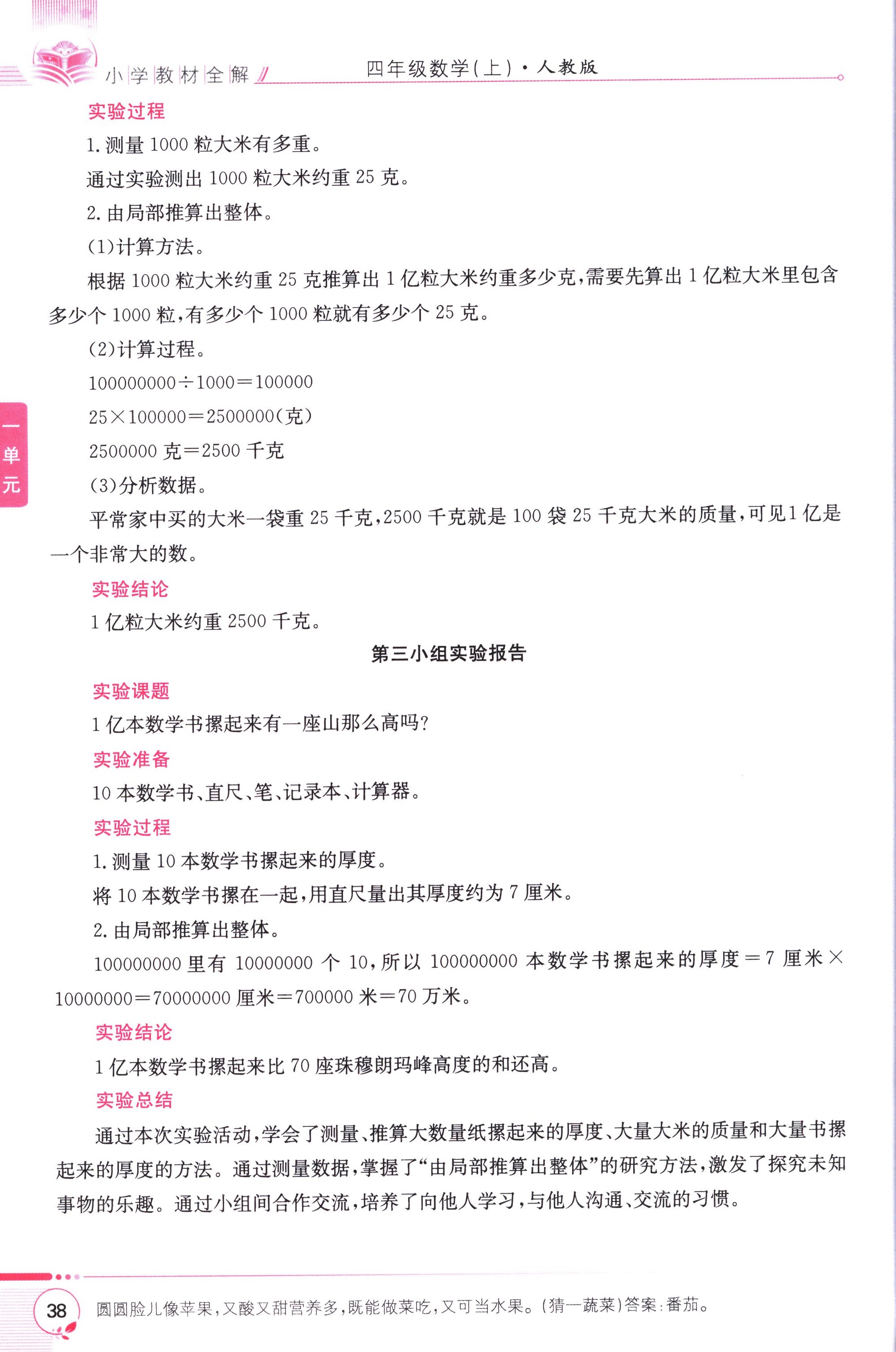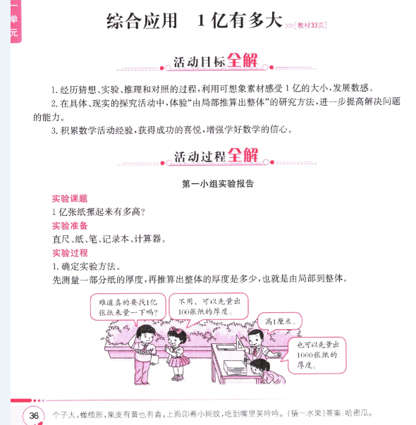 數(shù)學課本人教版四年級上 綜合應用 1億有多大