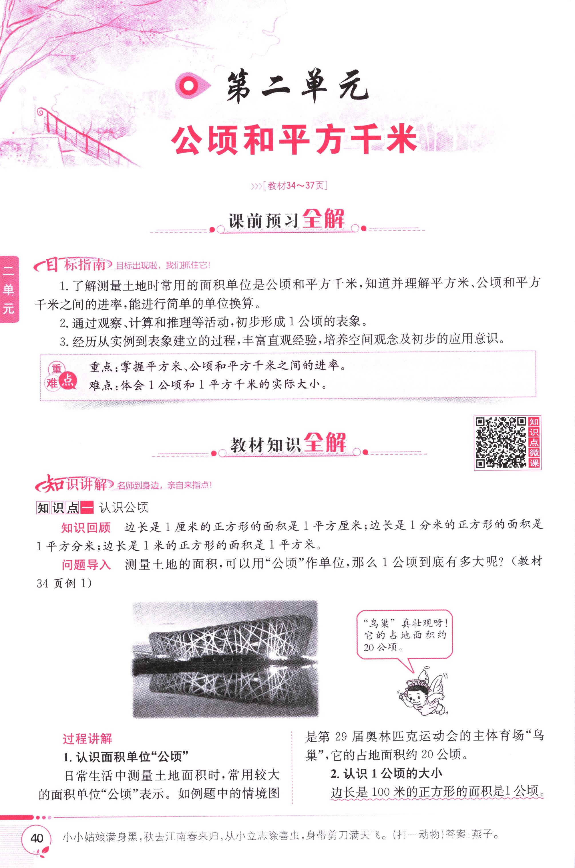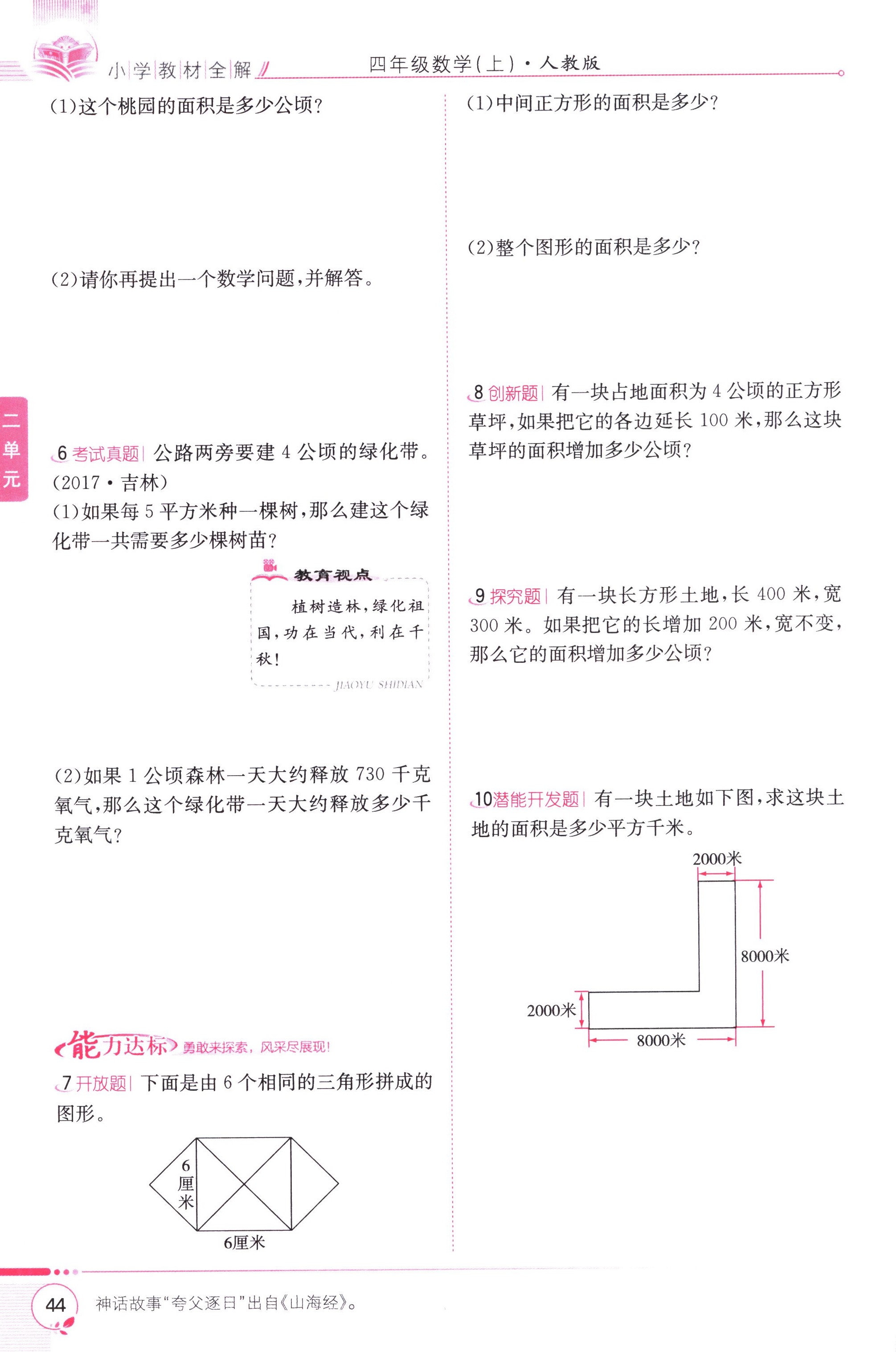 數(shù)學(xué)課本人教版四年級(jí)上 第二單元 公頃和平方千米