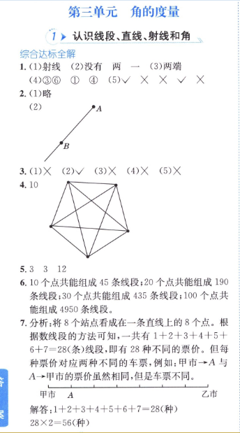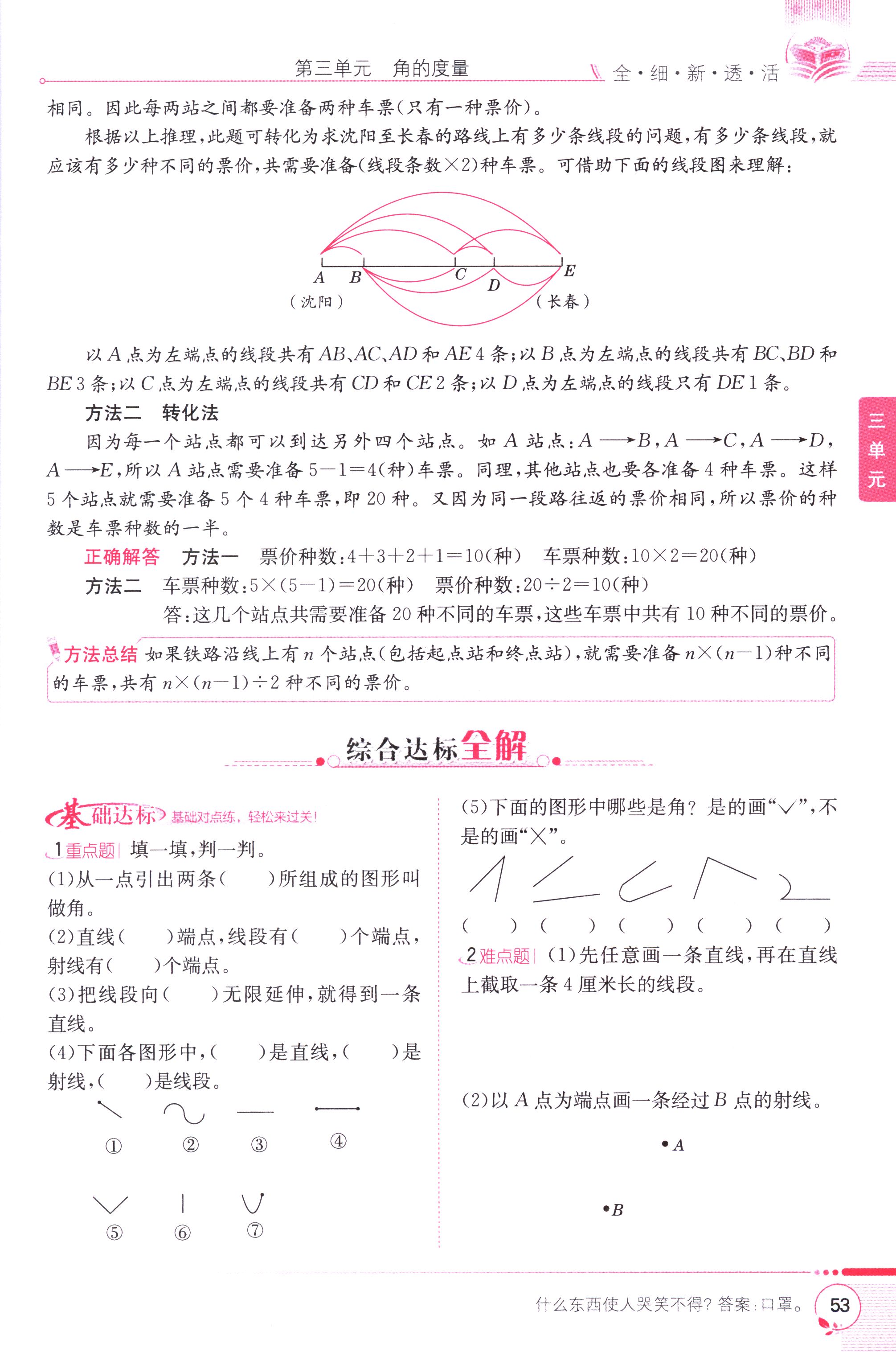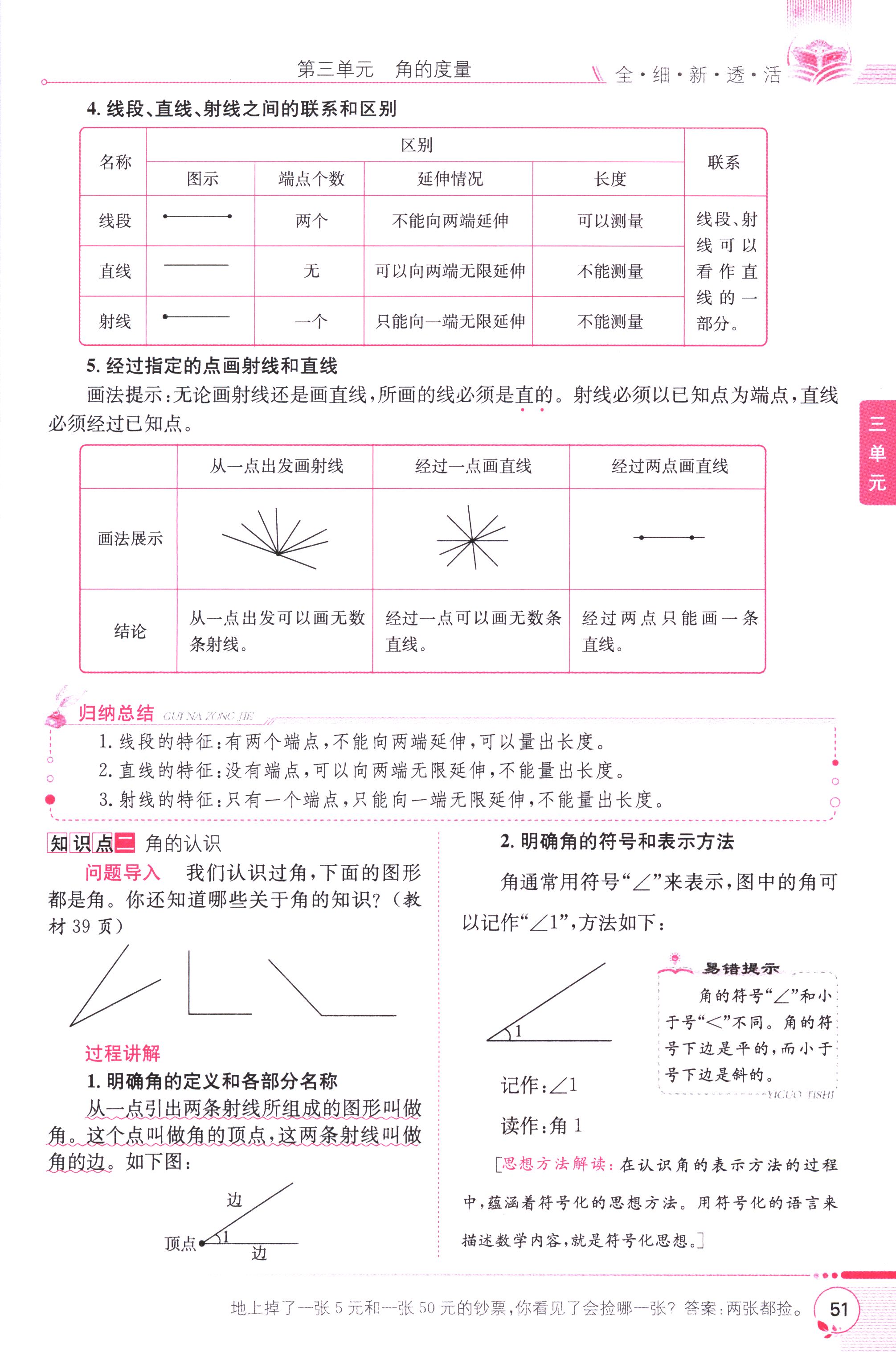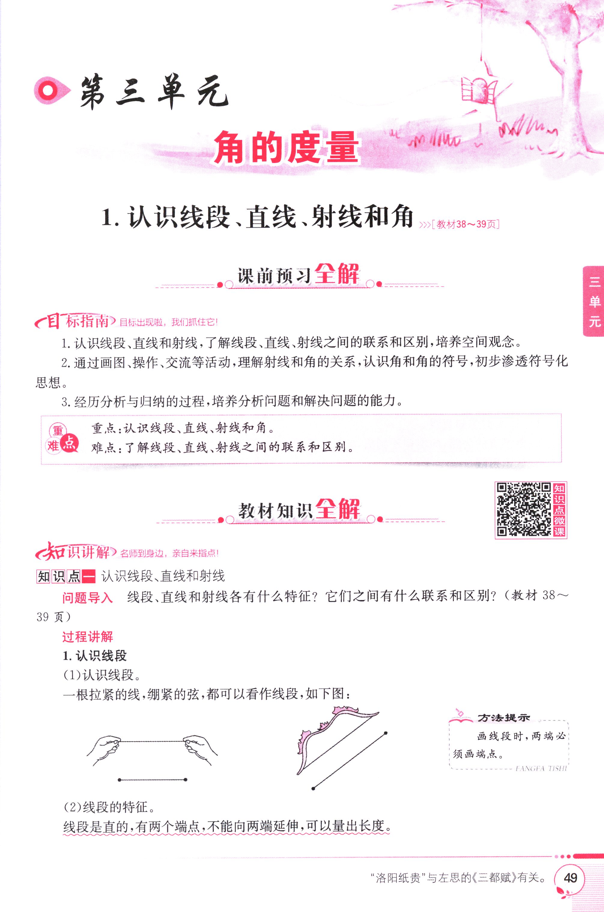 第三單元 角的度量 1.認(rèn)識線段、直線、射線和角