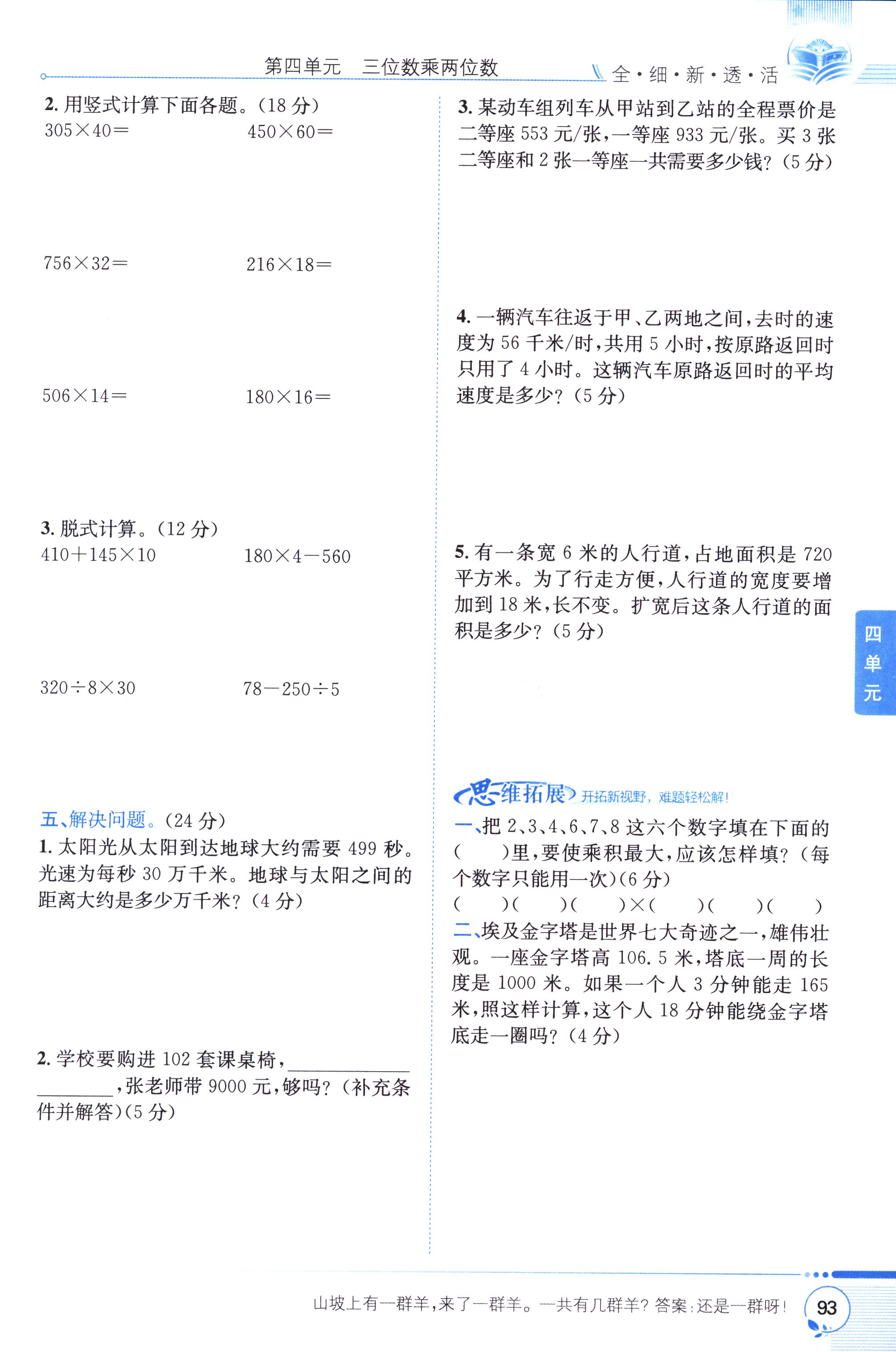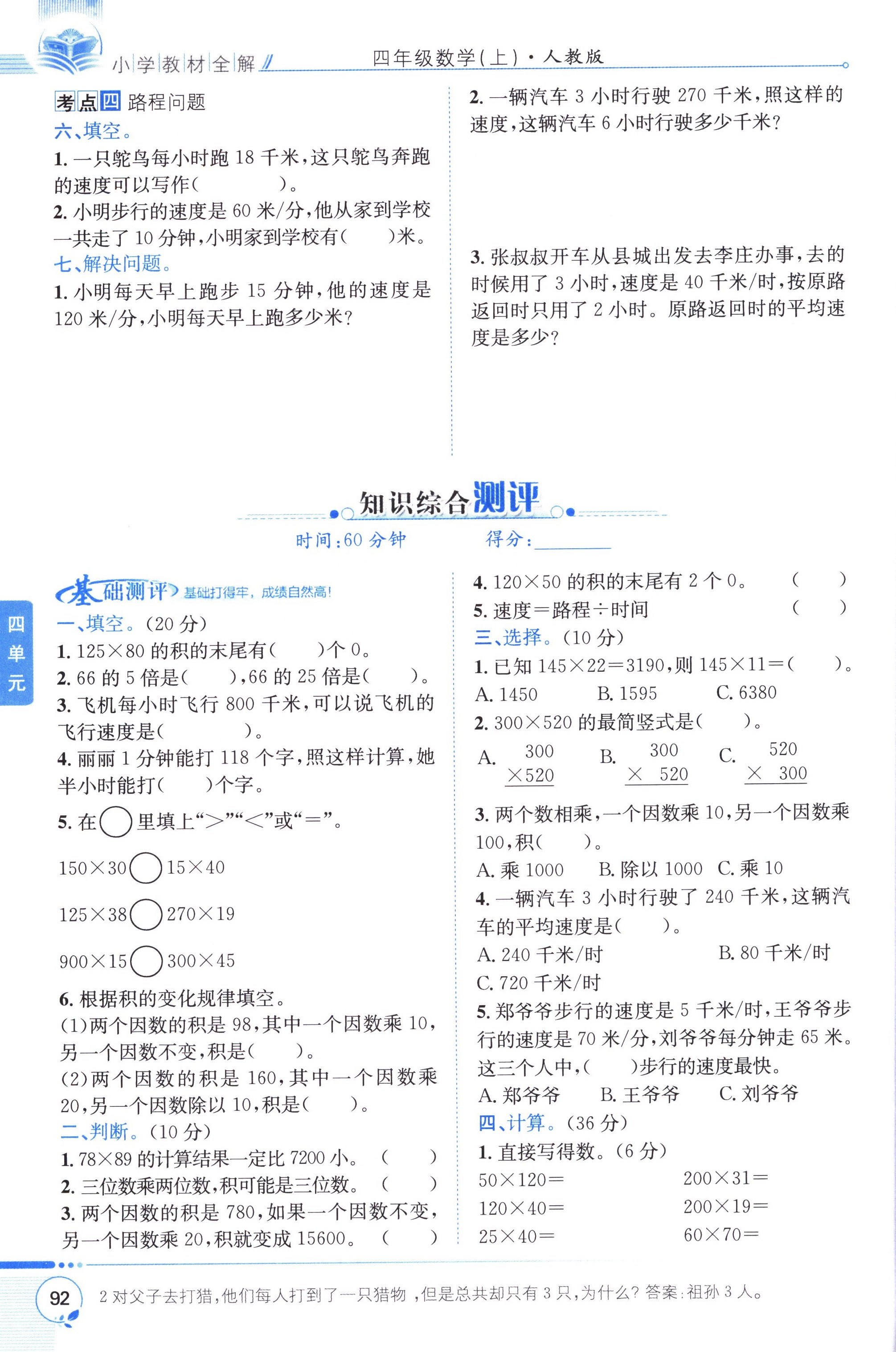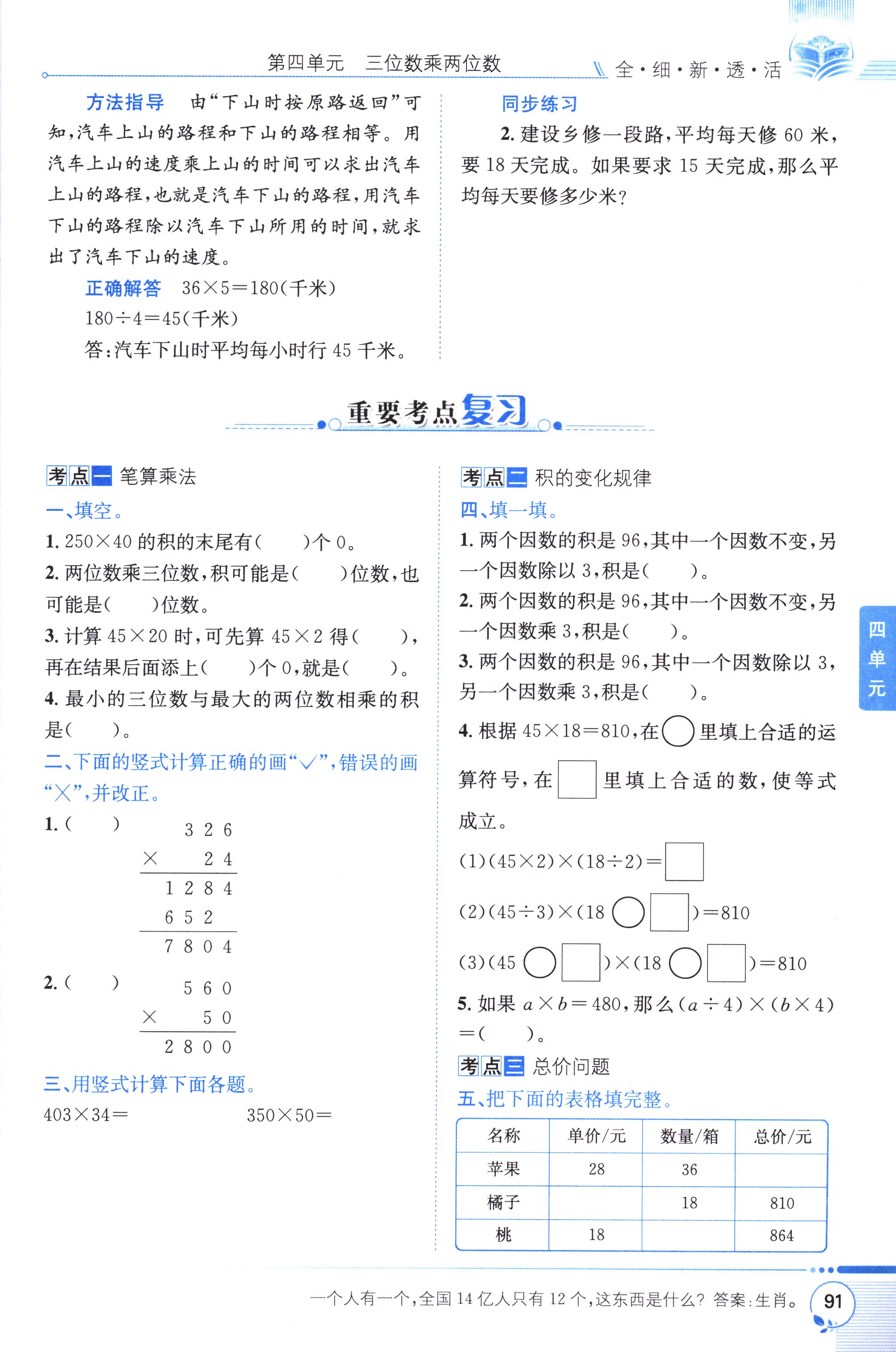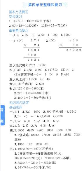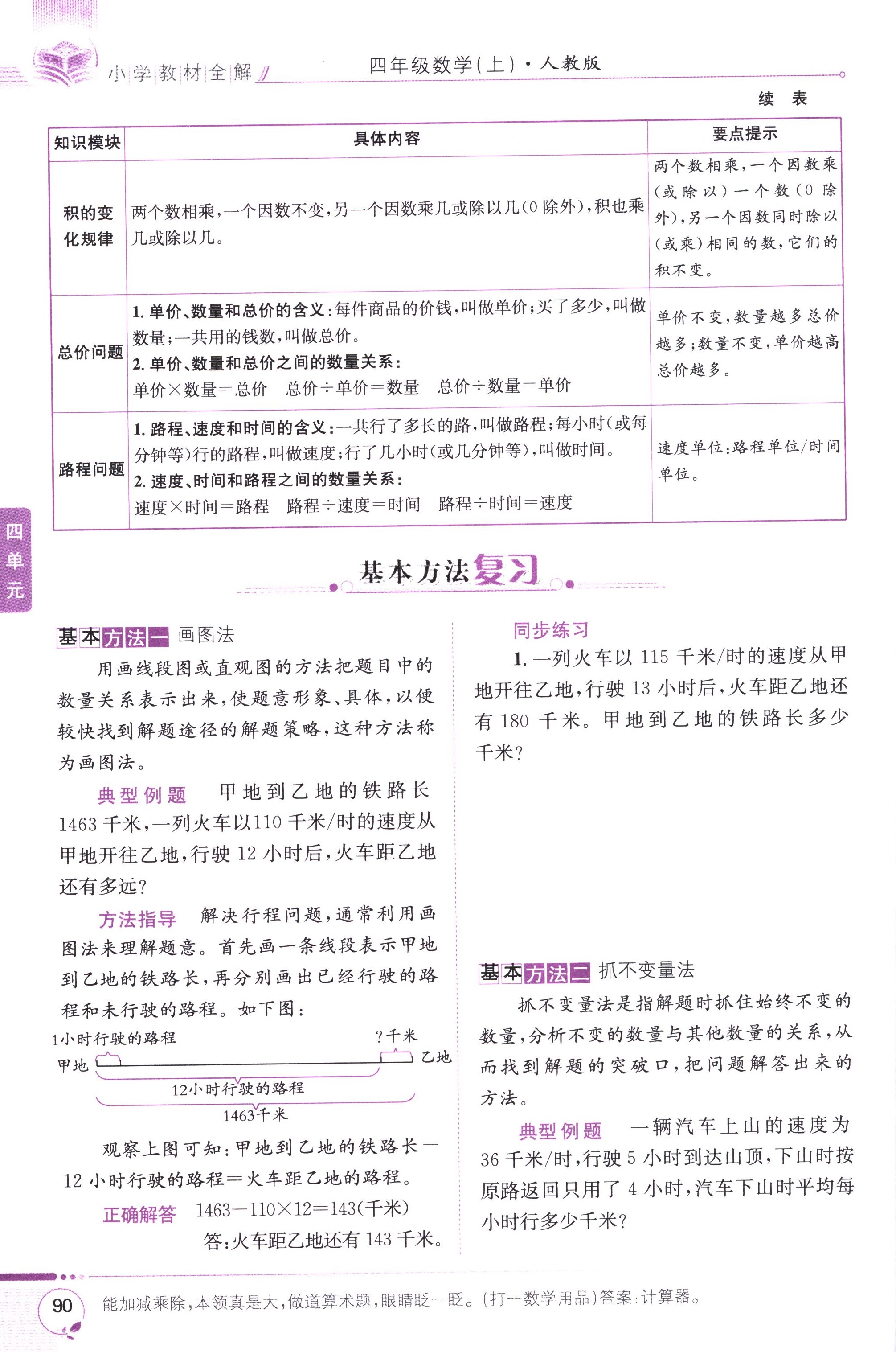 數(shù)學(xué)課本人教版四年級(jí)上 第四單元整理和復(fù)習(xí)