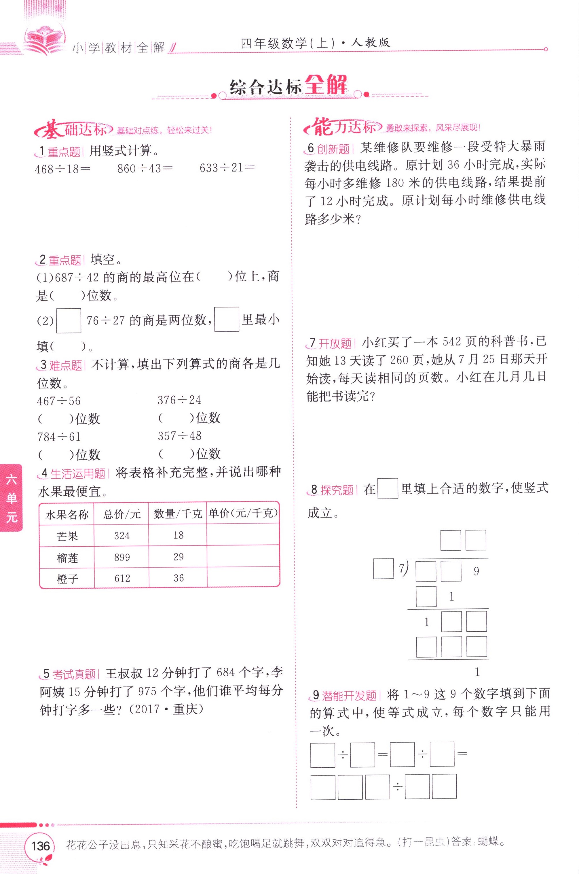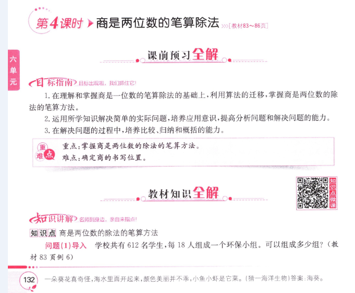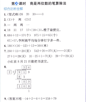數(shù)學課本人教版四年級上 第4課時 商是兩位數(shù)的筆算除法