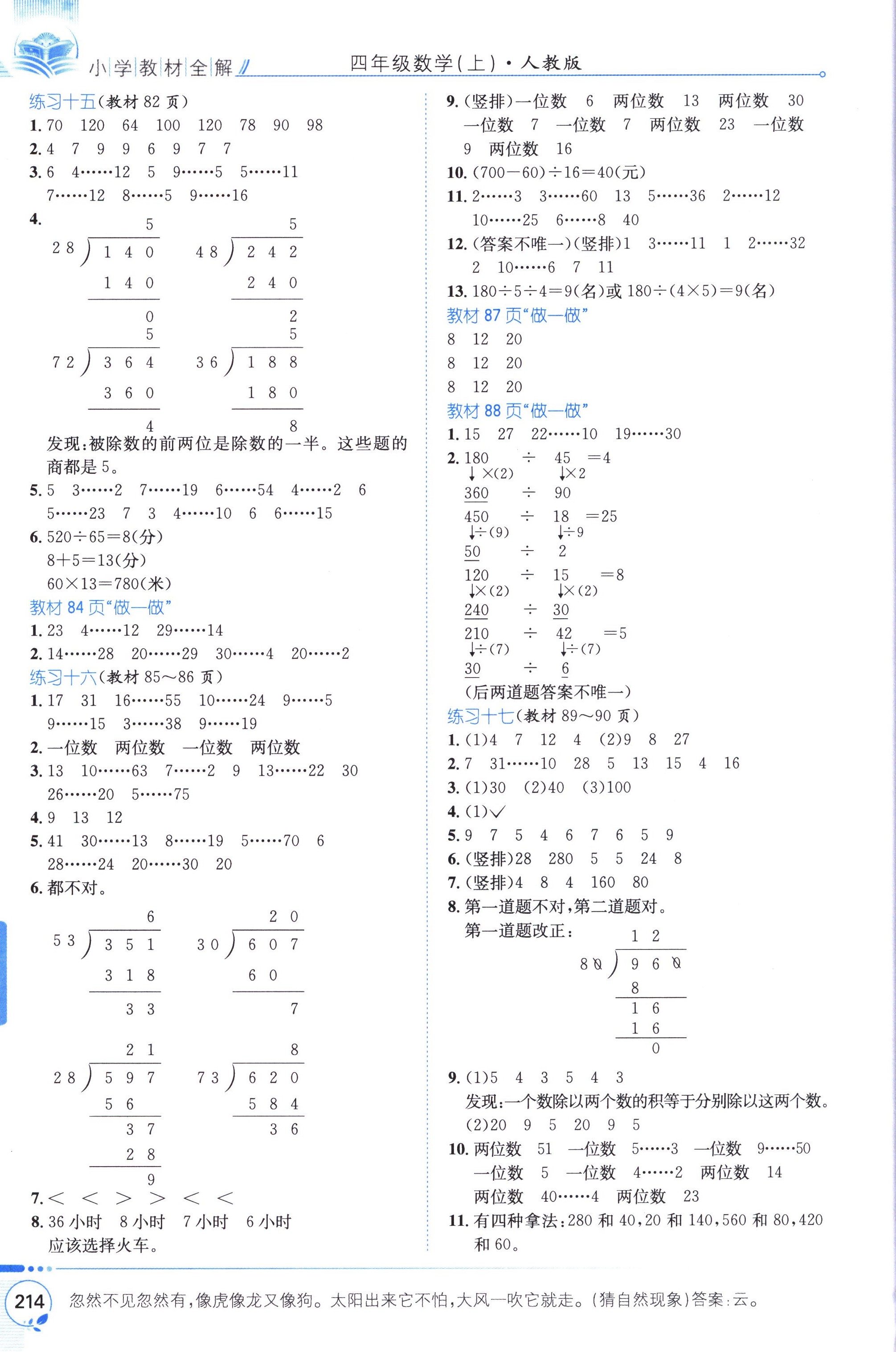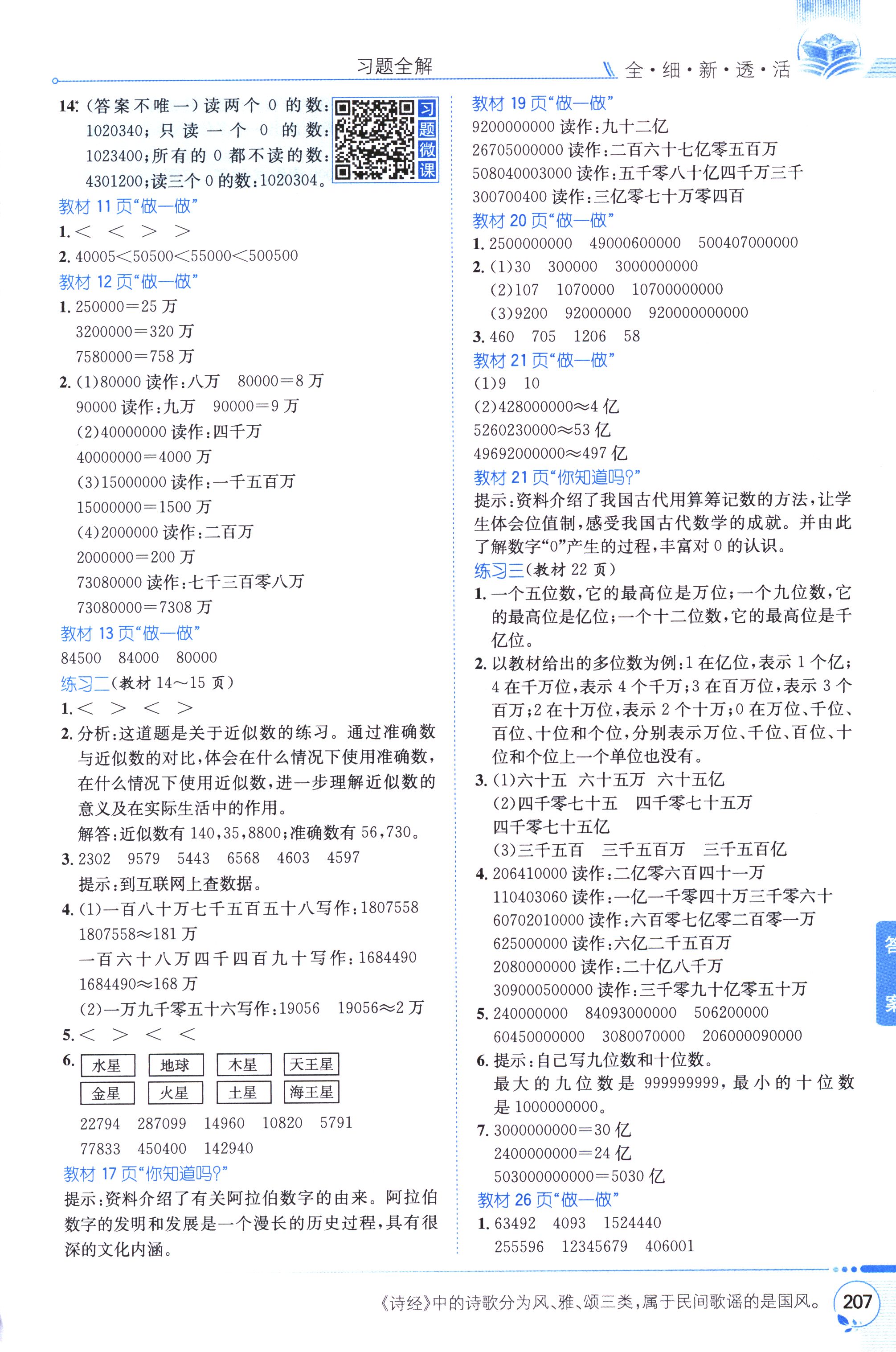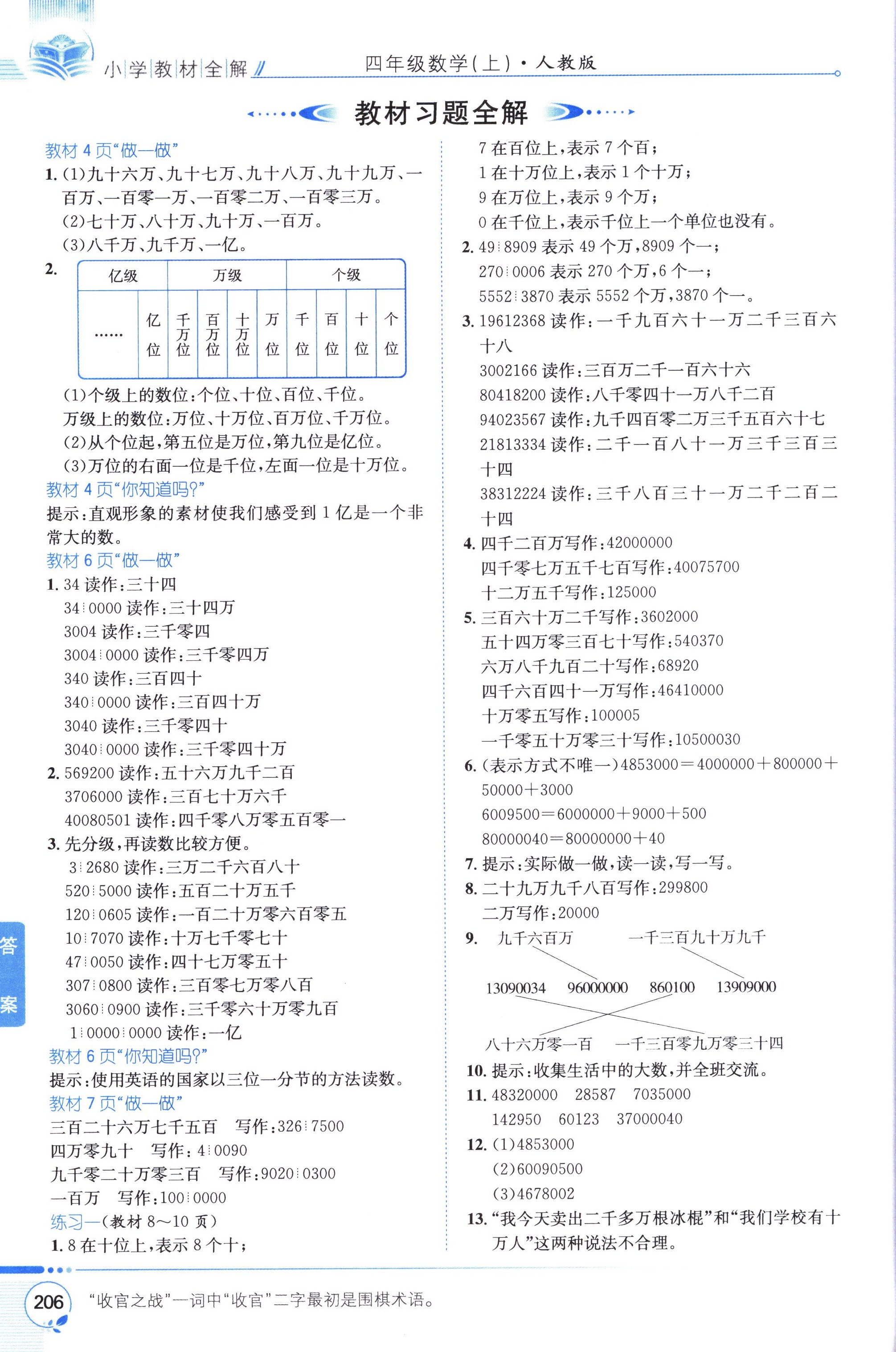 數(shù)學(xué)課本人教版四年級上 教材習(xí)題全解