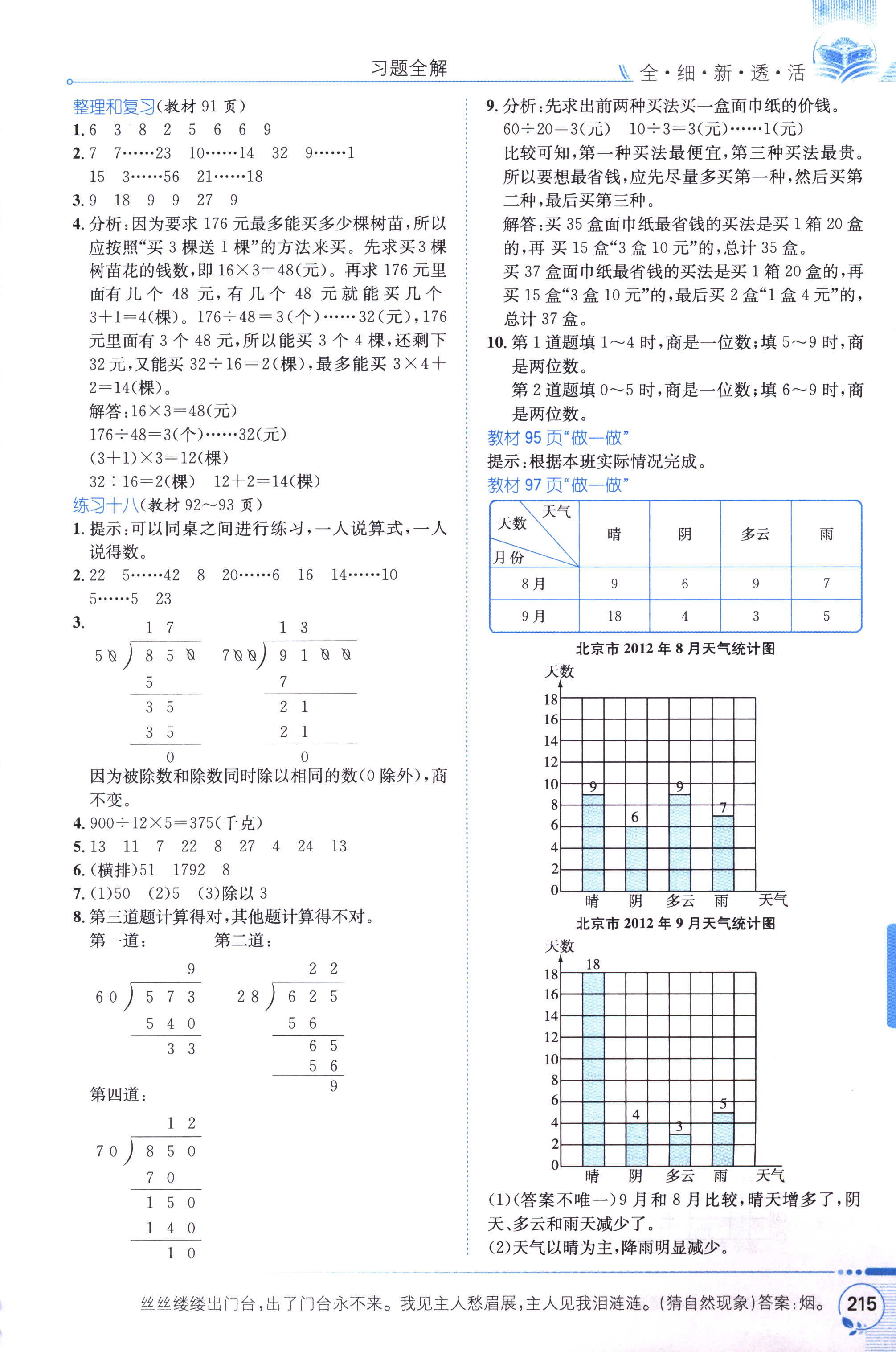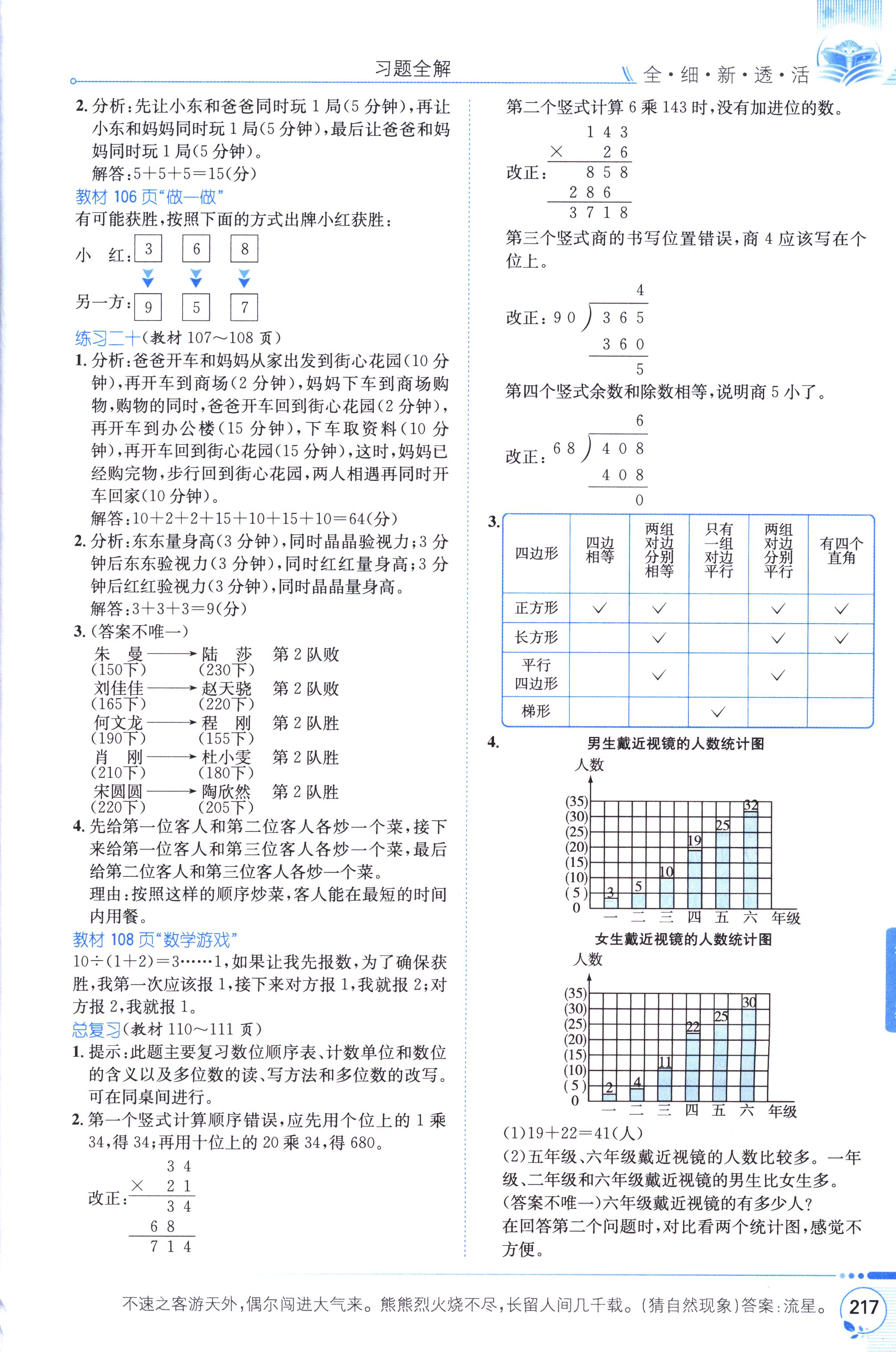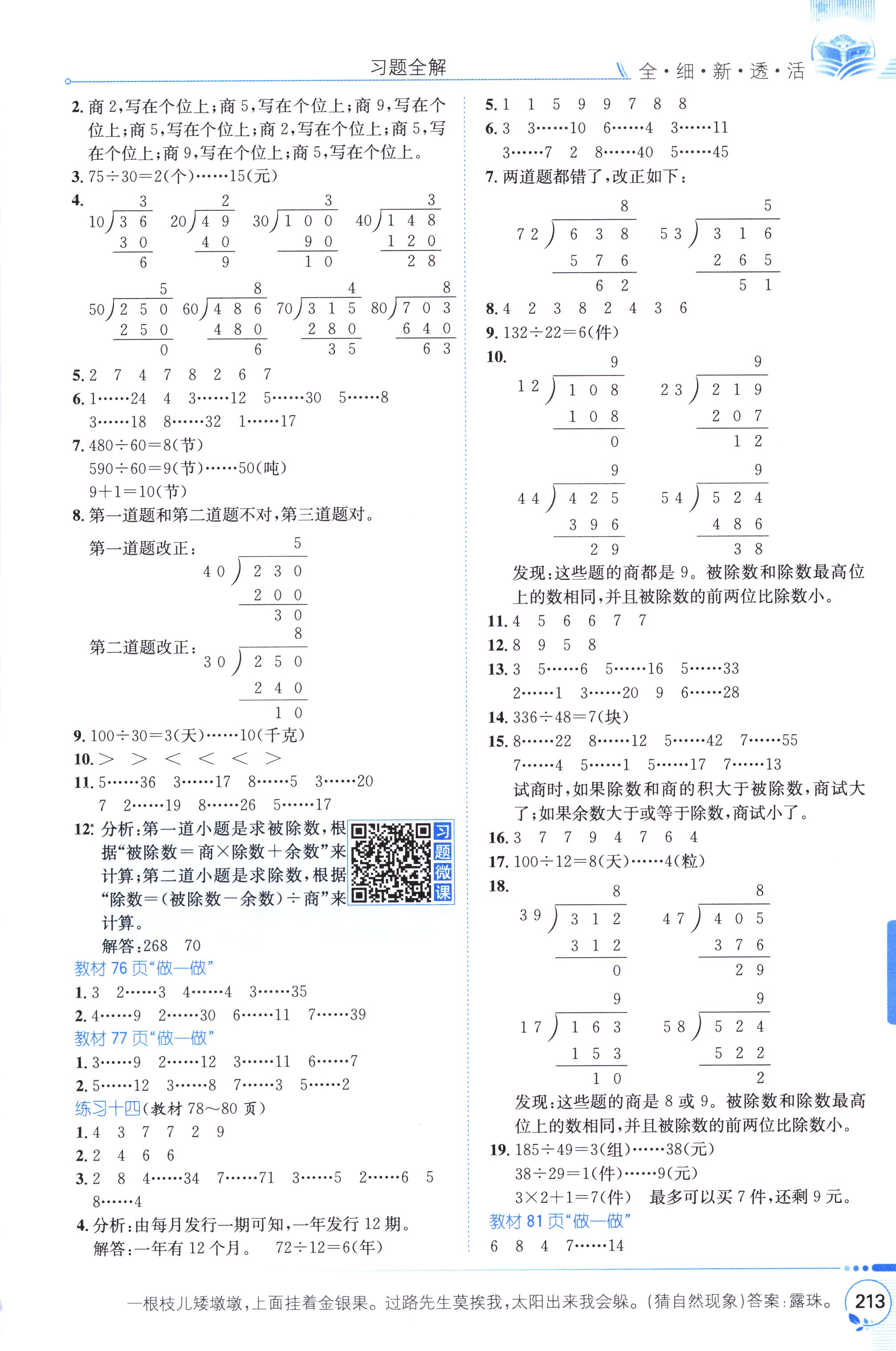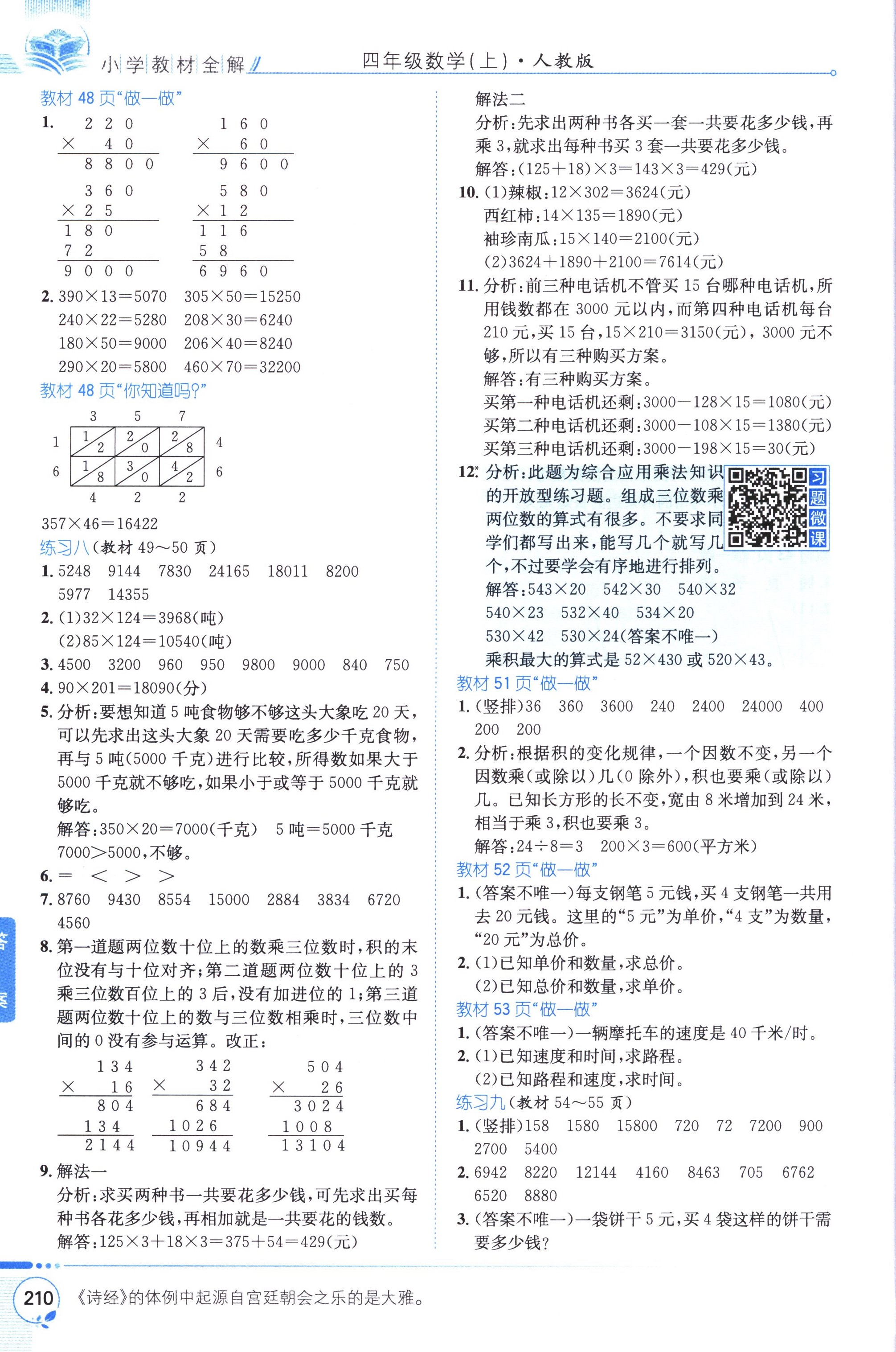 數(shù)學(xué)課本人教版四年級上 教材習(xí)題全解