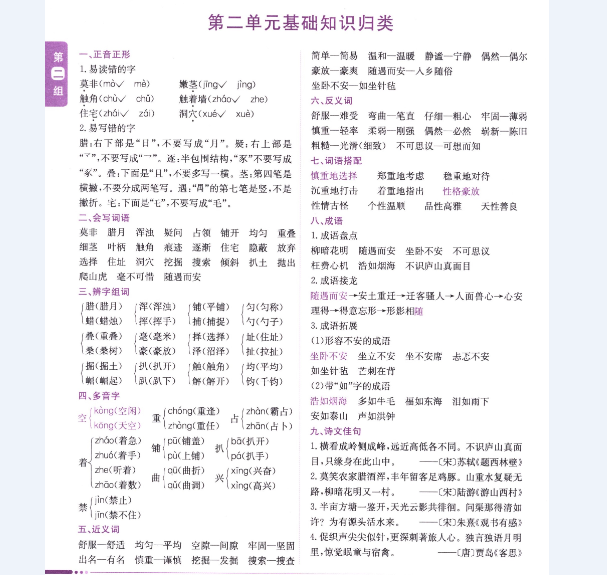語文課本人教版四年級(jí)上 第二單元基礎(chǔ)知識(shí)歸類
