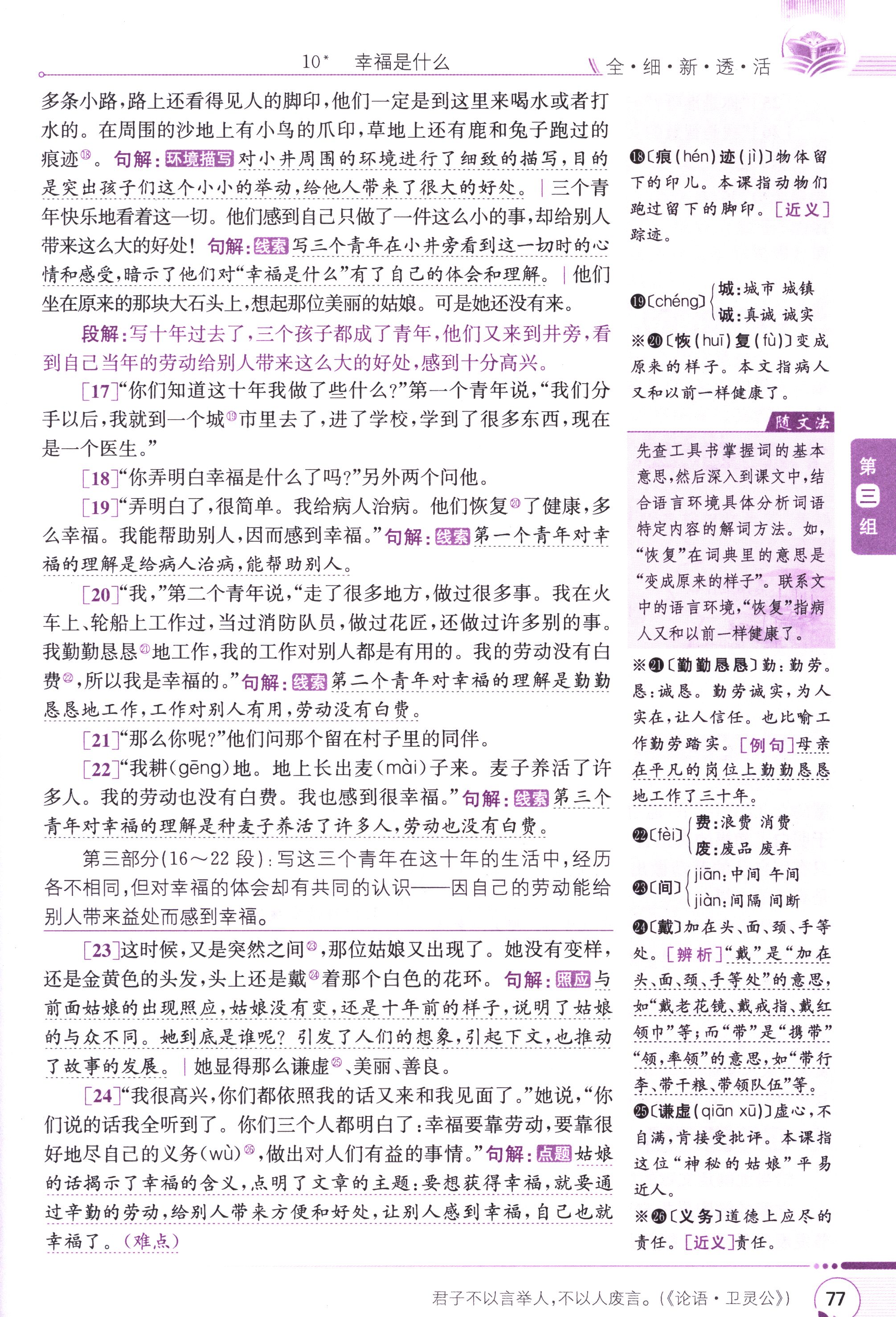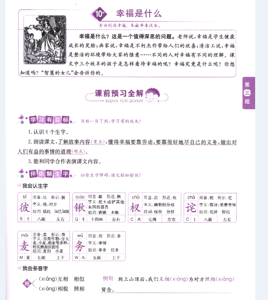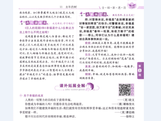 語文課本人教版四年級上 幸福是什么