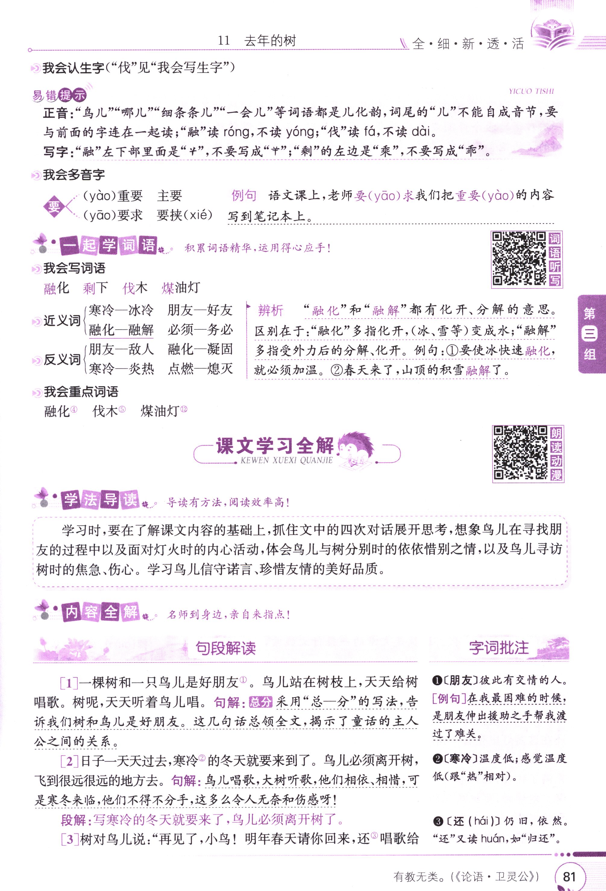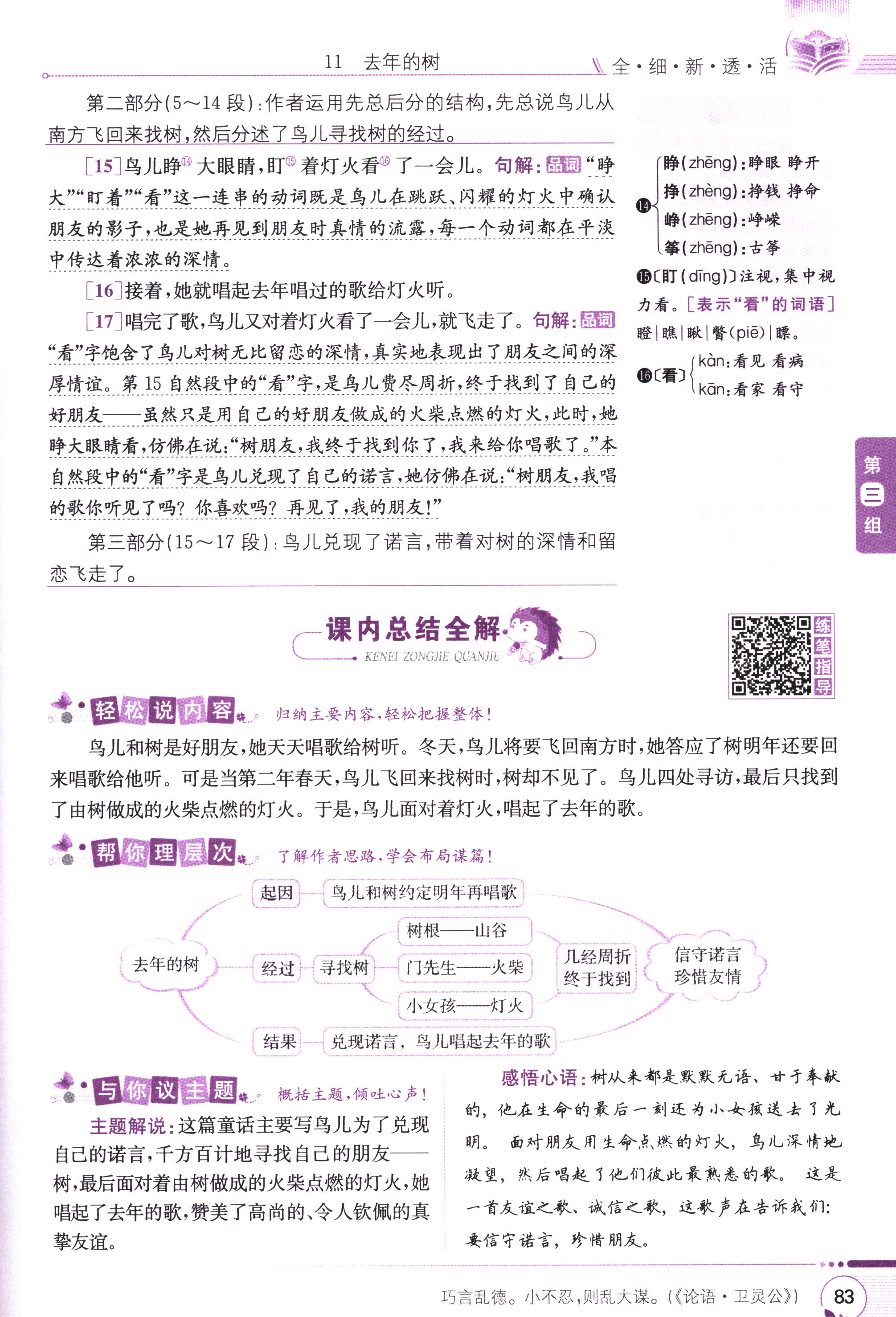 語(yǔ)文課本人教版四年級(jí)上 去年的樹(shù)