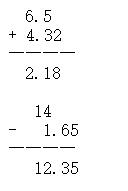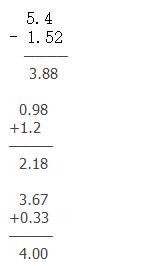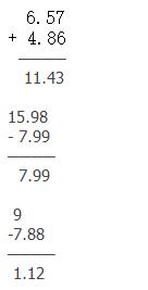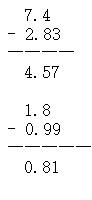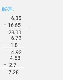 4. (1)29-9.35=19.65元 (2)答案不唯一。 5.4.23-3.56=0.67 因?yàn)闆](méi)對(duì)齊所以小數(shù)點(diǎn)應(yīng)向右移一位 所以是6.7