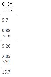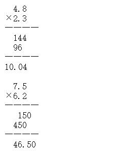 5. 2.37×10=23.7升 23.7×3=71.1升 6. 105.3×8=842.4平方米