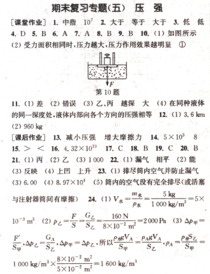 期末復(fù)習(xí)專題(五) 壓強(qiáng)