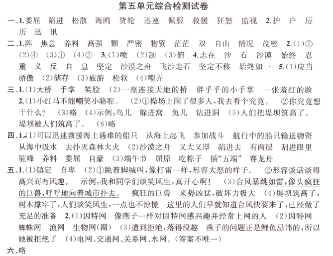 第五單元綜合測(cè)試卷