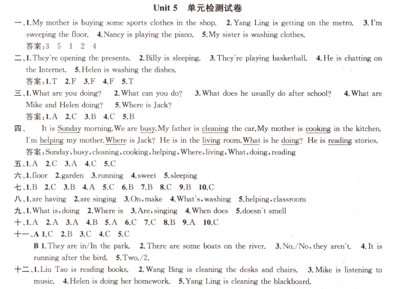 Unit 5 單元檢測試卷