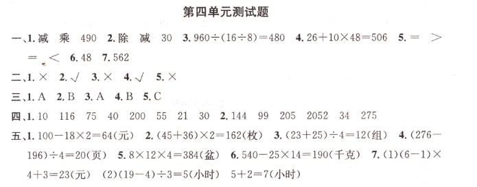 第四單元測試題