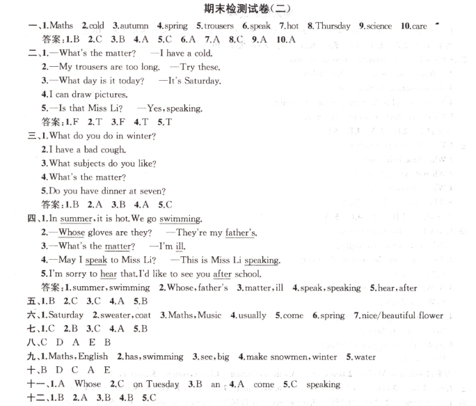 期末檢測(cè)試卷(二)