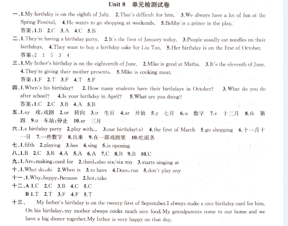 Unit 8單元檢測(cè)試卷