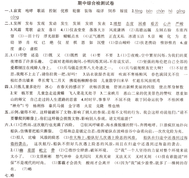 期中綜合檢測試卷