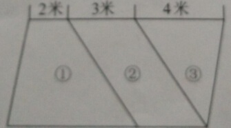 有一塊平行四邊形的花圃,分成三塊種玫瑰(如下圖)。已知第①塊地的面積是20平方米,請(qǐng)你幫忙分別求出第②與第③塊地的面積。